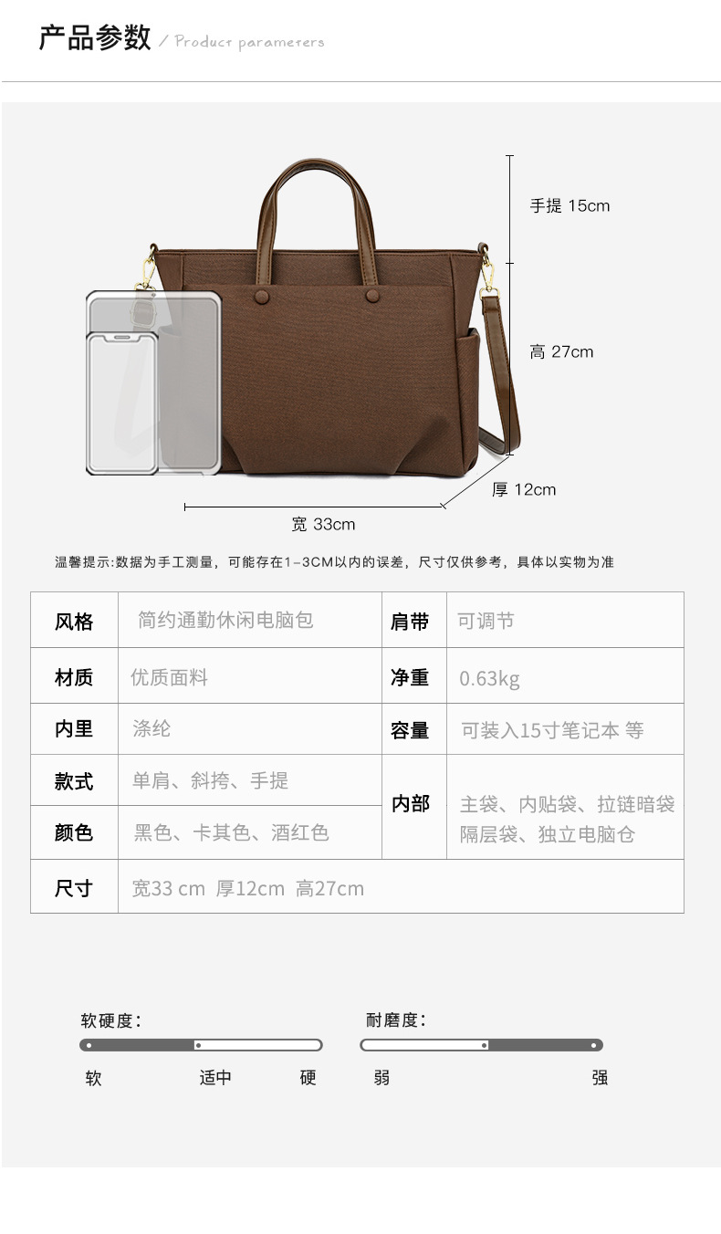 여성용 가방 2024 새로운 노트북 가방 여성용 어깨 손 가방 서류 가방 어깨 크로스 바디 토트 백