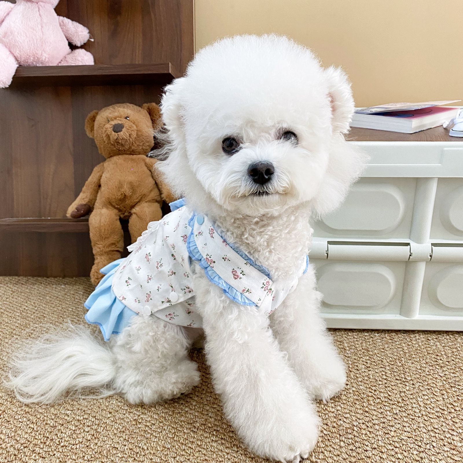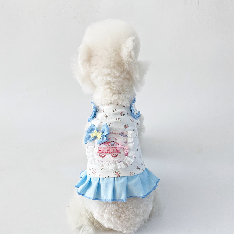 애완동물 고양이 강아지 옷 순면 봄 여름 얇은 만화 토끼 스트랩 원피스 곰돌이 플리츠 스커트스토어 가기