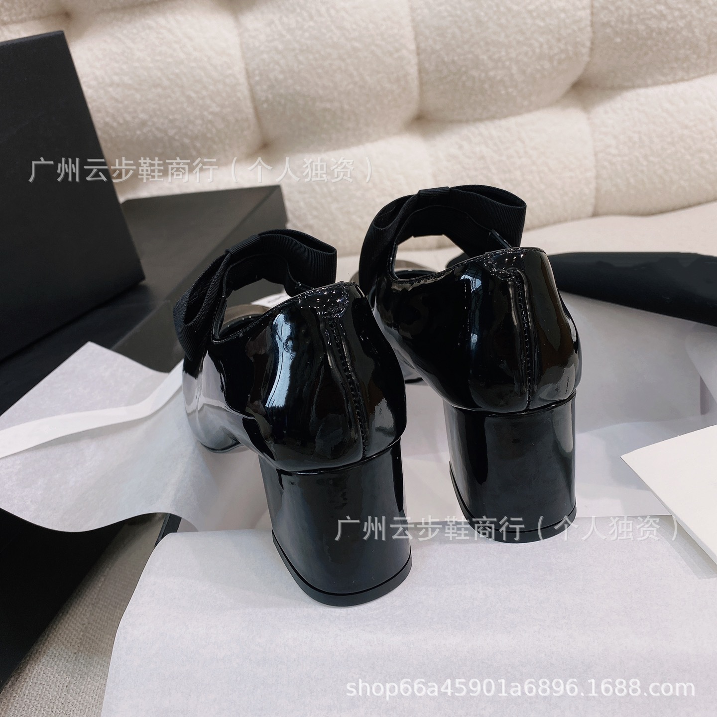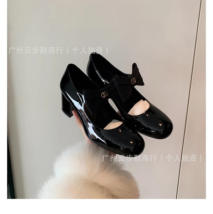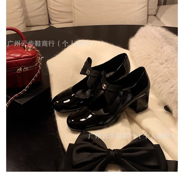 올바른 버전 프랑스 스타일 메리 제인 신발 작은 향기로운 활 두꺼운 높은 외관 가치 작은 가죽 신발 여성의 매칭 하이힐 싱글 레이어 신발