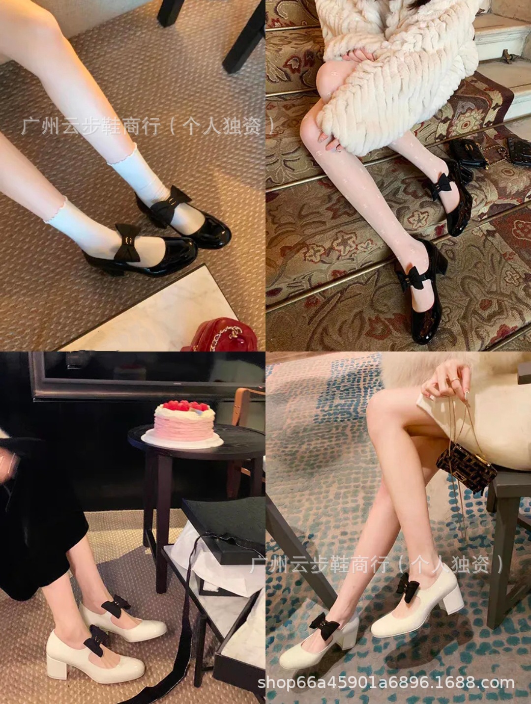 올바른 버전 프랑스 스타일 메리 제인 신발 작은 향기로운 활 두꺼운 높은 외관 가치 작은 가죽 신발 여성의 매칭 하이힐 싱글 레이어 신발스토어 가기