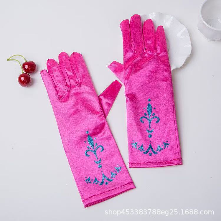 공주 엘사 어린이 장식 장갑 겨울왕국 프린트 퍼포먼스 액세서리 새틴 장갑 드레스 장갑 배치
