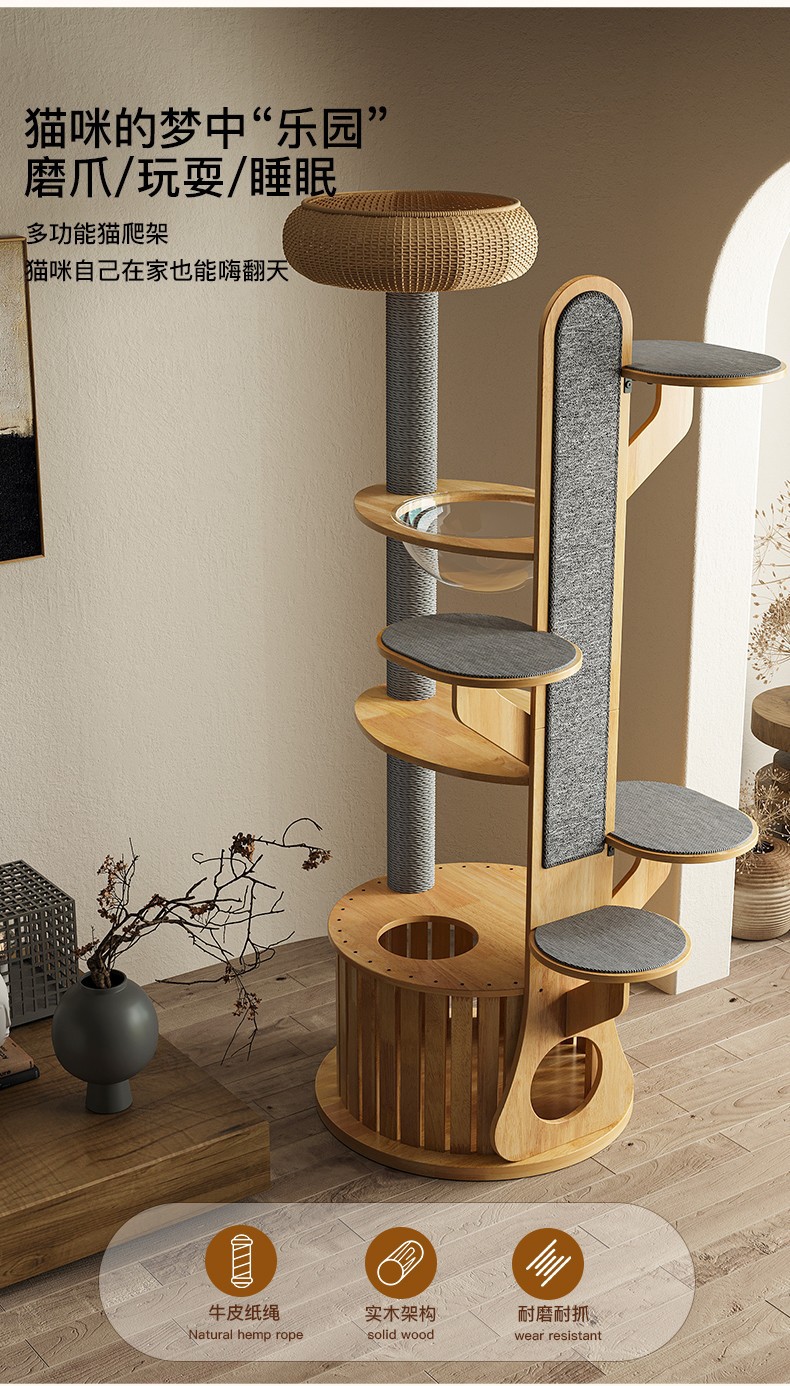 고양이 클라이밍 프레임 원목 대형 캣타워 장난감 일체형 고양이 다층 침대 고양이 점프 플랫폼 스탠드형 특수 고양이 발톱 긁힘 방지