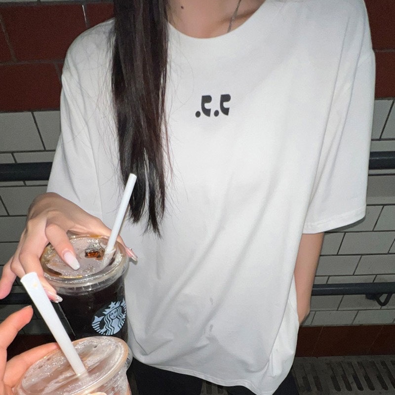 한국 틈새 트렌디 브랜드 스타 같은 디자인 센스 RR 편지 인쇄 커플 반팔 티셔츠 남성과 여성의 느슨한 탑스토어 가기