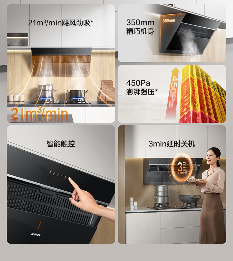 Suppor J12 범위 후드 쿠커 패키지 가정용 사이드 흡입 오일 흡입 기계 주방 범위 후드 세트 조합
