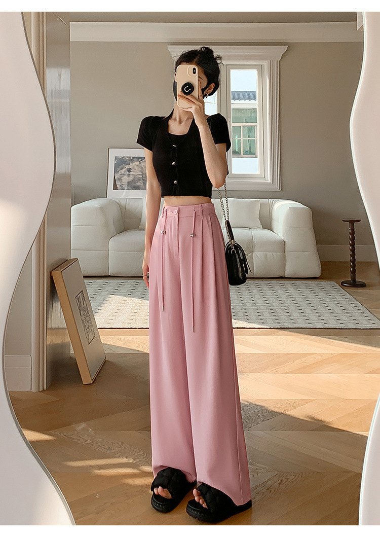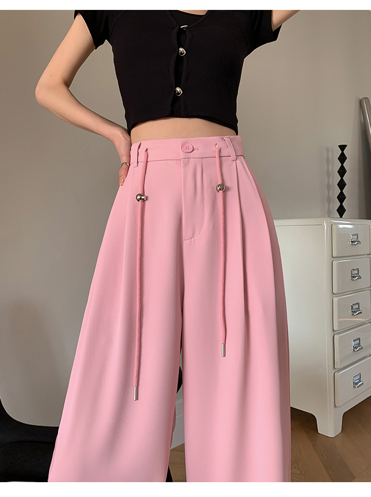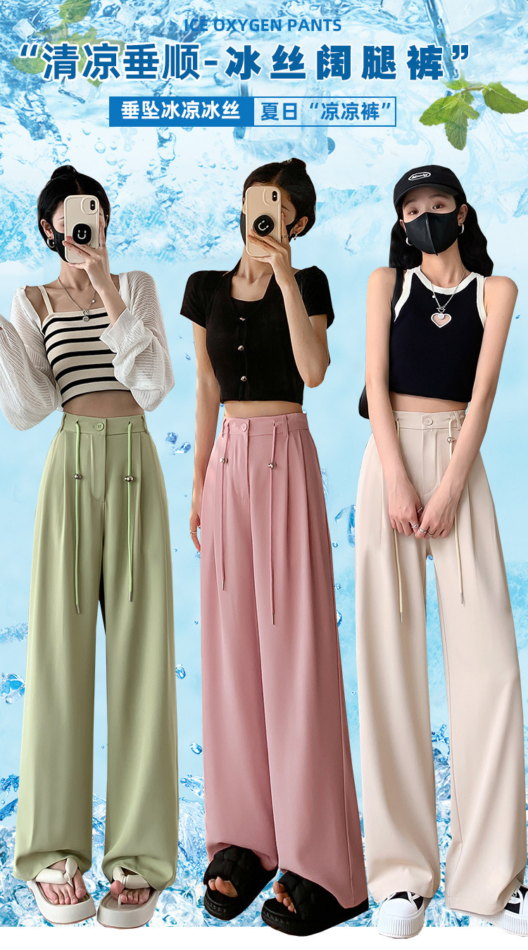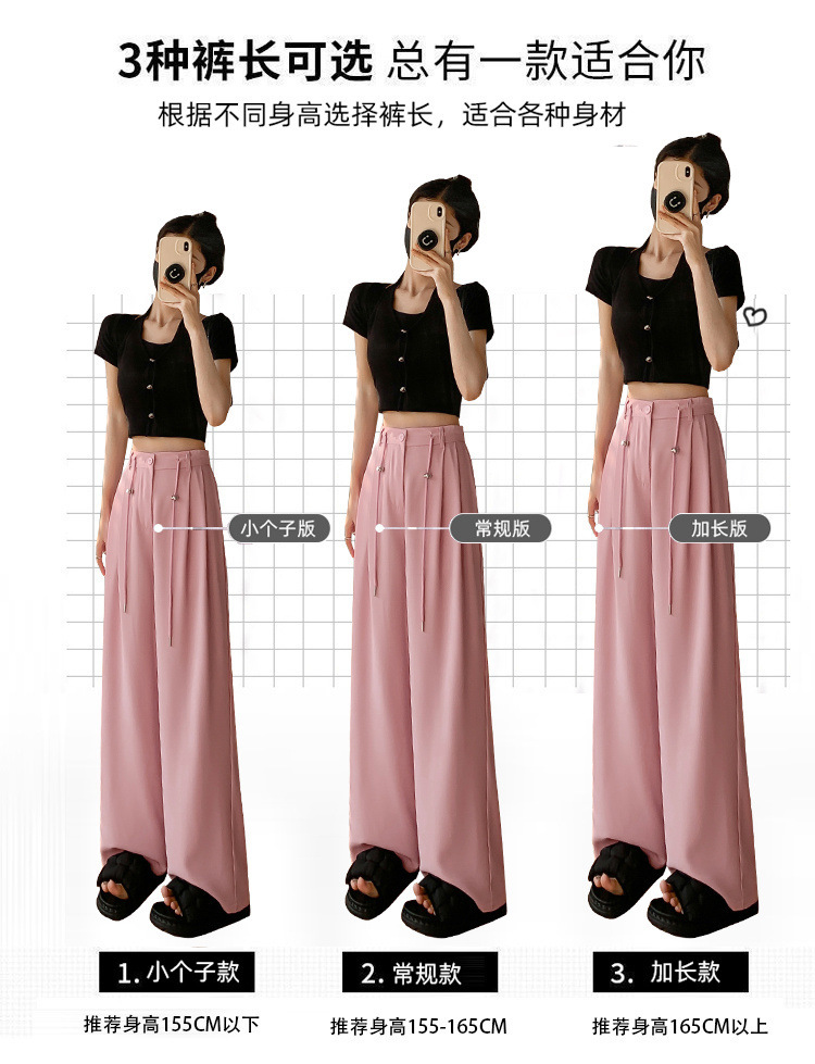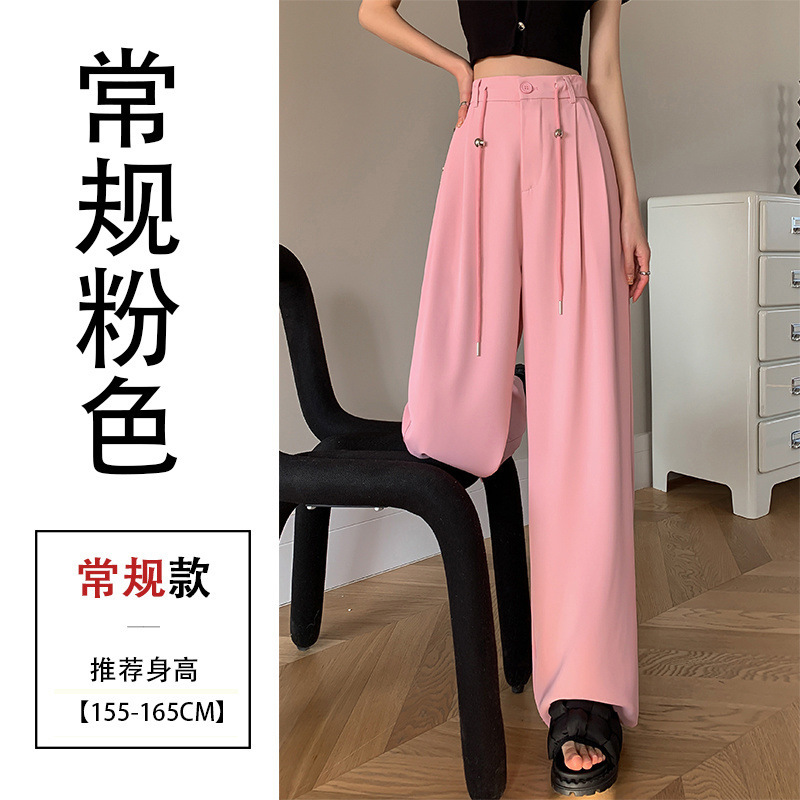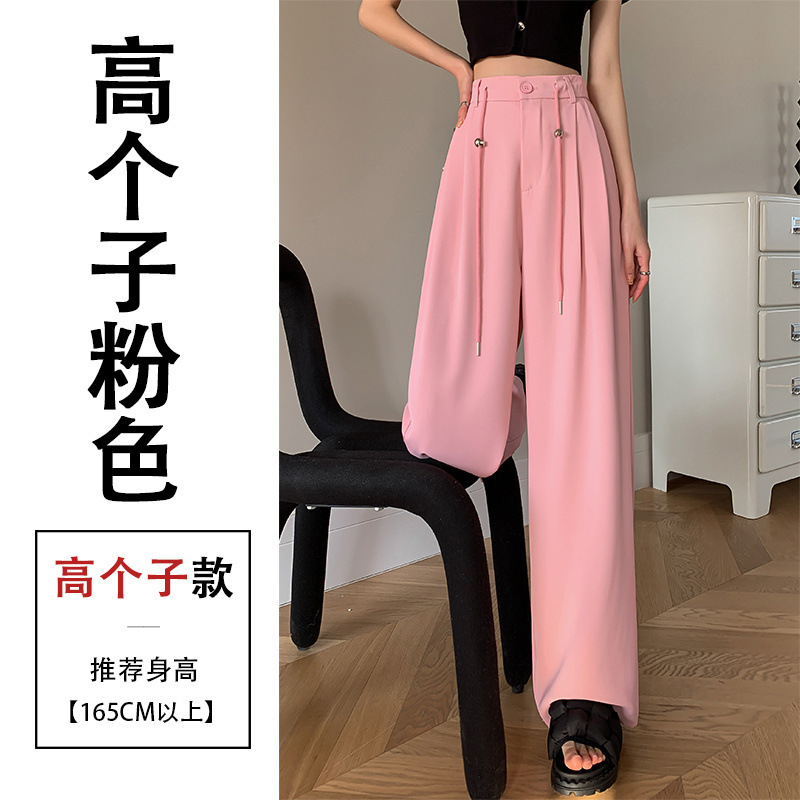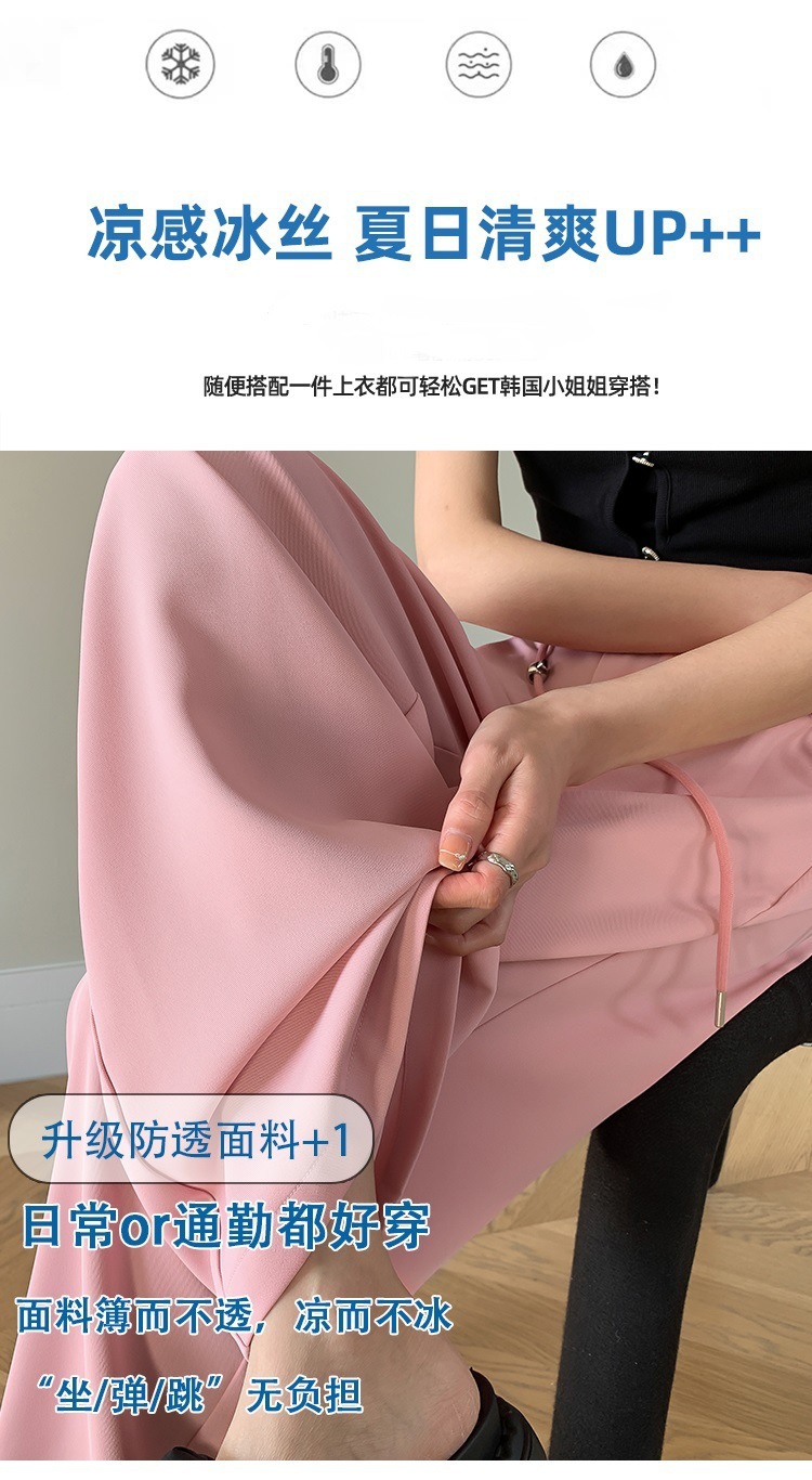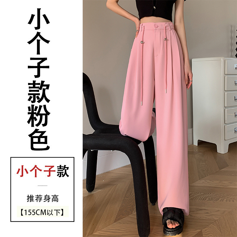 핑크 아이스 실크 좁은 넓은 다리 바지 여자 2025 여름 얇은 작은 고급 기저귀 스트레이트 세트 바지스토어 가기
