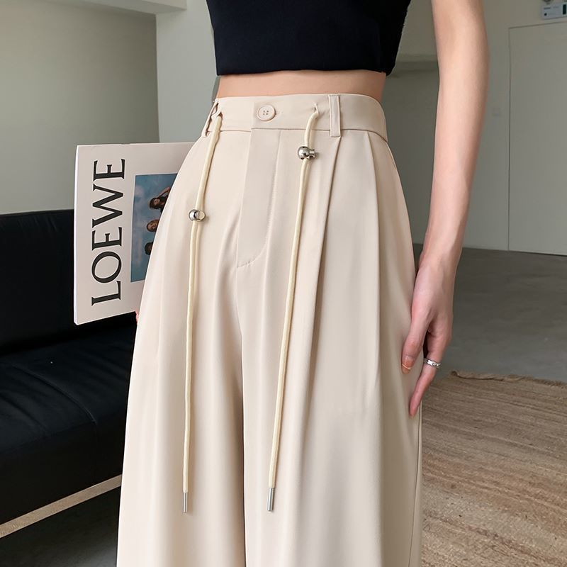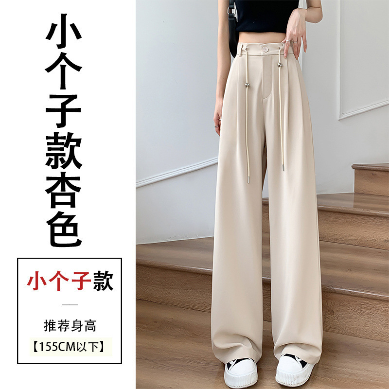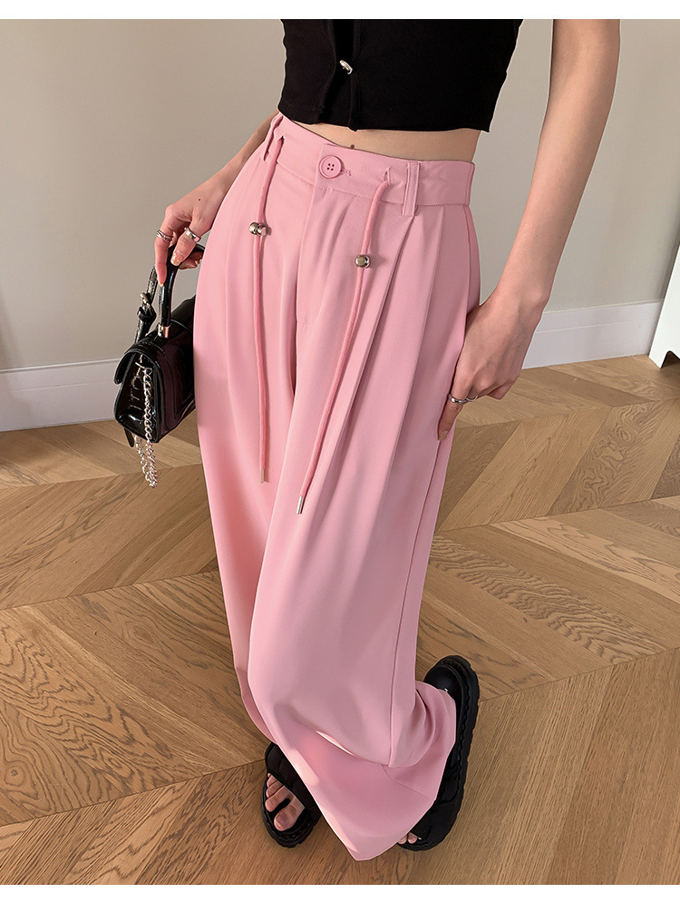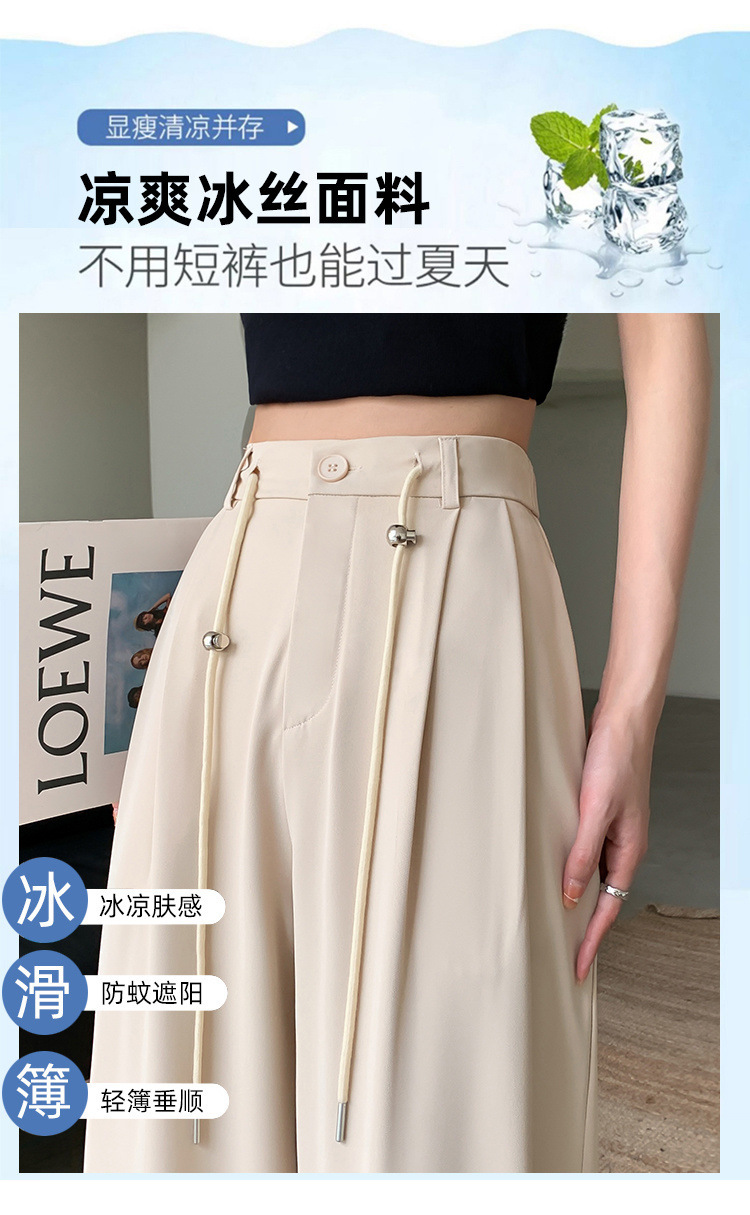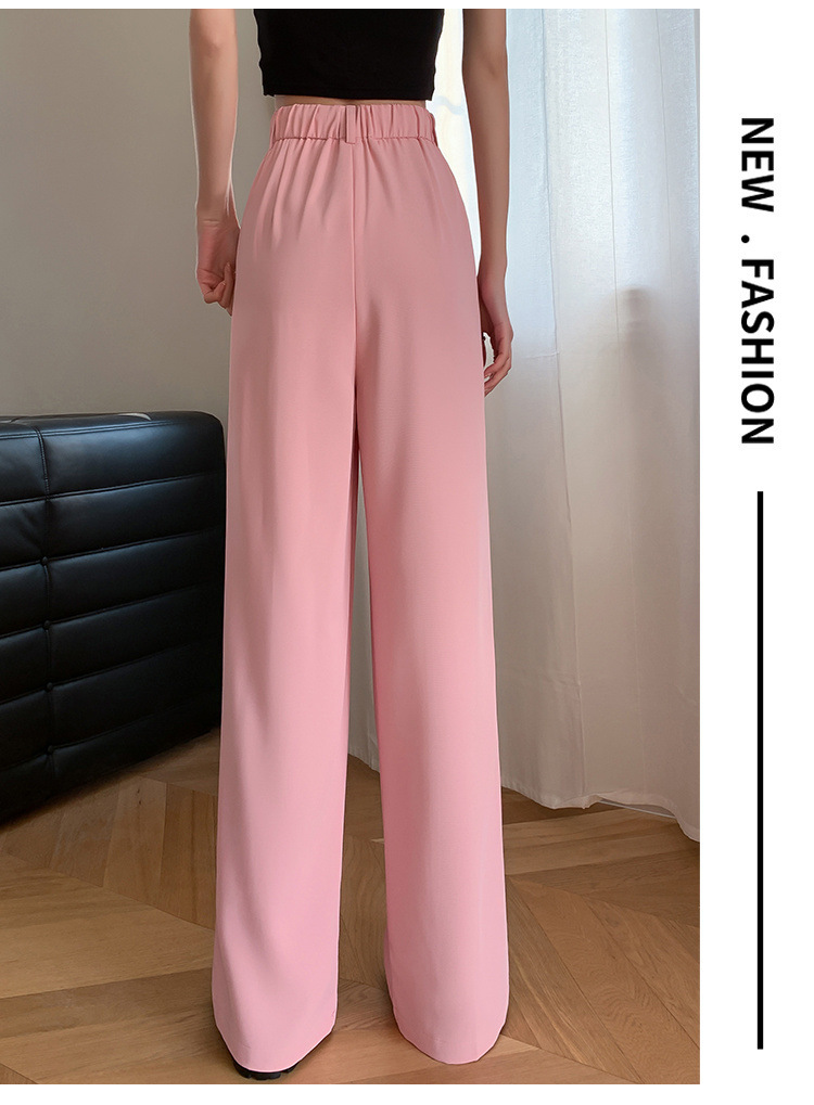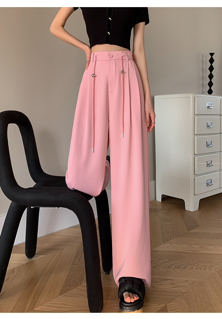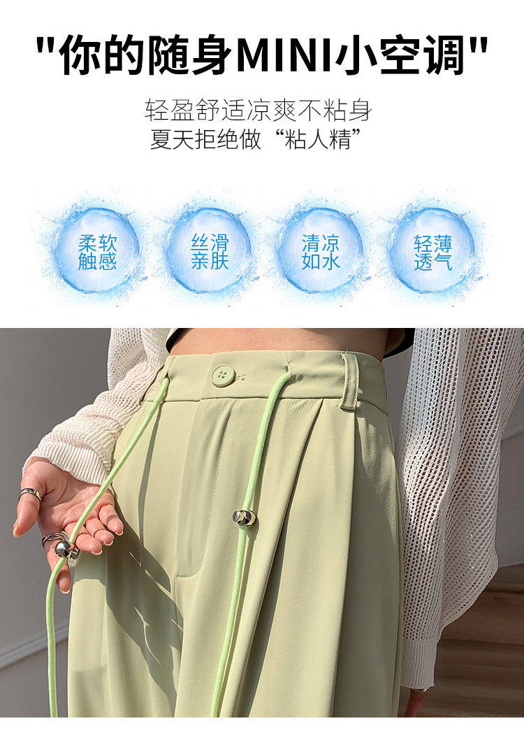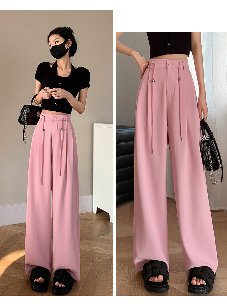 핑크 아이스 실크 좁은 넓은 다리 바지 여자 2025 여름 얇은 작은 고급 기저귀 스트레이트 세트 바지스토어 가기