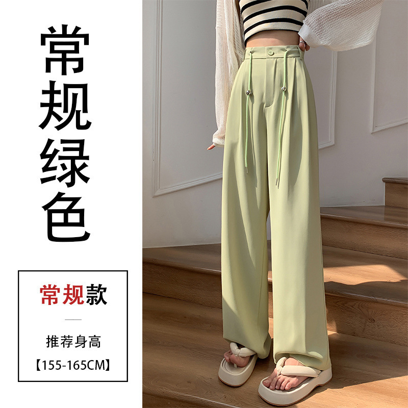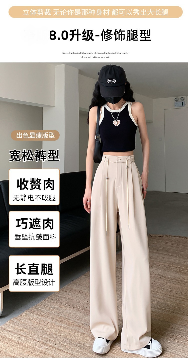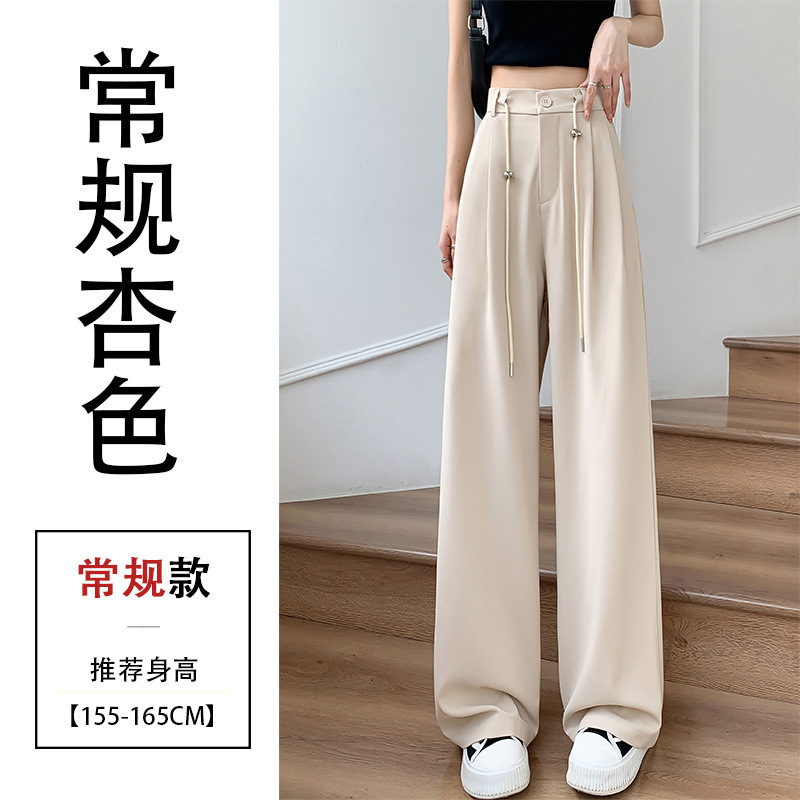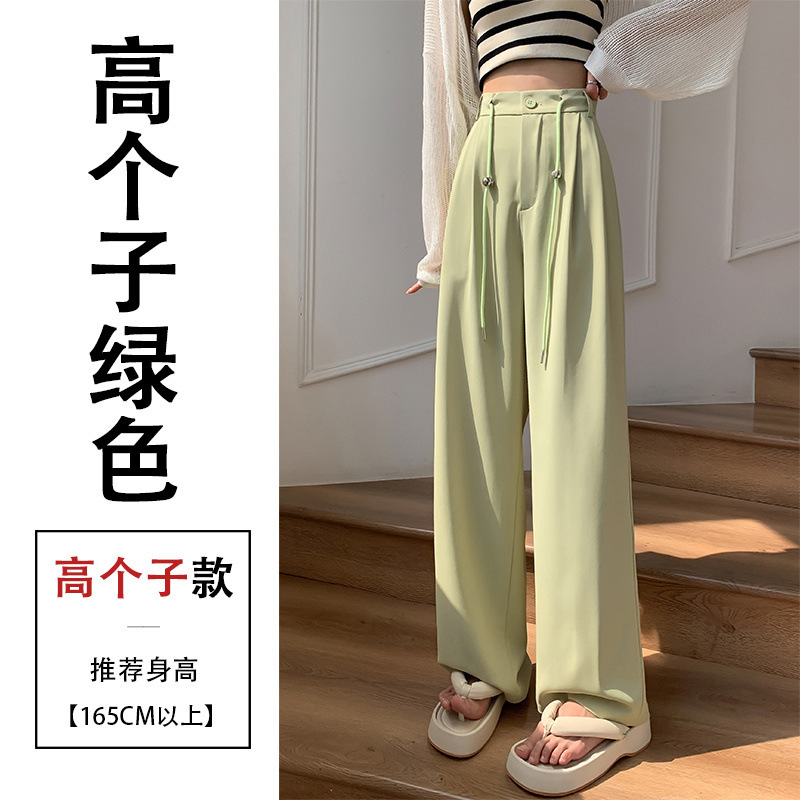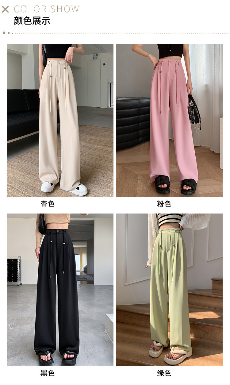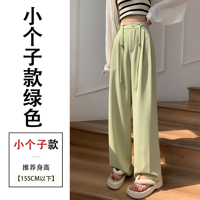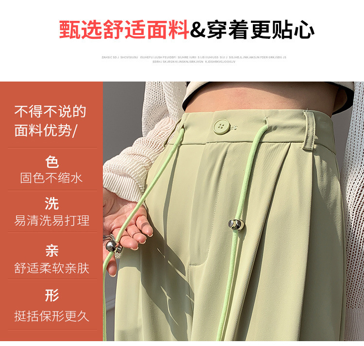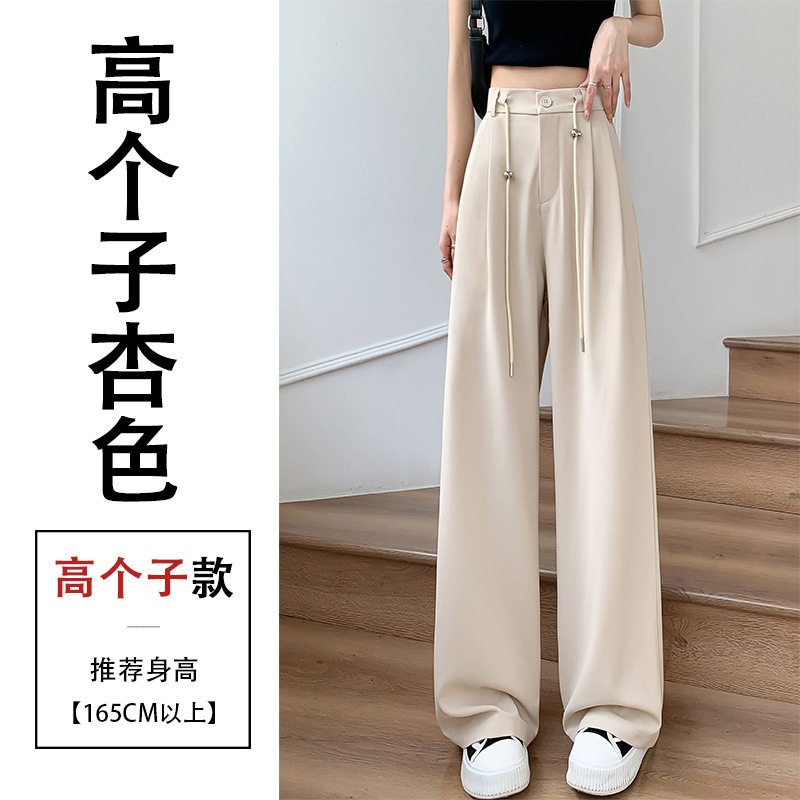 핑크 아이스 실크 좁은 넓은 다리 바지 여자 2025 여름 얇은 작은 고급 기저귀 스트레이트 세트 바지스토어 가기