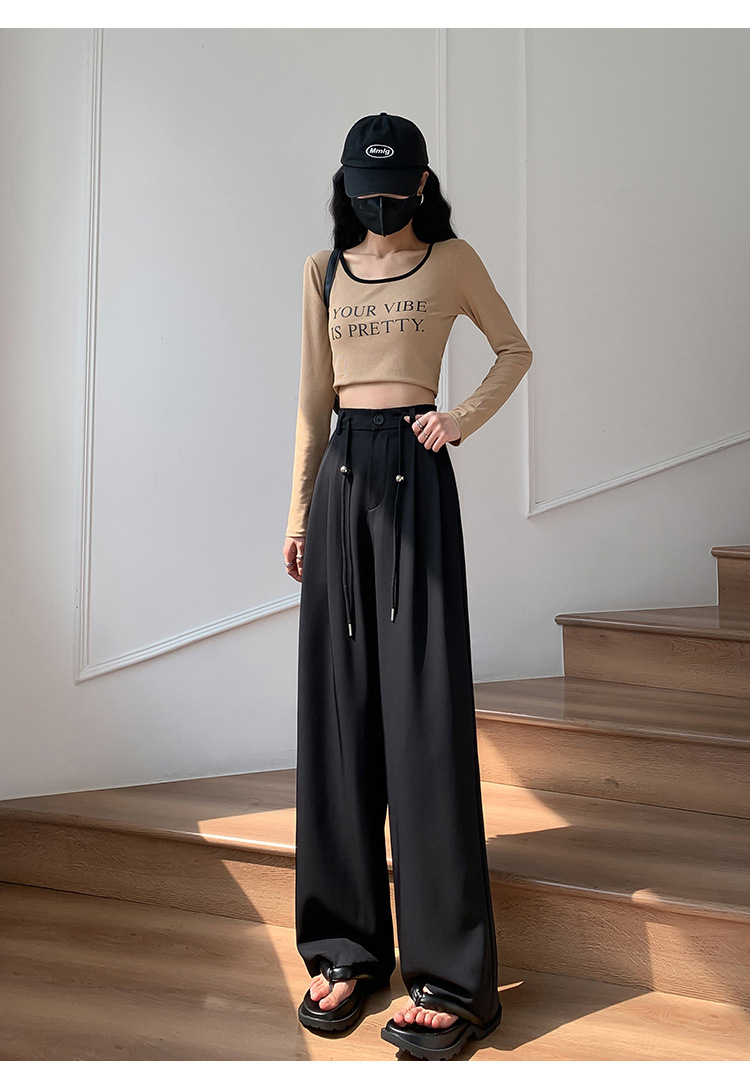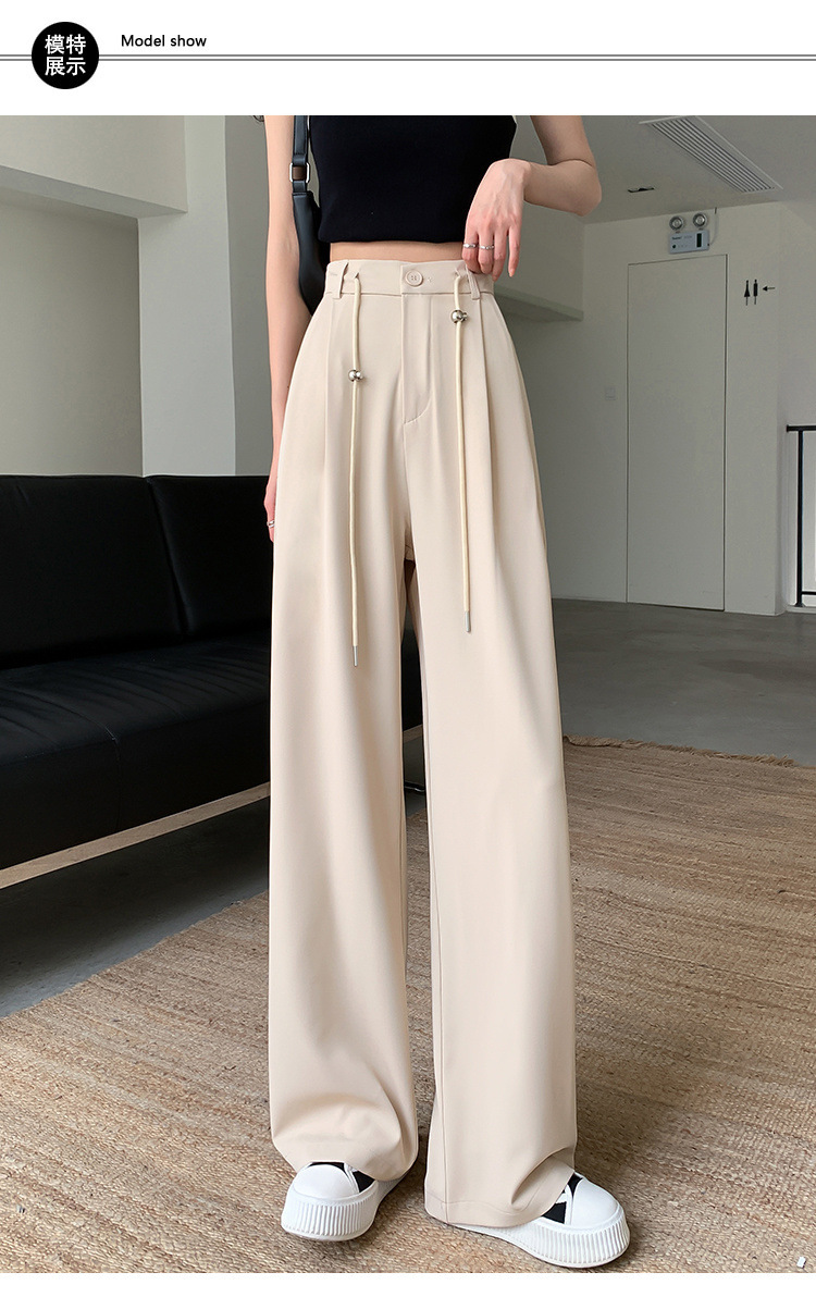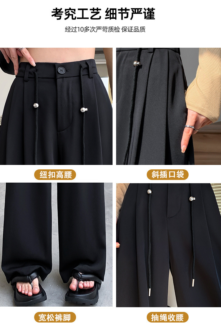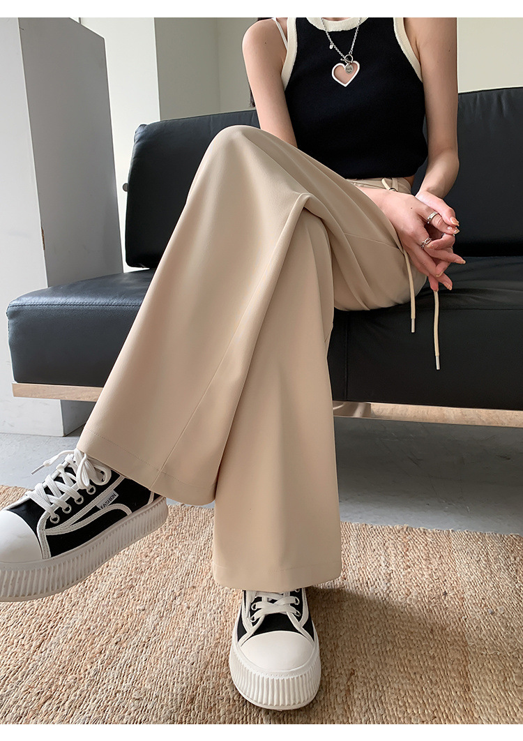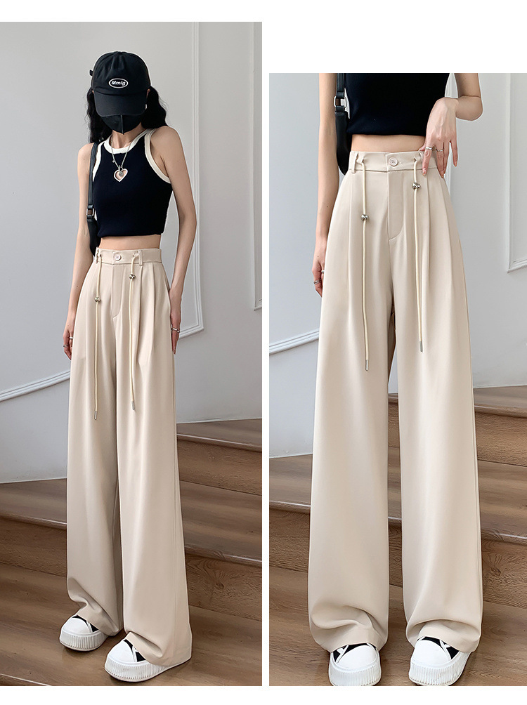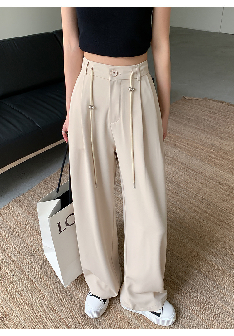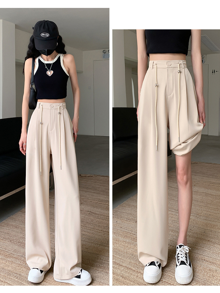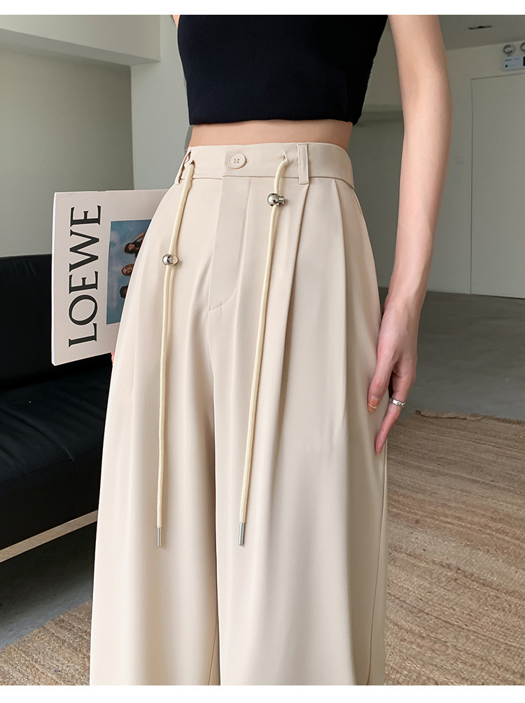 핑크 아이스 실크 좁은 넓은 다리 바지 여자 2025 여름 얇은 작은 고급 기저귀 스트레이트 세트 바지스토어 가기