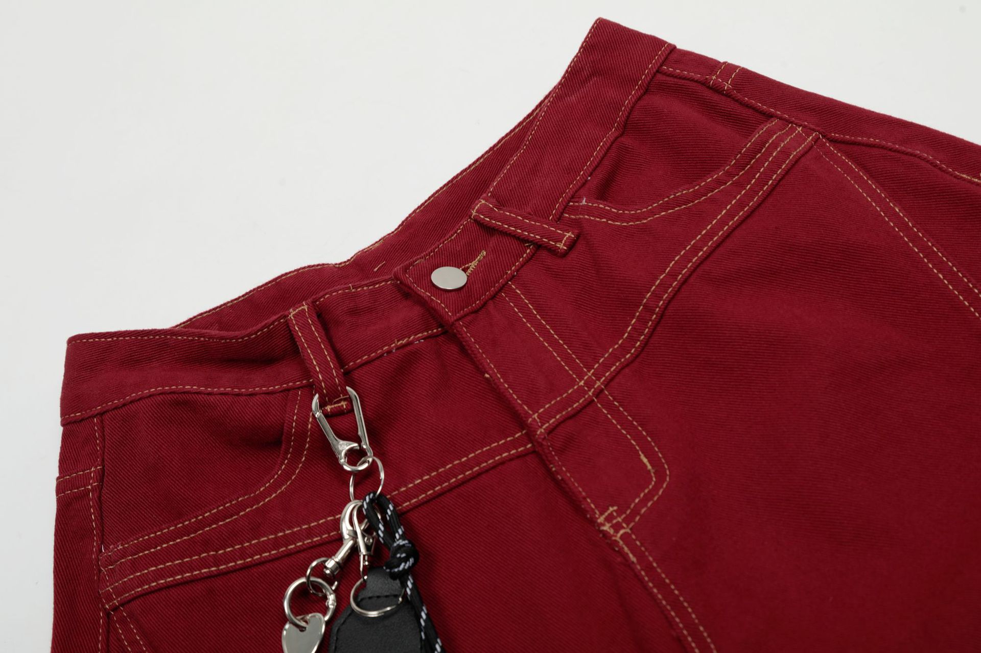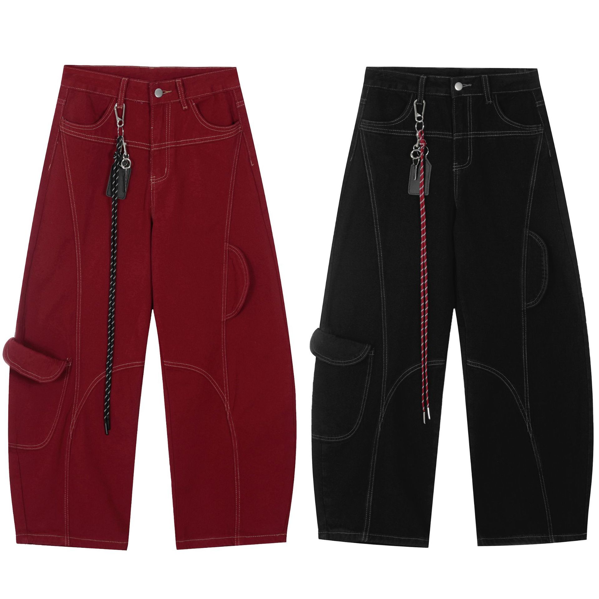 Eon Modish 2025 봄 새로운 미국 복고풍 느슨한 분할 디자인 캐주얼 바지스토어 가기