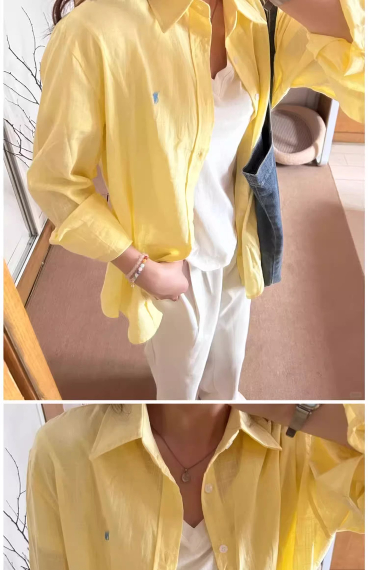 RL 랄프 포니 수놓은 남자와 여자의 긴 소매 태양 방지 폴로 셔츠 봄과 가을 리넨 셔츠 여성용 스윕 사이즈 커플