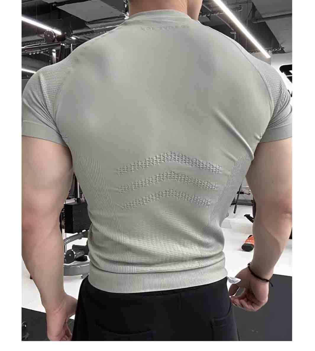 전문 피트니스 세트 원활한 반팔 스포츠 티셔츠 남자 여름 달리기 훈련 빠른 건조 압축 타이트 야외 탑스토어 가기