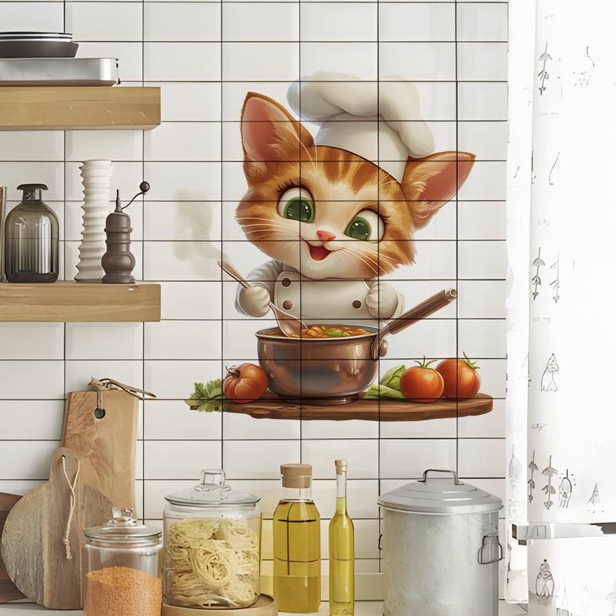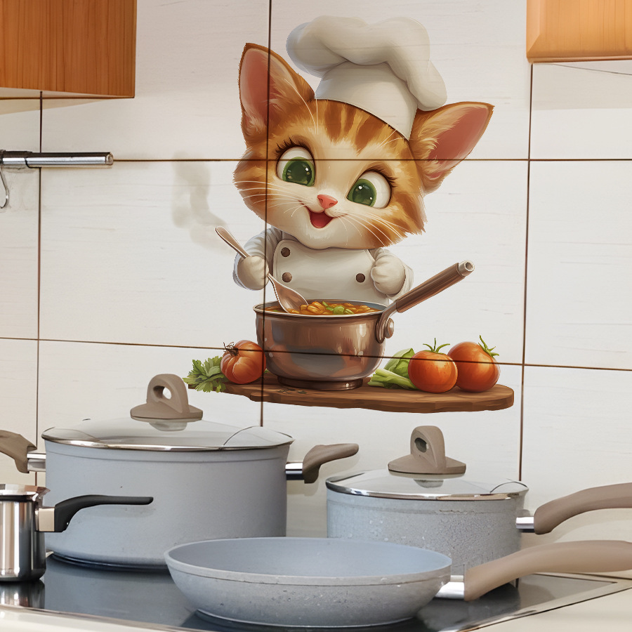 HS3606C 원래 귀여운 만화 고양이 요리사 자기 접착 벽 스티커 주방 냉장고 레스토랑 바 장식 스티커스토어 가기