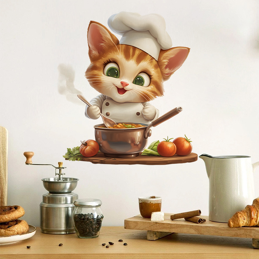 HS3606C 원래 귀여운 만화 고양이 요리사 자기 접착 벽 스티커 주방 냉장고 레스토랑 바 장식 스티커