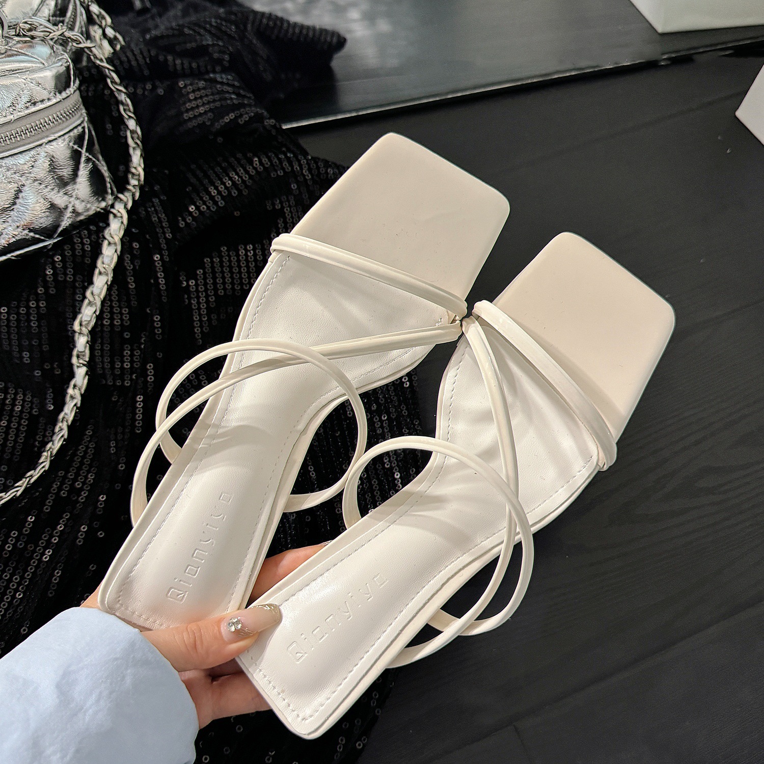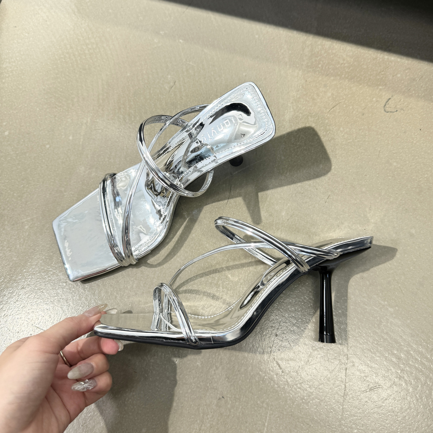 골든 스타일 골든 테이퍼 샌들 2025 새로운 도착 테이퍼 샌들 스퀘어 힐 오픈 발가락 신발 스커트