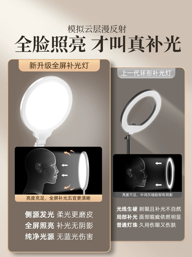 라이브 뷰티 필 라이트 앵커 특수 데스크탑 플로어 라이트 셀카 짧은 비디오 소프트 라이트 화이트 전체 화면