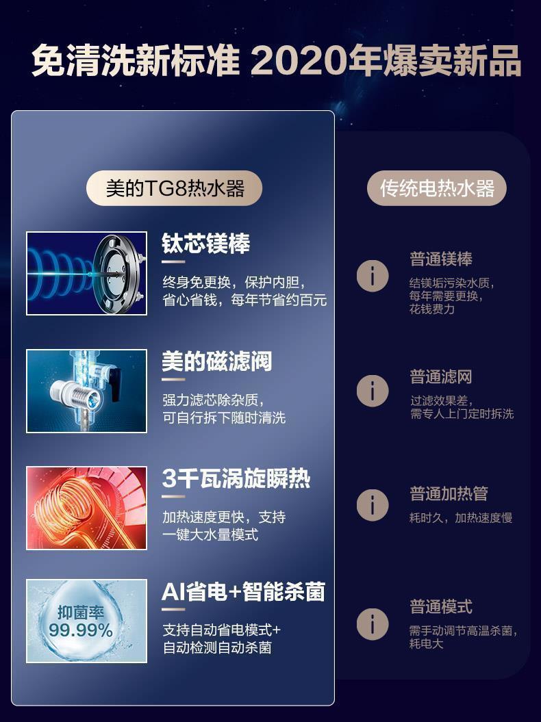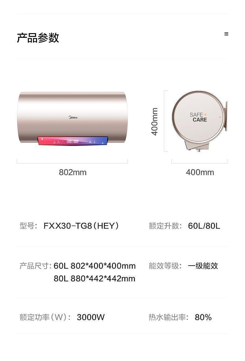 Midea 전기 온수기 스마트 가전 홈 빠른 열 목욕 살균 60L 80L 전자 마그네슘로드 시리즈 절전스토어 가기