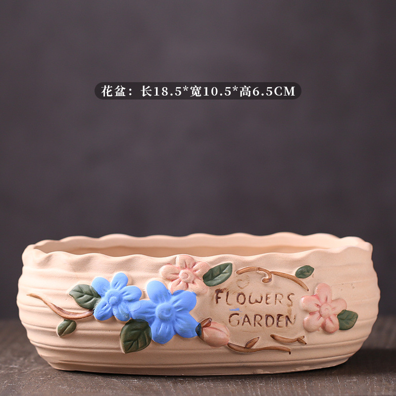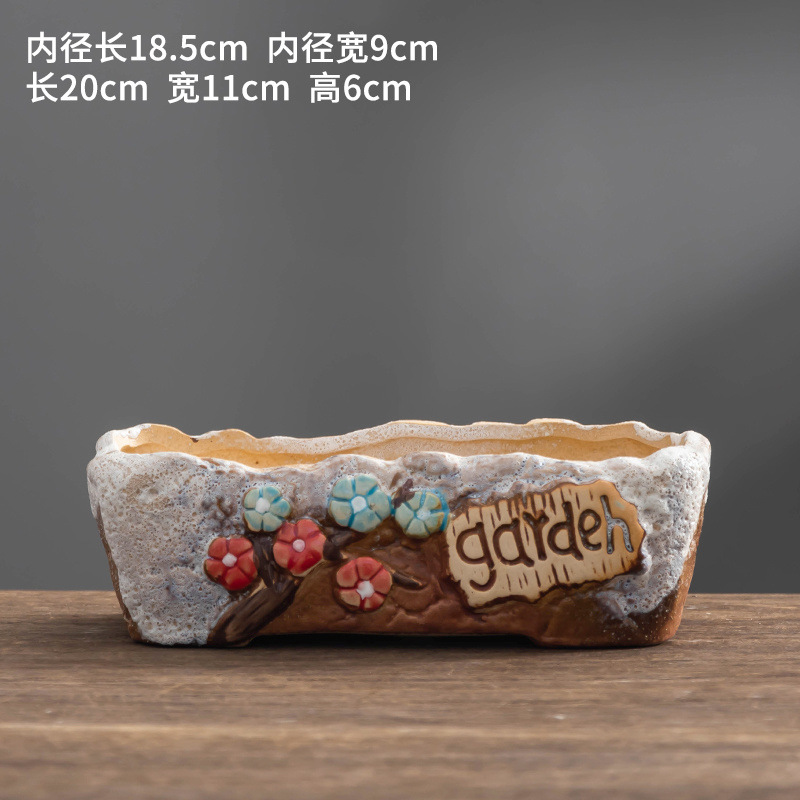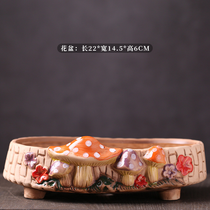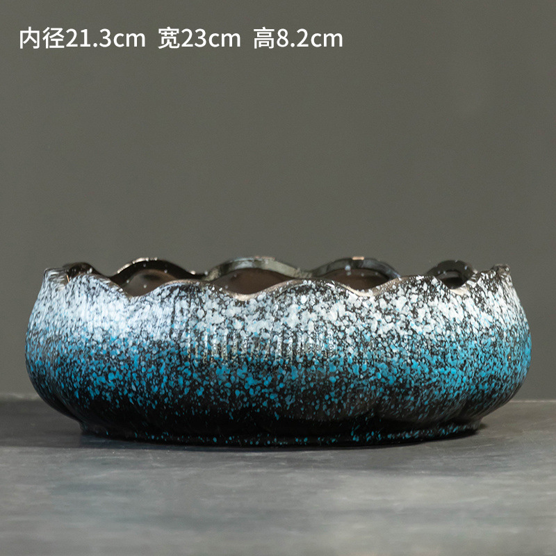 ∝ [점포 판매] 목가적 복고풍 다육 화분 가정용 세라믹 실내 큰 직경 선인장 플래터 두께