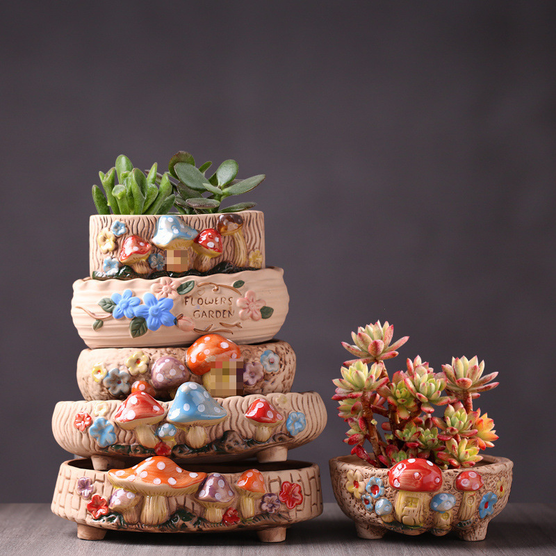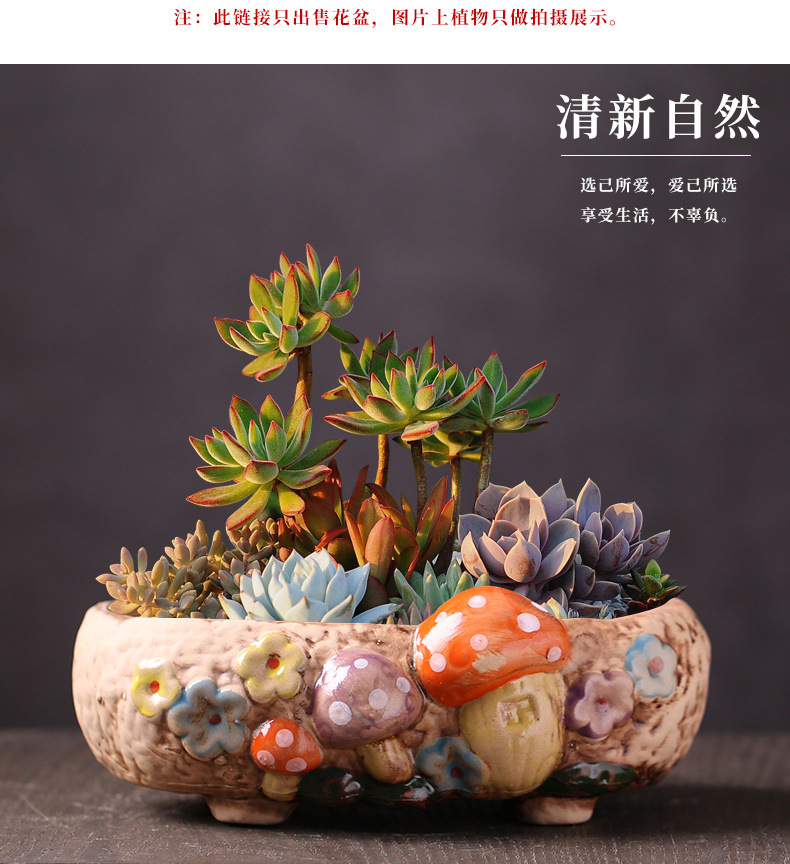 ∝ [점포 판매] 목가적 복고풍 다육 화분 가정용 세라믹 실내 큰 직경 선인장 플래터 두께스토어 가기
