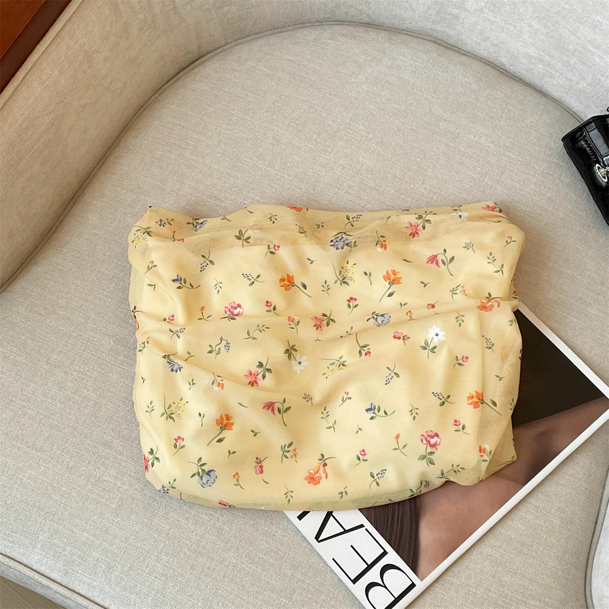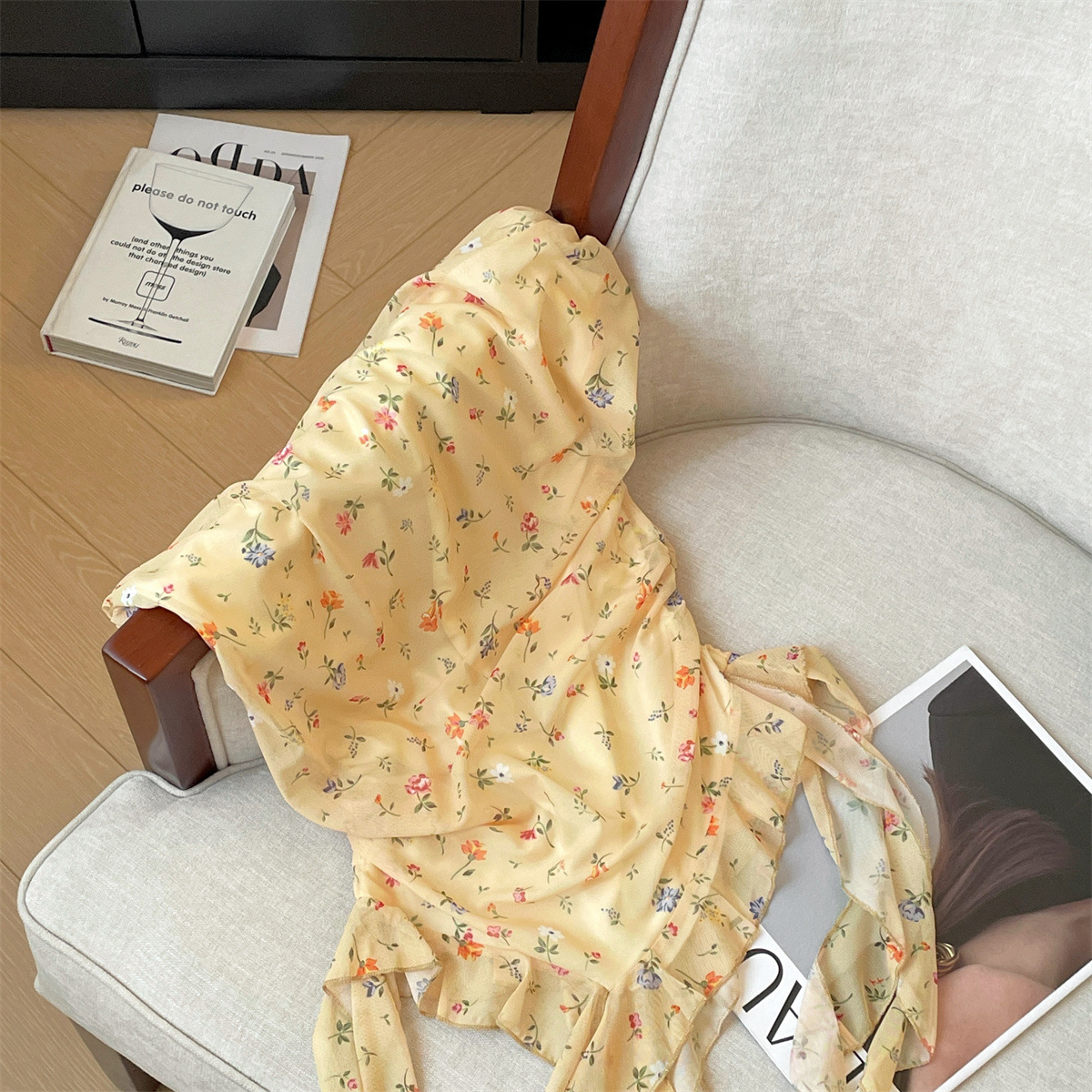 리얼 샷 여름 새로운 스타일 연예인 여성 아우터웨어 슬림 쉬폰 셔츠 하이 엔드 불규칙한 스트랩 꽃 여성을위한 순수한 욕망 탑