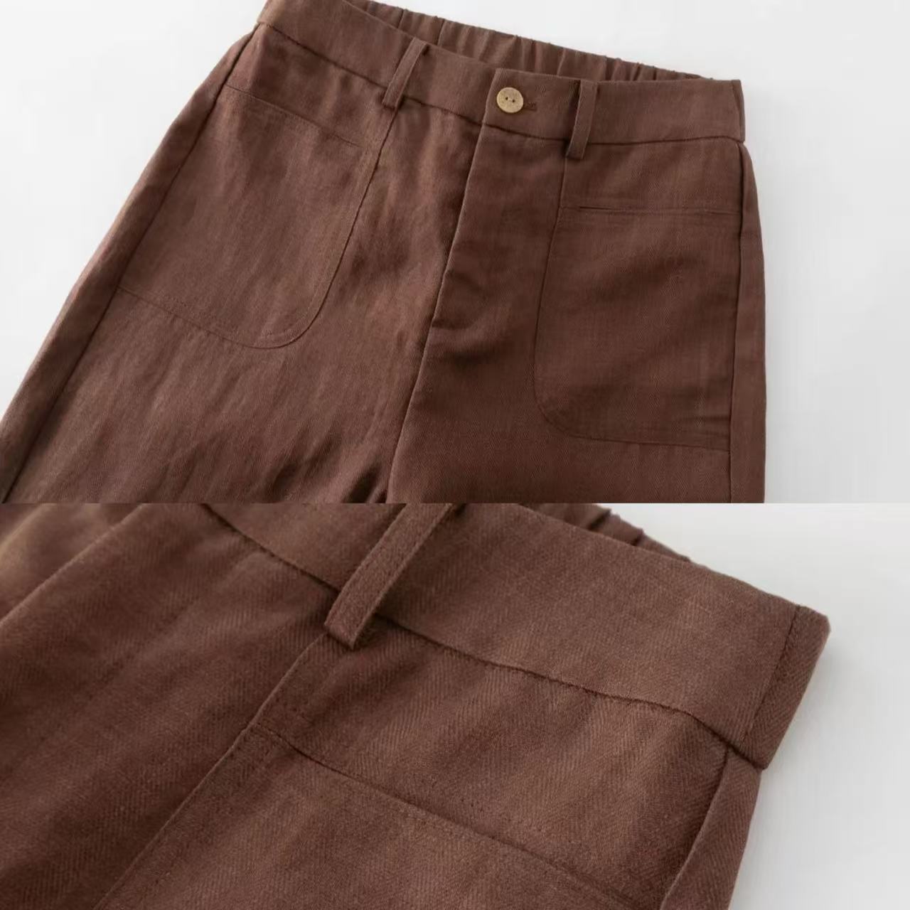 Tencel Linen 바지 여자 2025 년 여름 높은 허리 플러스 사이즈 시원한 통기성 중년 및 노인 어머니의 좁은 넓은 다리 바지스토어 가기