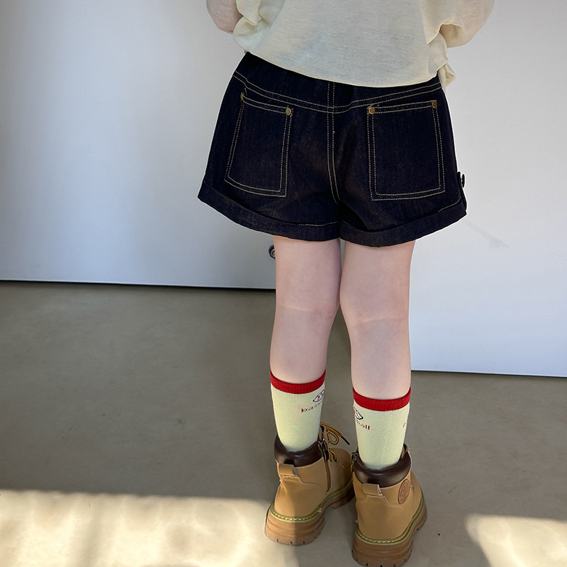 이모 베이베이 어린이 라벨링 컬 데님 반바지 소녀 여름 한국식 캐주얼 올매치 유행 3 점 핫 바지스토어 가기