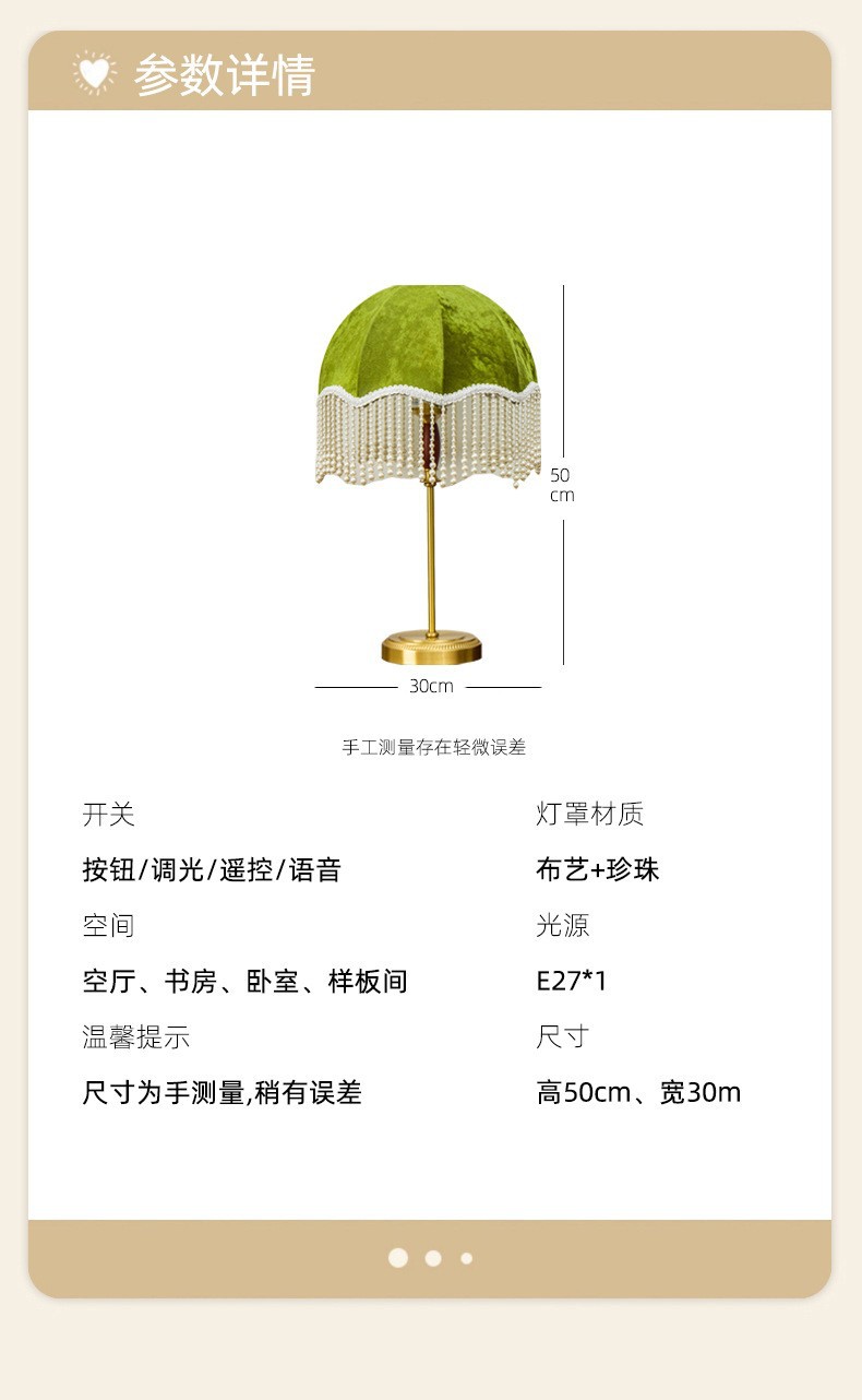 프랑스 복고풍 진주 술 테이블 램프 호텔 침실 거실 분위기 램프 LED 장식 클래식 머리맡 램프 Dropshipping
