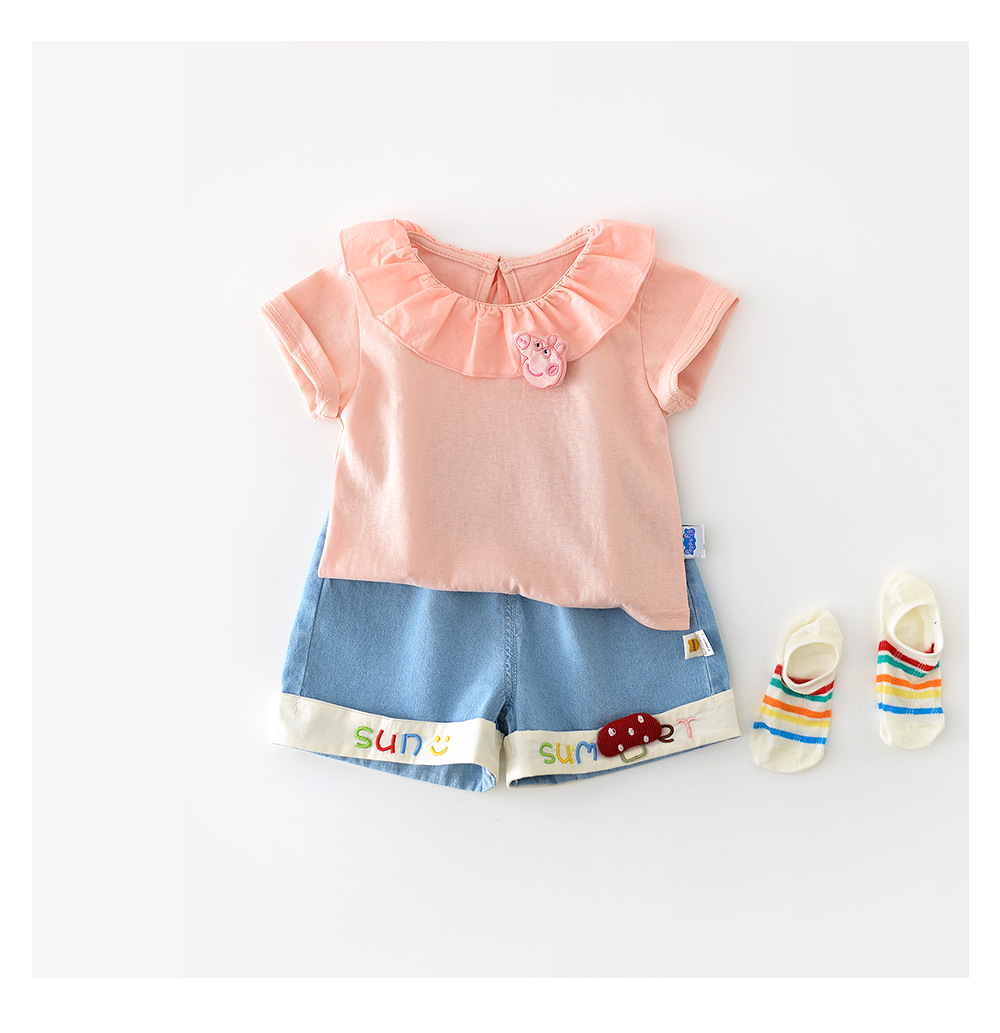 2025 여름 새 돼지 고기 페이지 소녀 반팔베이스 셔츠 아기와 유아 엘 만화 티셔츠 52108