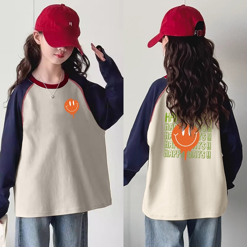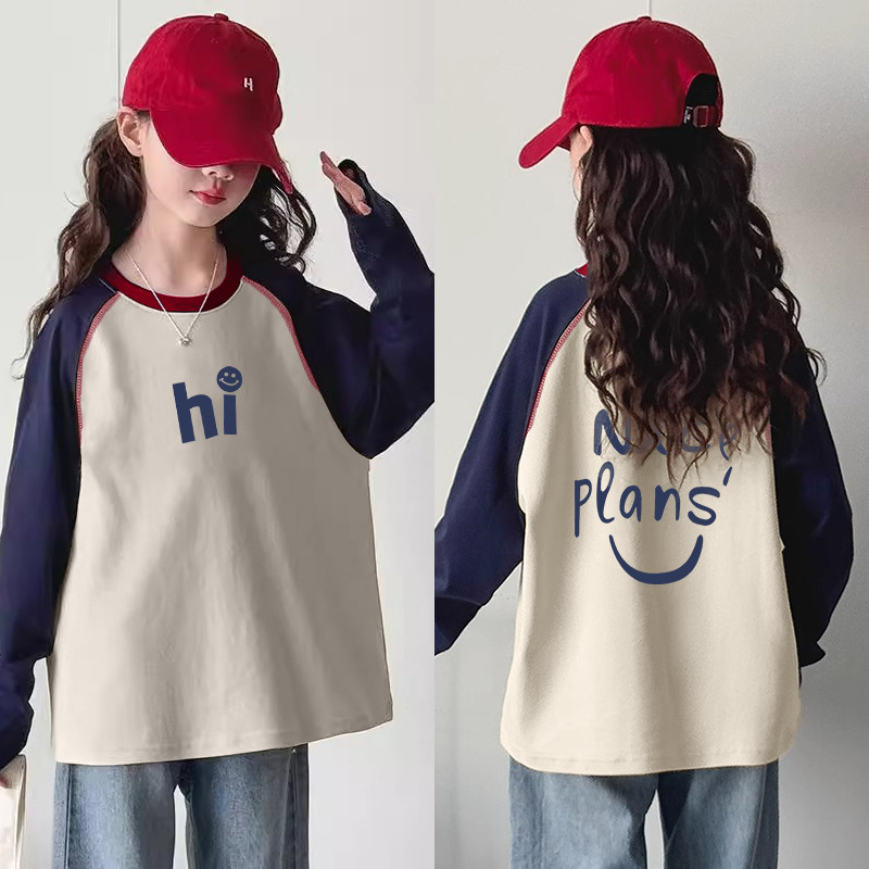 소녀 대비 컬러 긴 소매 티셔츠 느슨한 베이스 셔츠 봄과 가을 뉴 라글란 소매 이른 봄 대학생 어린이 톱 T