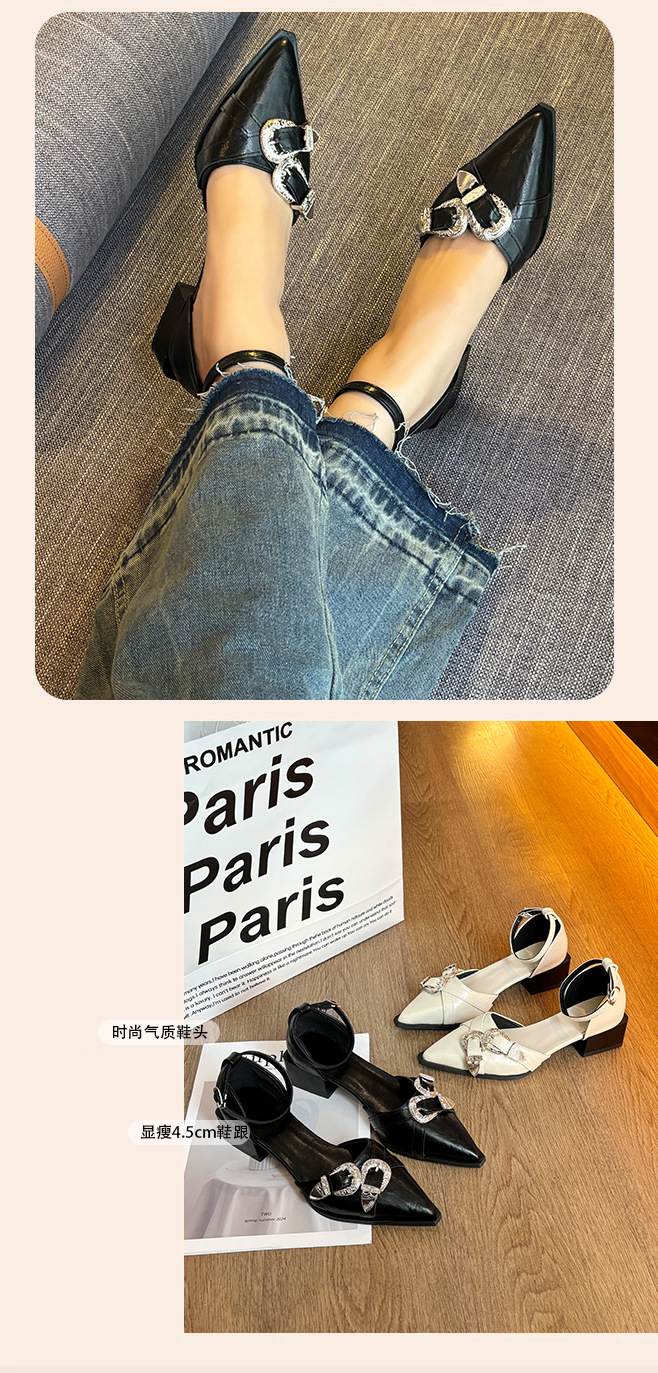 로우 힐 하이힐 신발 뾰족한 발가락 샌들 여성용 2024 년 새 여름 메리 제인 신발 프랑스 두꺼운 뒤꿈치 신발스토어 가기