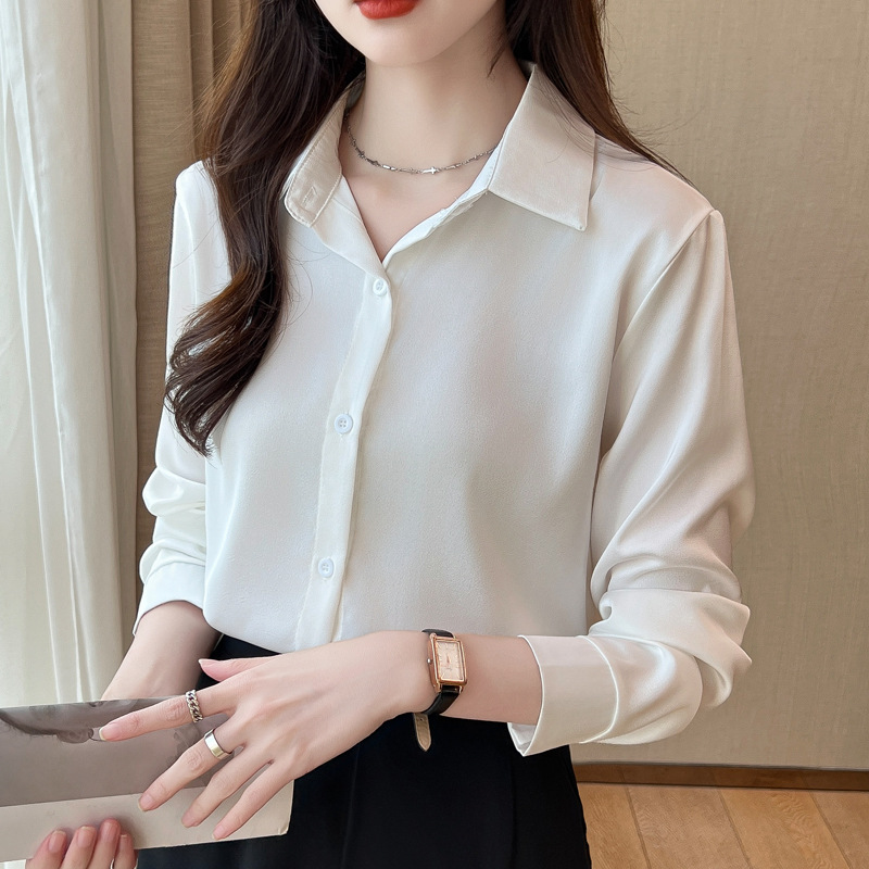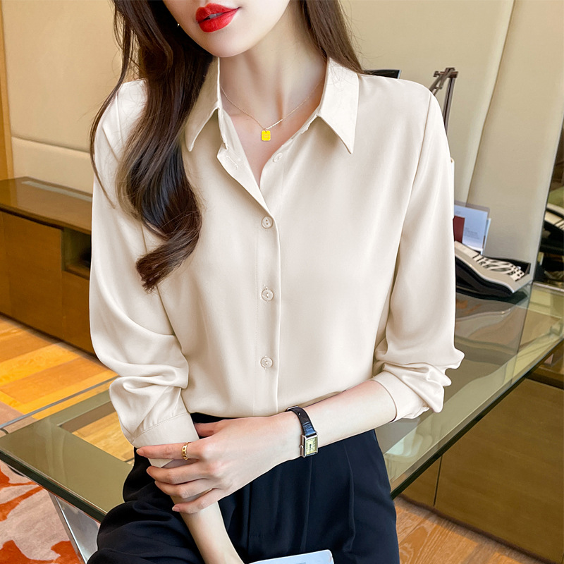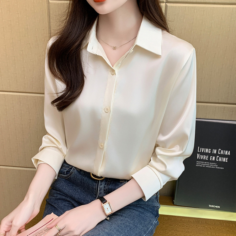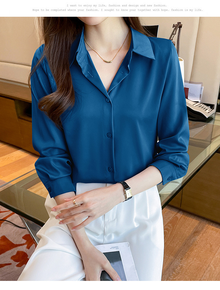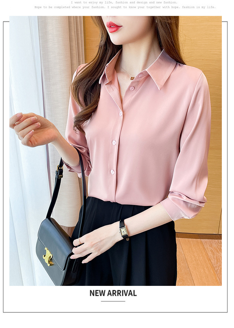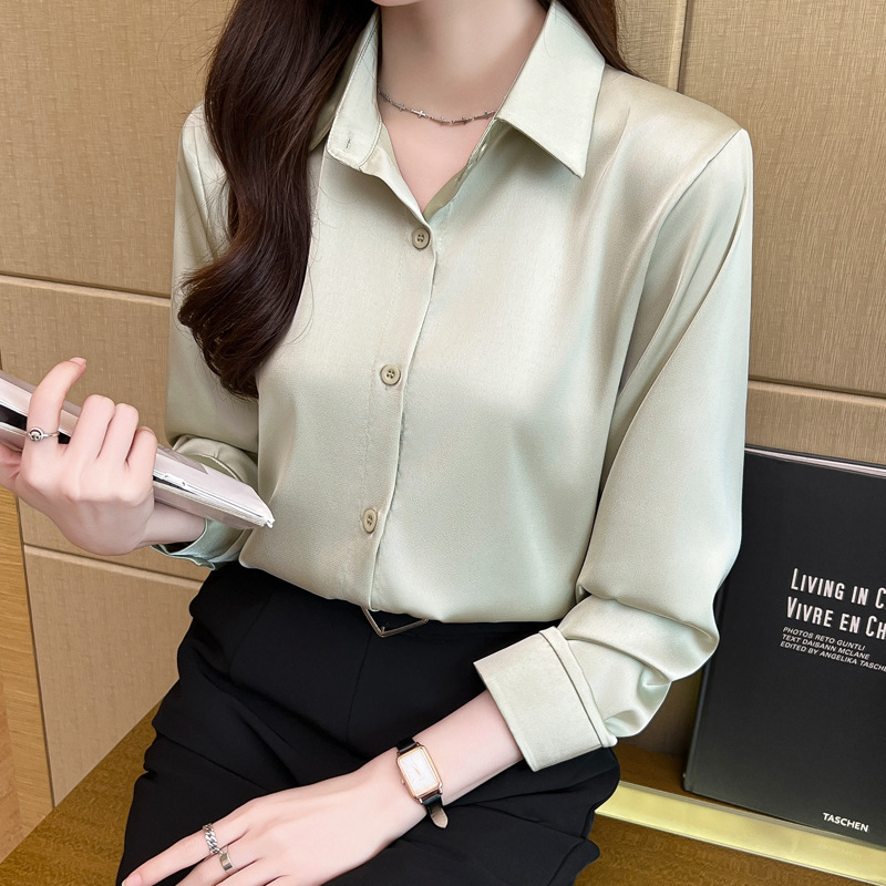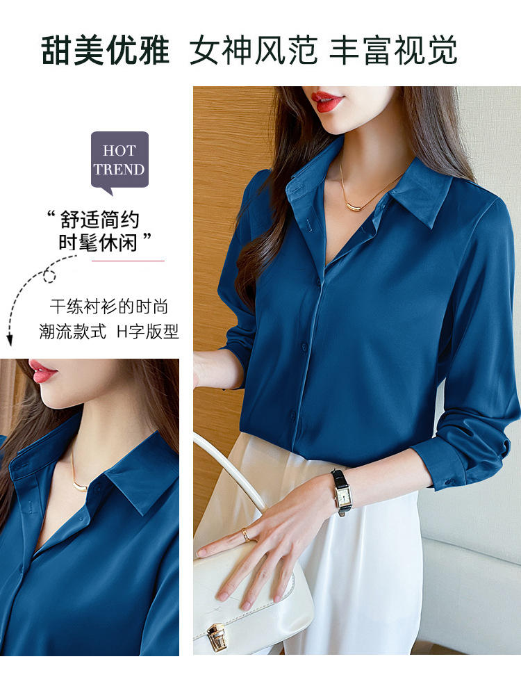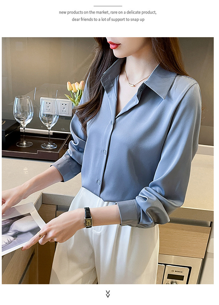 리얼 샷 2025 고급 비 다림질 방지 주름 새틴 셔츠 여성의 단색 아세트산 셔츠 봄스토어 가기