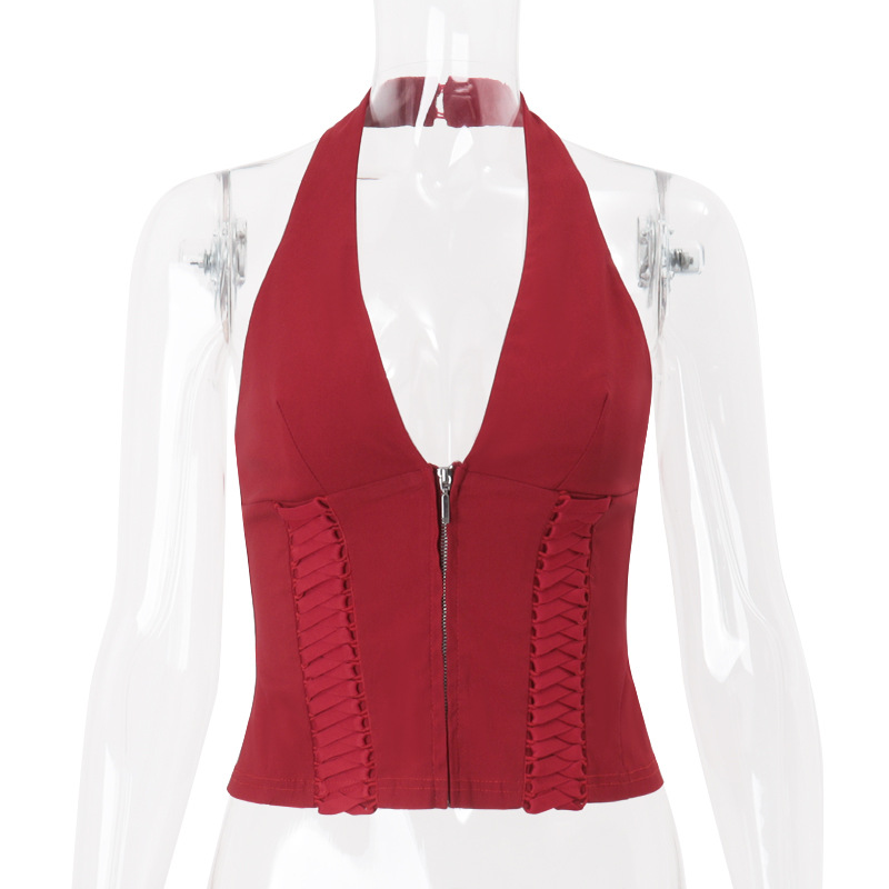 제니 같은 스타일 뜨거운 소녀 교수형 목 최고 여성의 2025 년 여름 새로운 유럽과 미국의 크로스 스트랩 디자인 짧은 조끼
