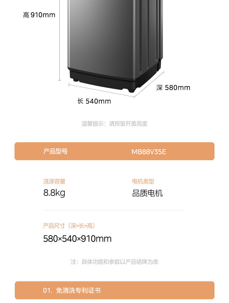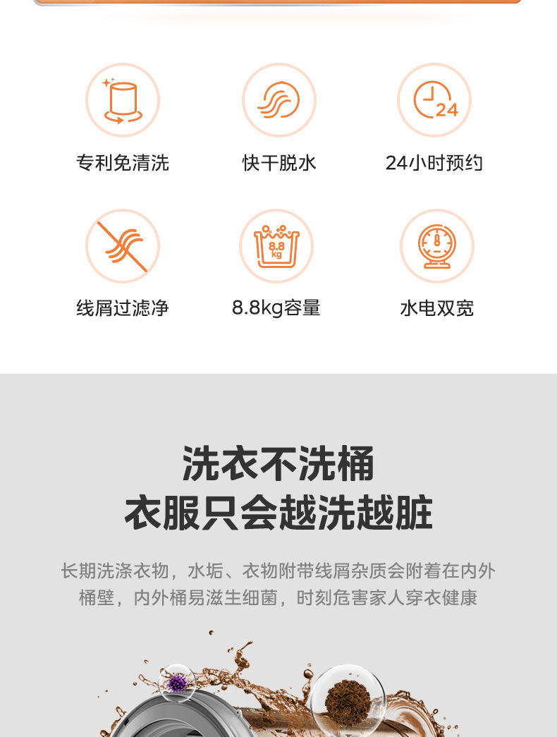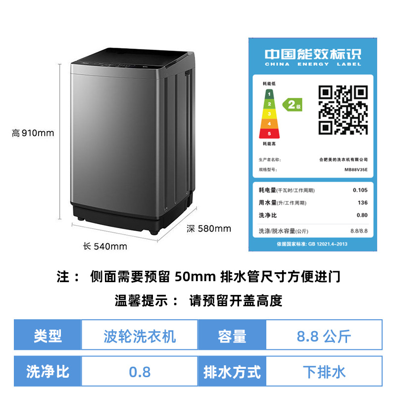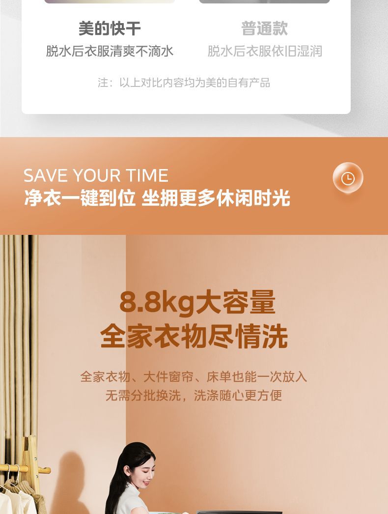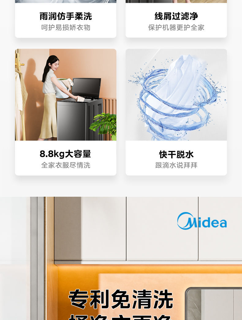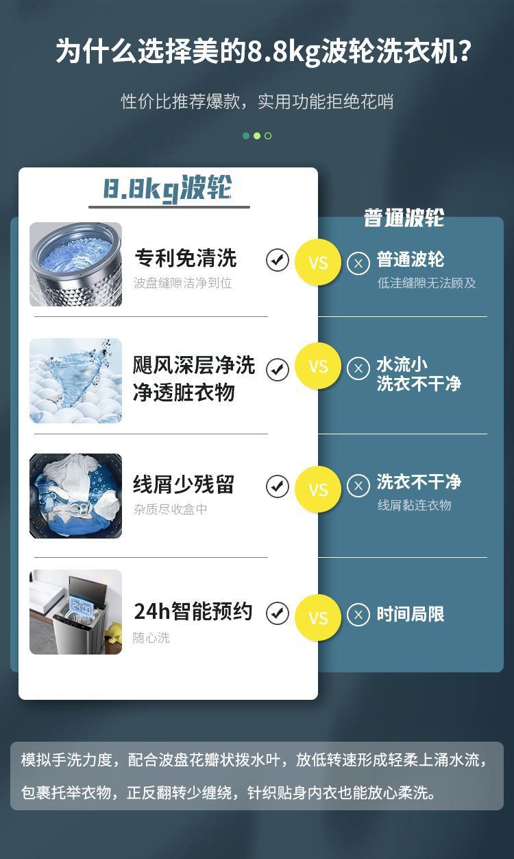 Midea pulsator 세탁기 완전 자동 가정용 대용량 8.8kg 임대 주택 기숙사 무료 청소 기타스토어 가기