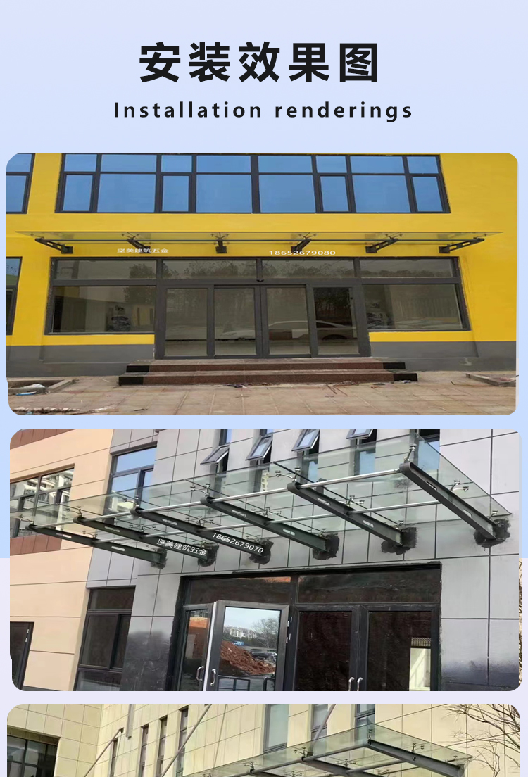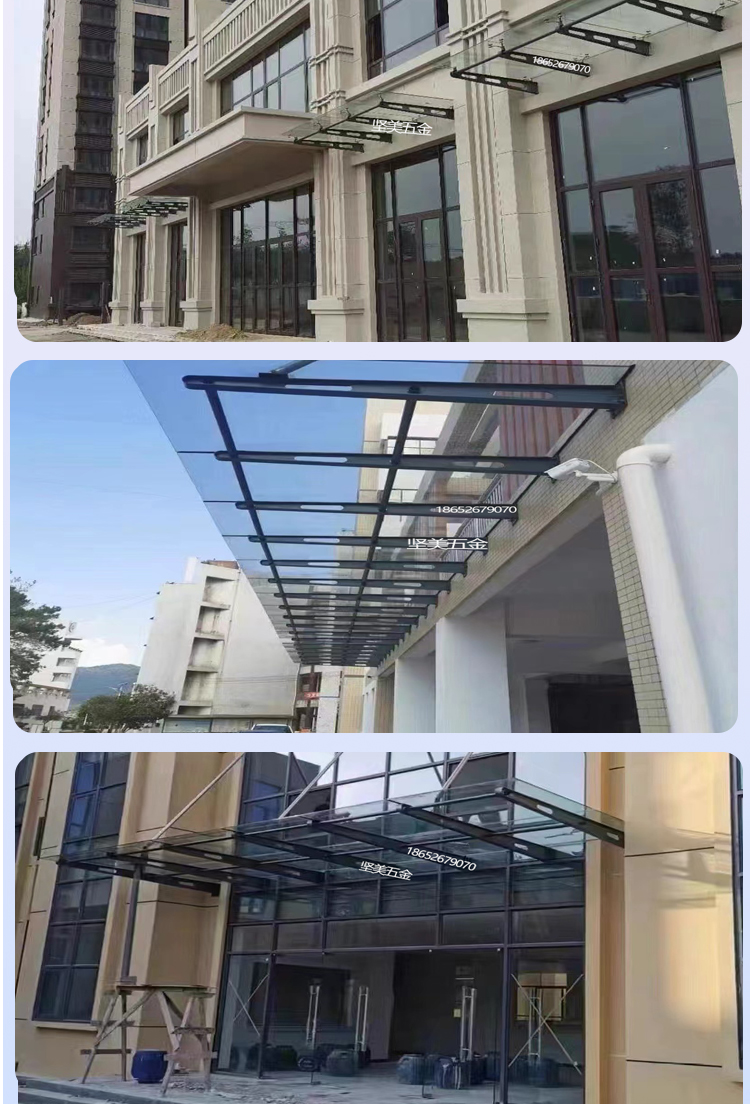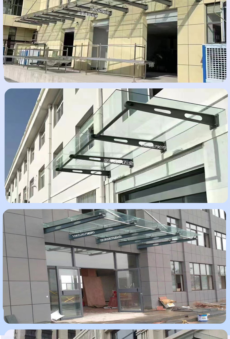 캐노피 강철 빔 브래킷 유리 캐노피 액세서리 탄소 강철 및 304 재료 H 자형 강철 구조 재고스토어 가기