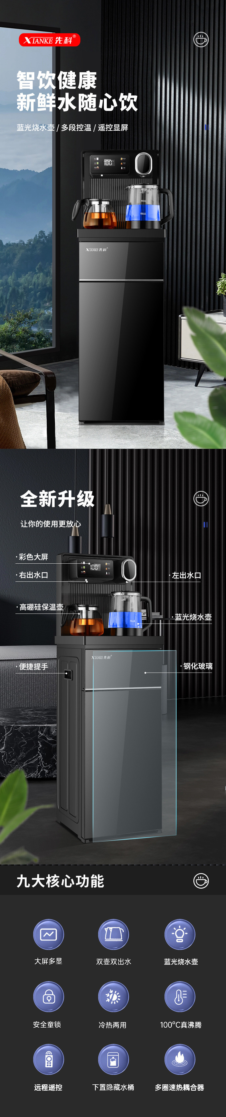 Xianke 워터 디스펜서 가정용 수직 자동 지능형 음성 티 바 기계 버킷 냉각 열 새로운 스타일스토어 가기