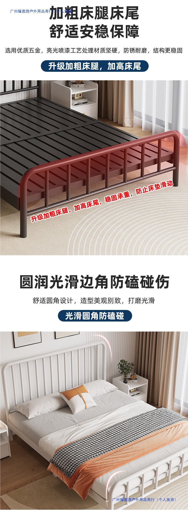내구성이 뛰어난 심플한 철제 침대 더블 침대 1.8m 철제 침대 싱글 1.6m m 철제 프레임 침대 홈 렌탈 룸 인터넷 연예인