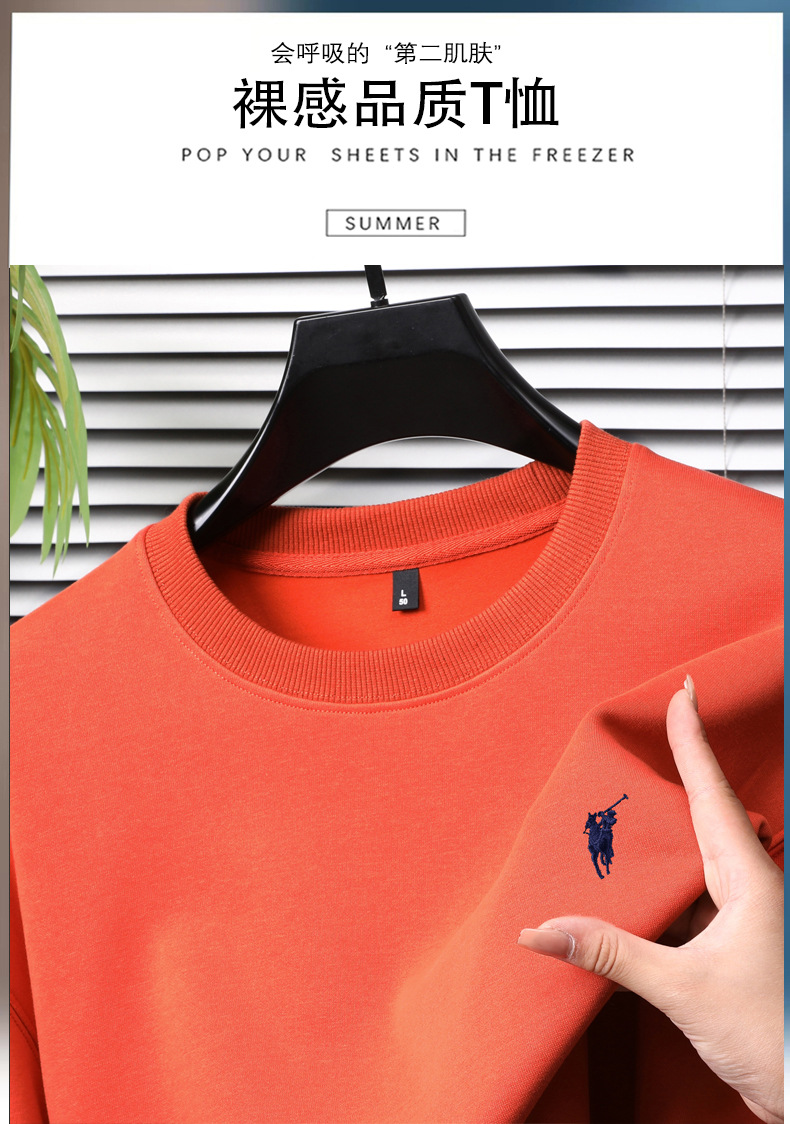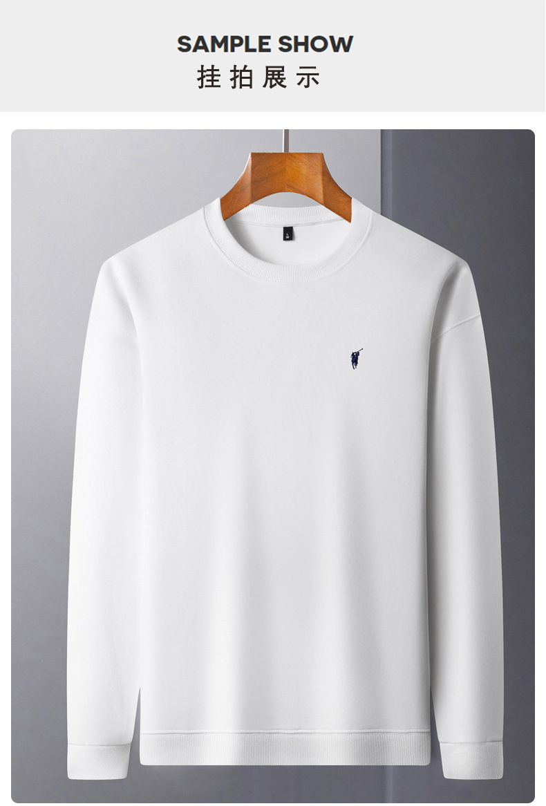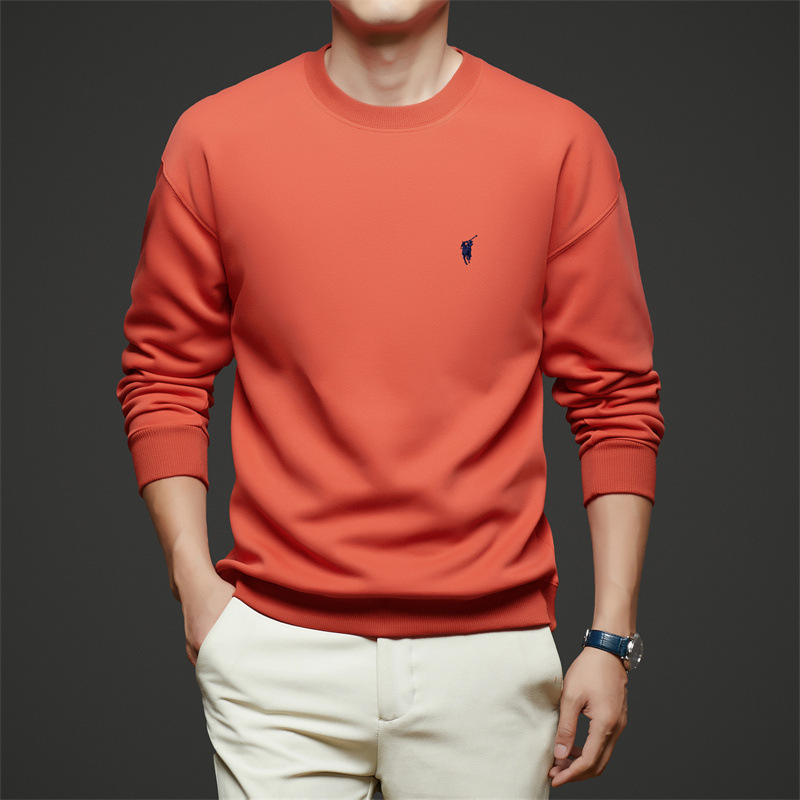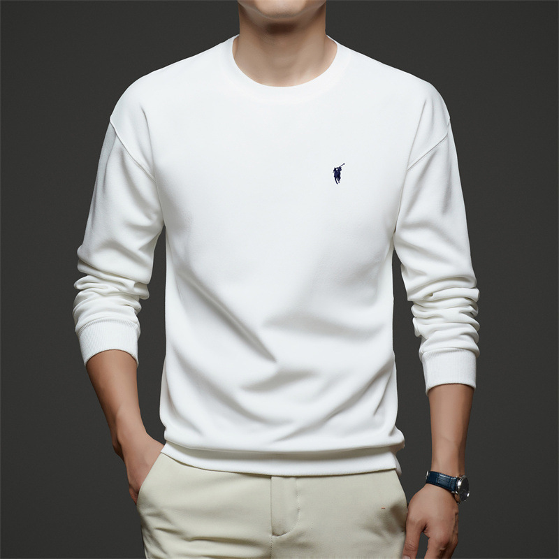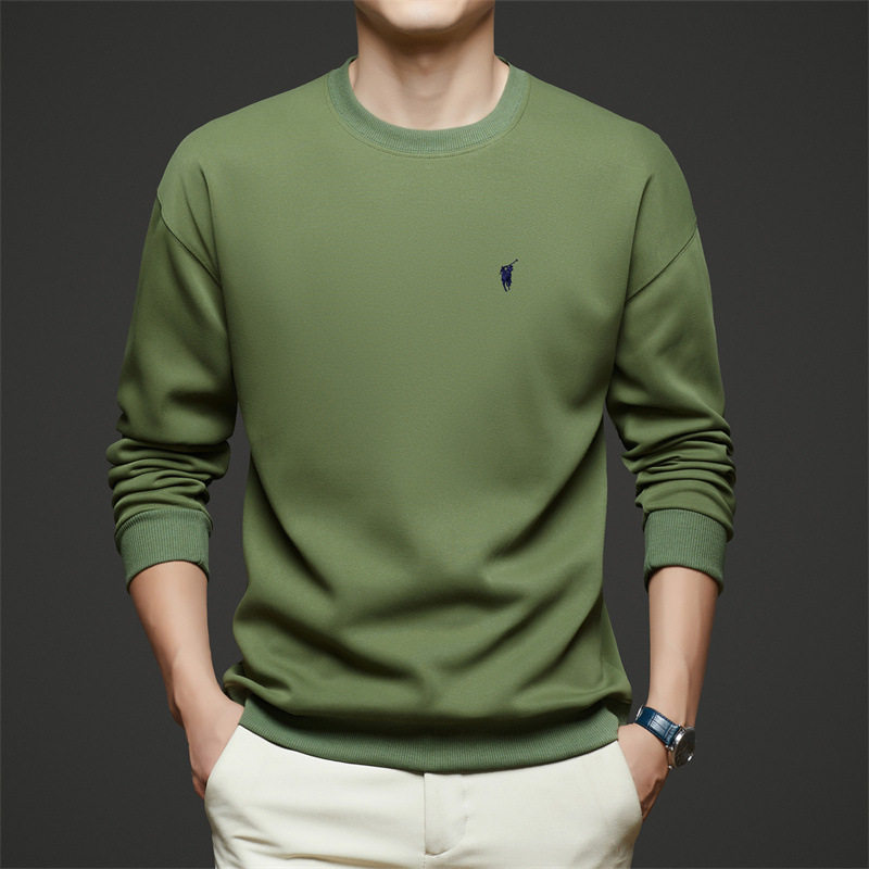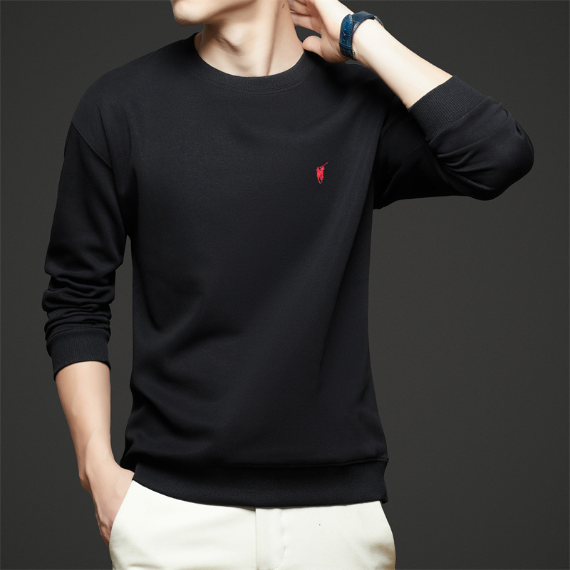 젊고 중년의 면화 긴팔 티셔츠 남자 2025 년 봄과 가을 새로운 하이 엔드 루즈 라운드 넥 포니 자수 남성 스웨트 셔츠스토어 가기