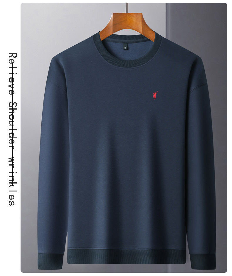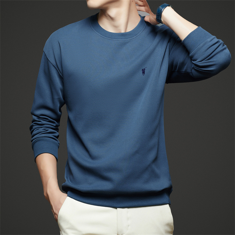 젊고 중년의 면화 긴팔 티셔츠 남자 2025 년 봄과 가을 새로운 하이 엔드 루즈 라운드 넥 포니 자수 남성 스웨트 셔츠