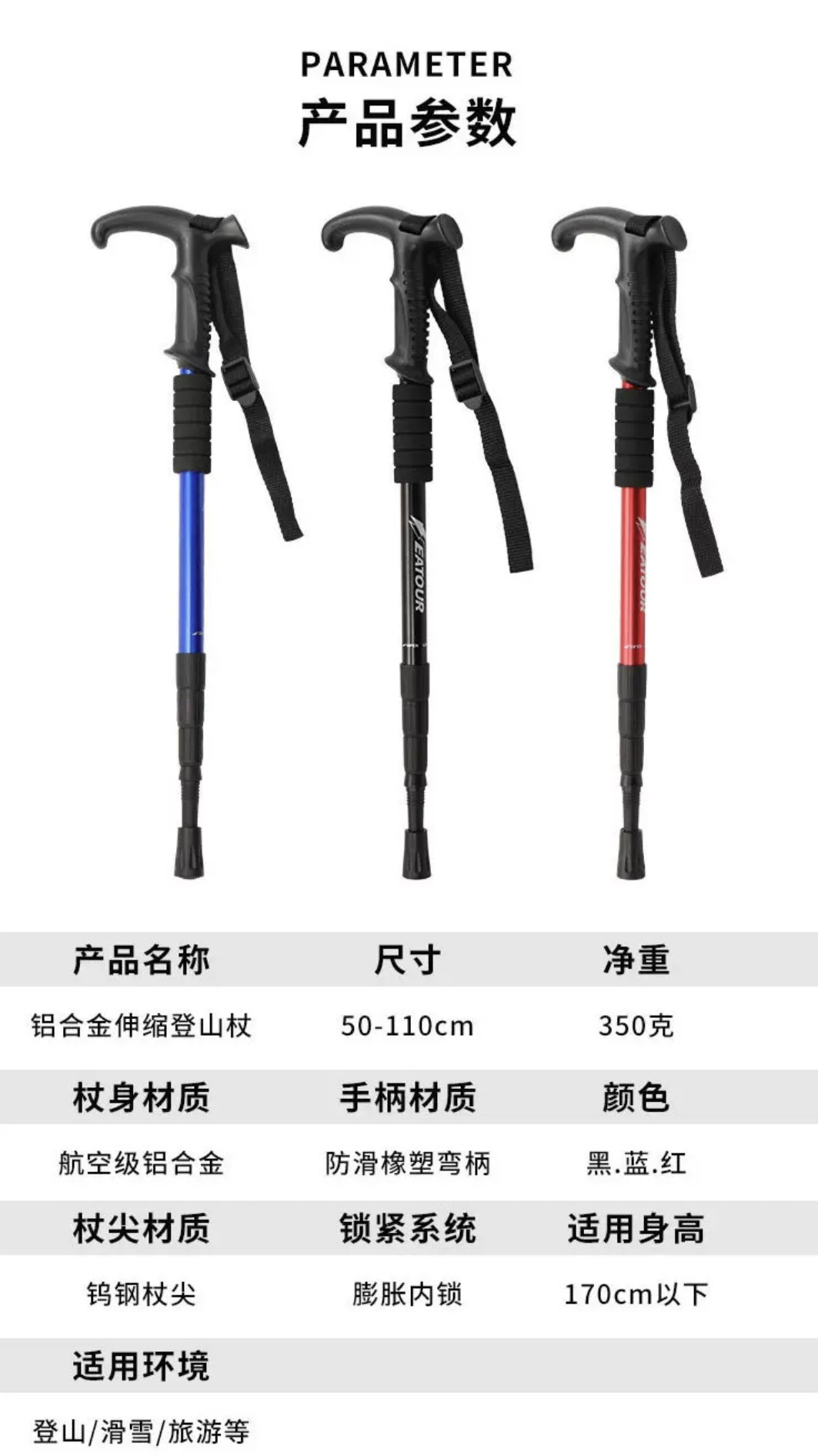 노인 알루미늄 합금 하이킹 스틱 목발 지팡이 도매를위한 야외 여행 하이킹 스틱 개폐식 등산 지팡이스토어 가기
