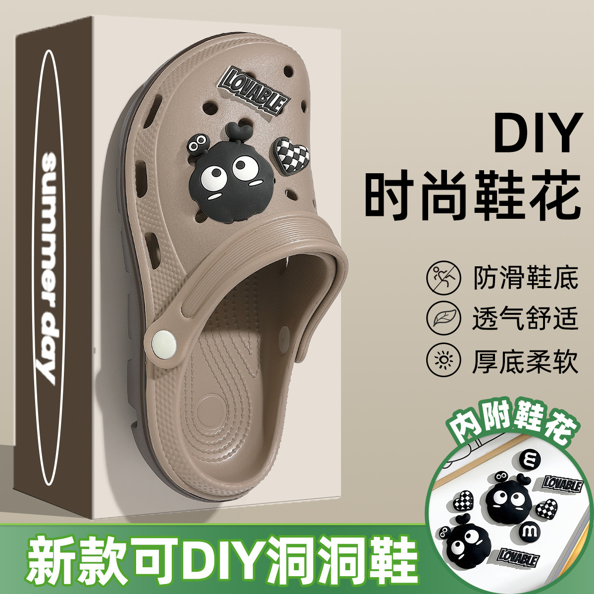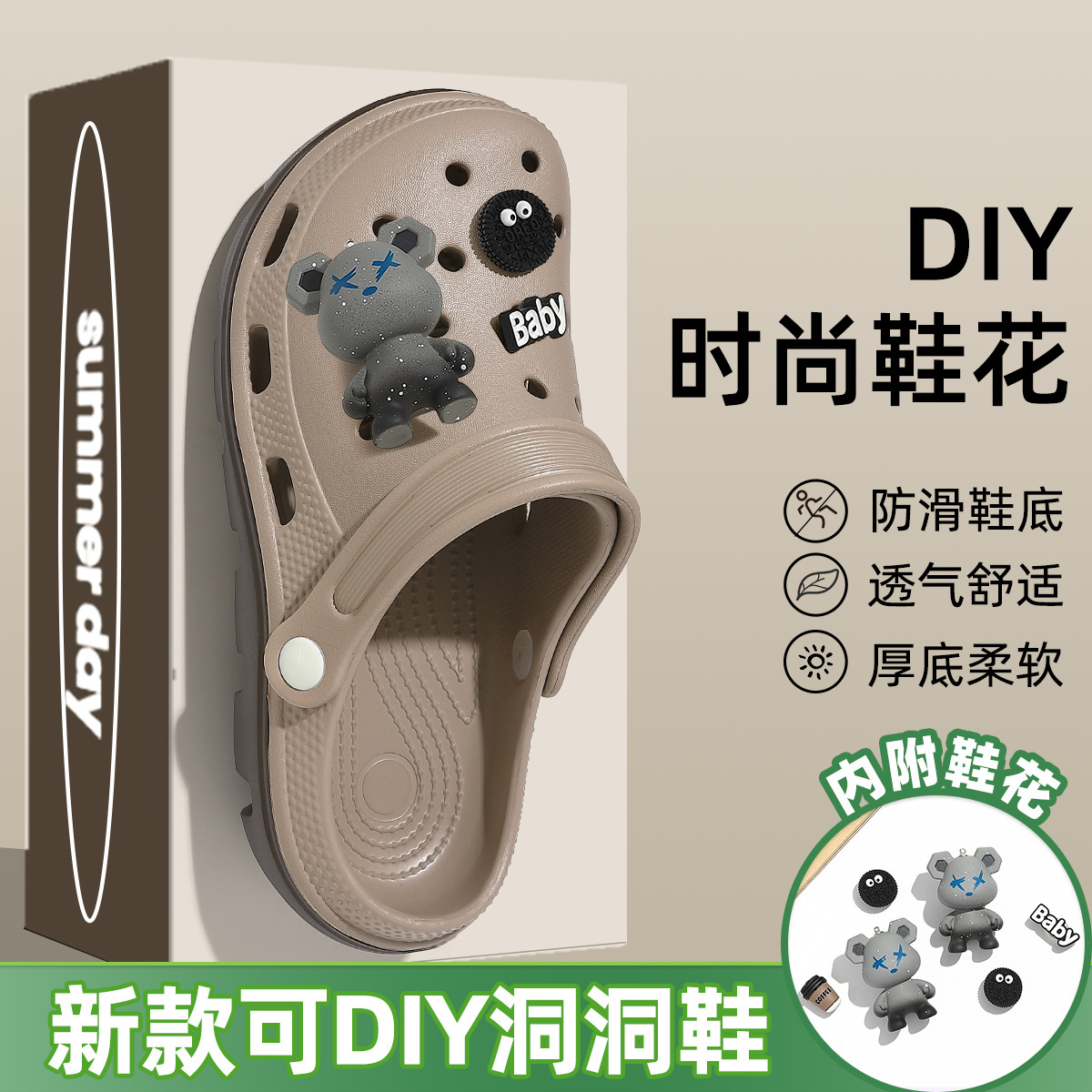 남성용 미끄럼 방지 홀 슬리퍼, 여름 아웃도어 비치웨어, 통기성 아치 지지대, 두꺼운 밑창, 남성용 에바 슬리퍼 도매