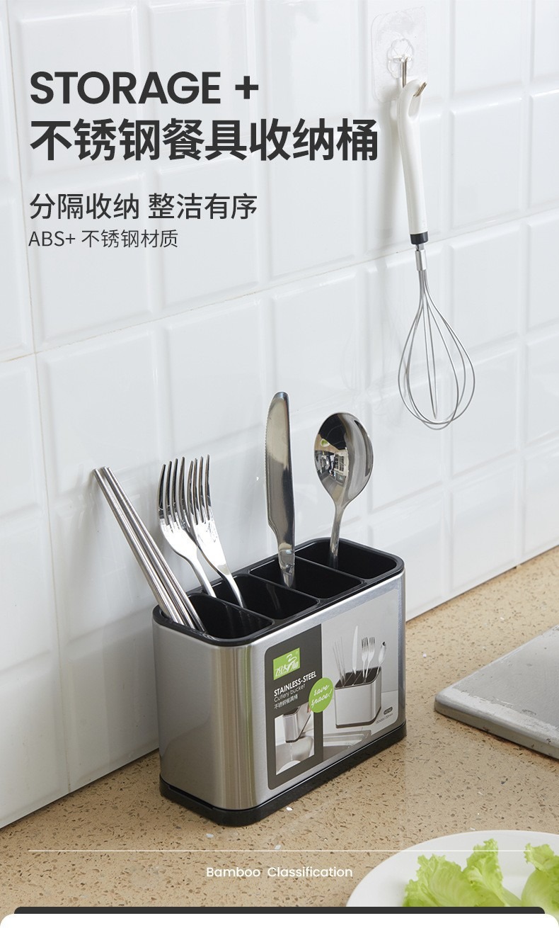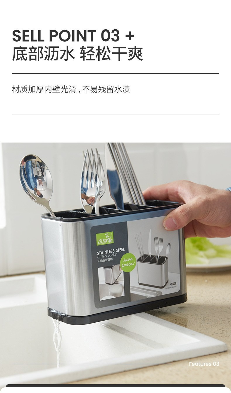 새로운 스테인레스 스틸 젓가락 저장 랙 분할 젓가락 홀더 다기능 통합 배수 저장 상자 주방 보관 랙