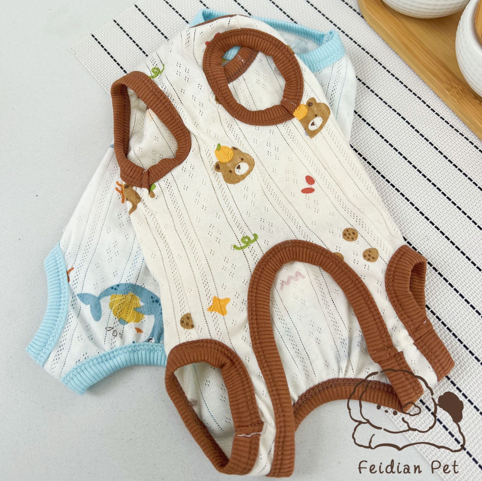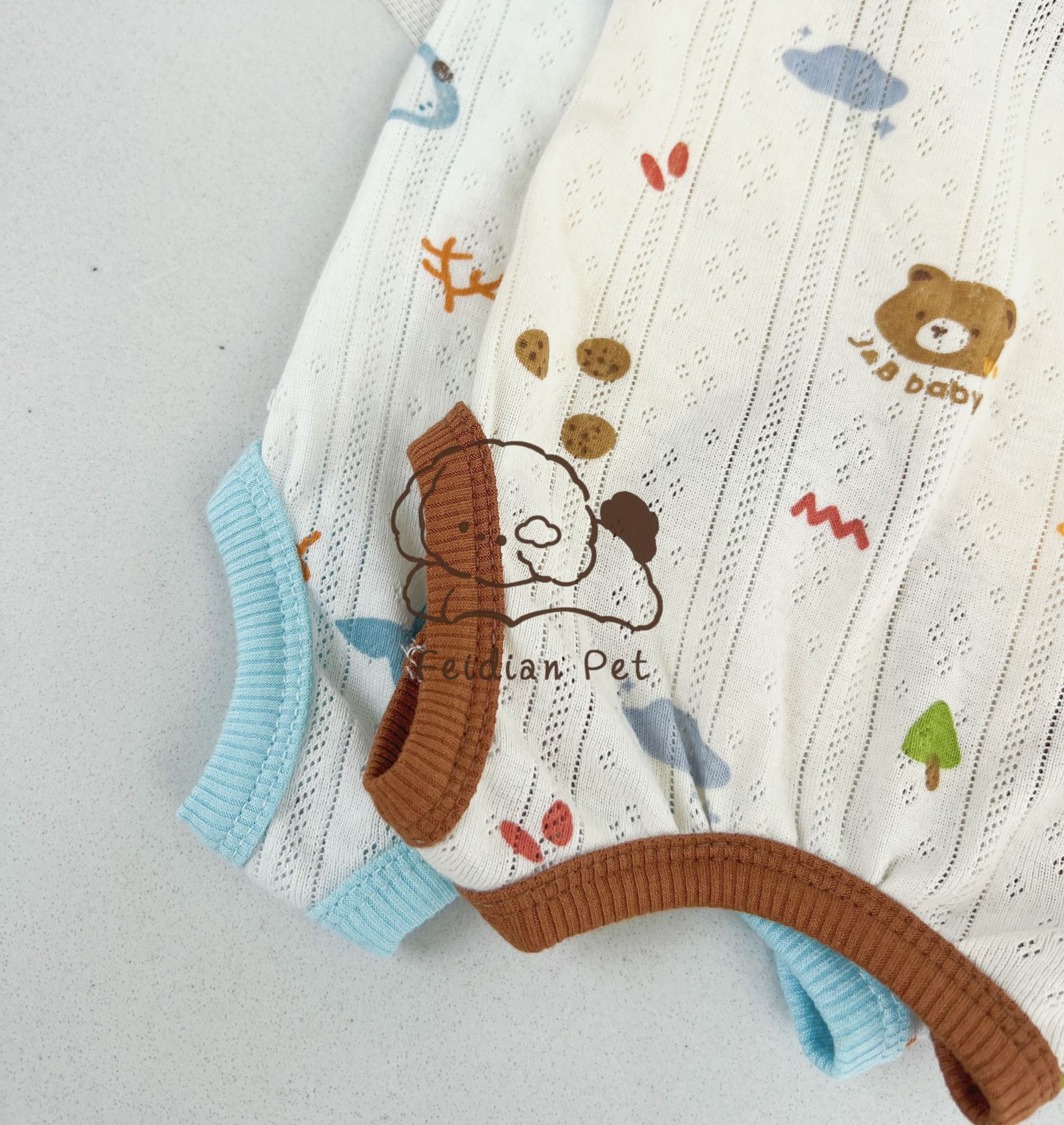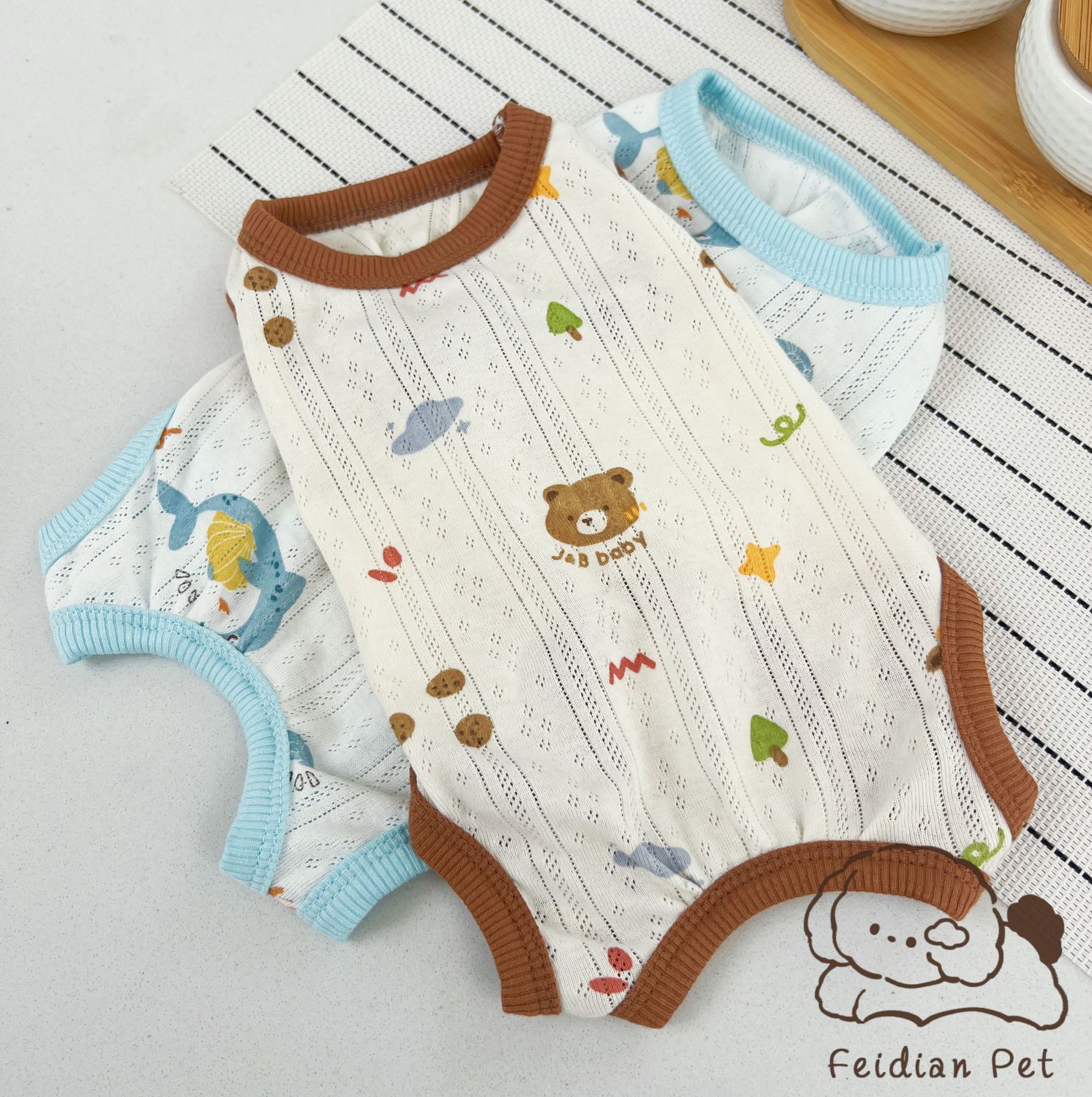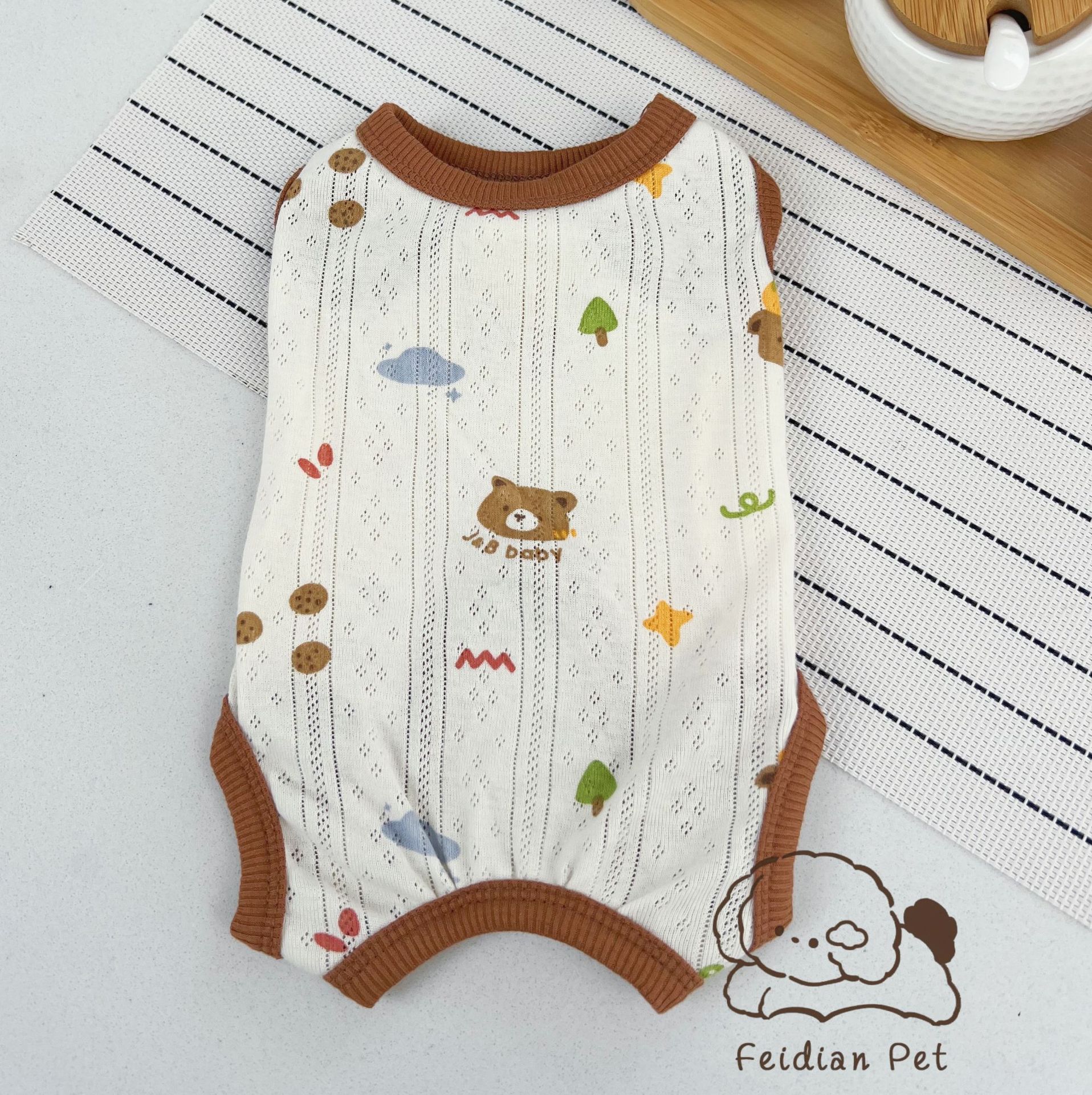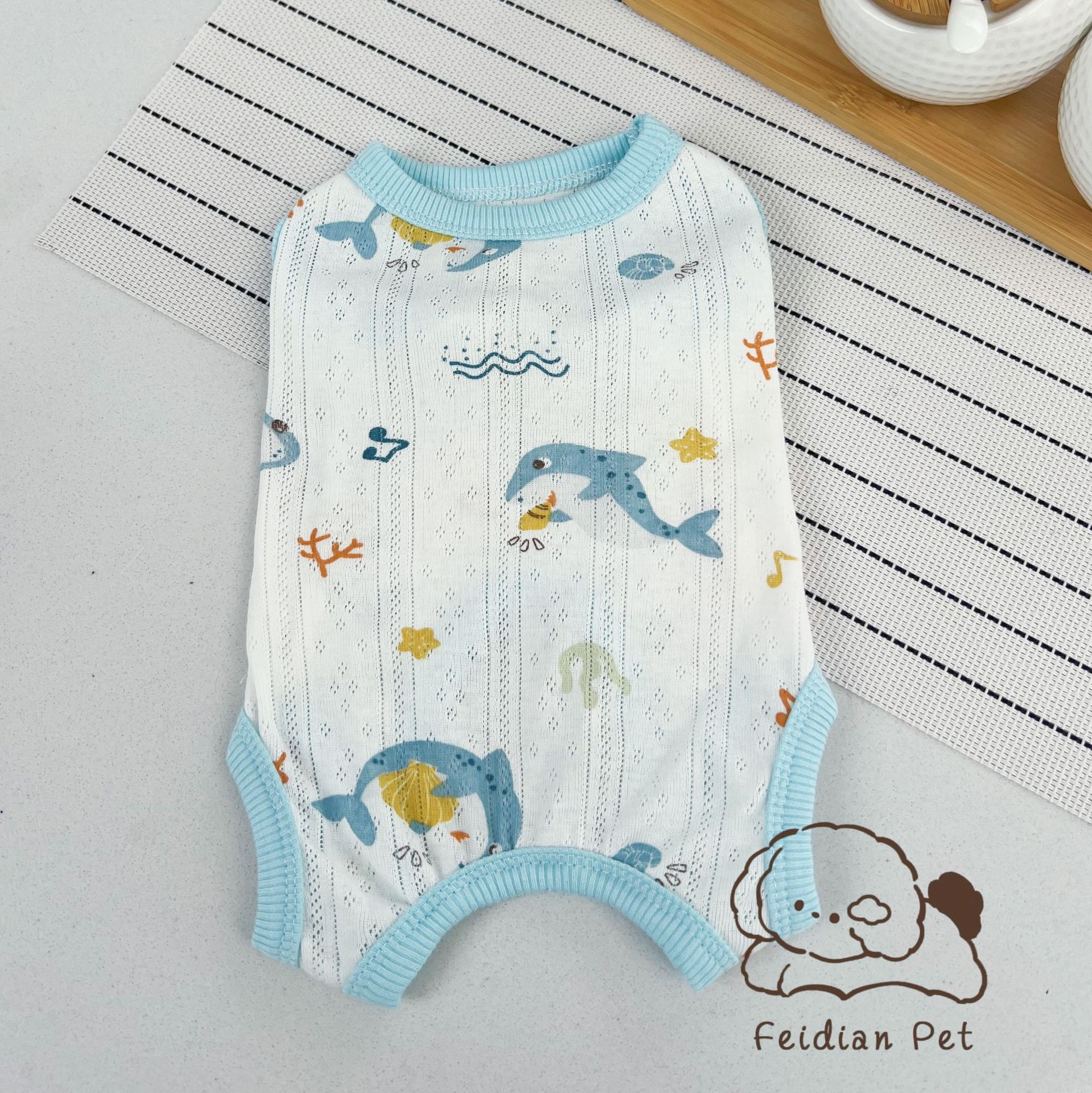 25 봄과 여름 새로운 순면 대조 컬러 인쇄 4 다리 배 보호 의류 고양이 작은 개 경량 통기성 안티 쿨 에어컨 의류