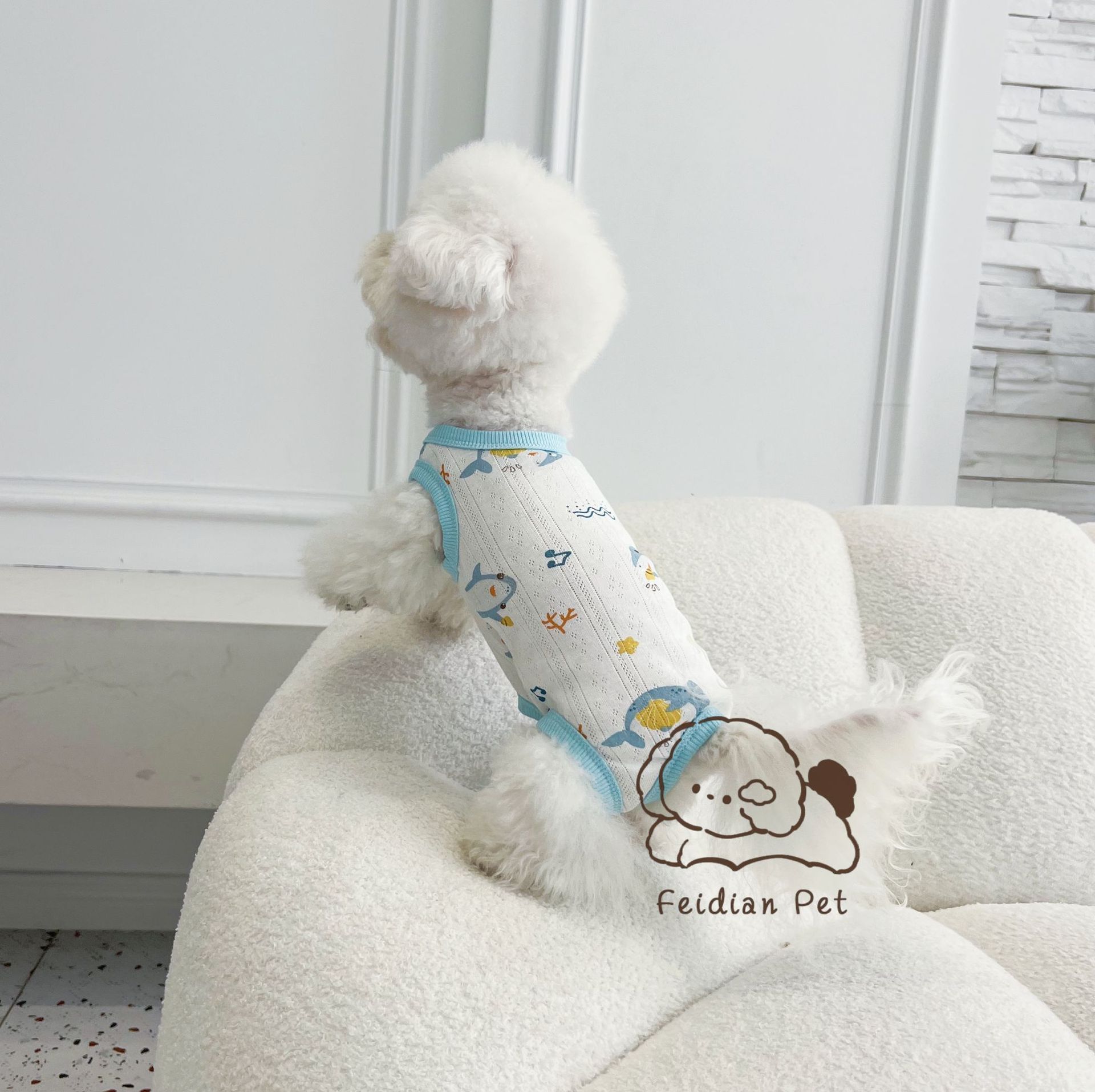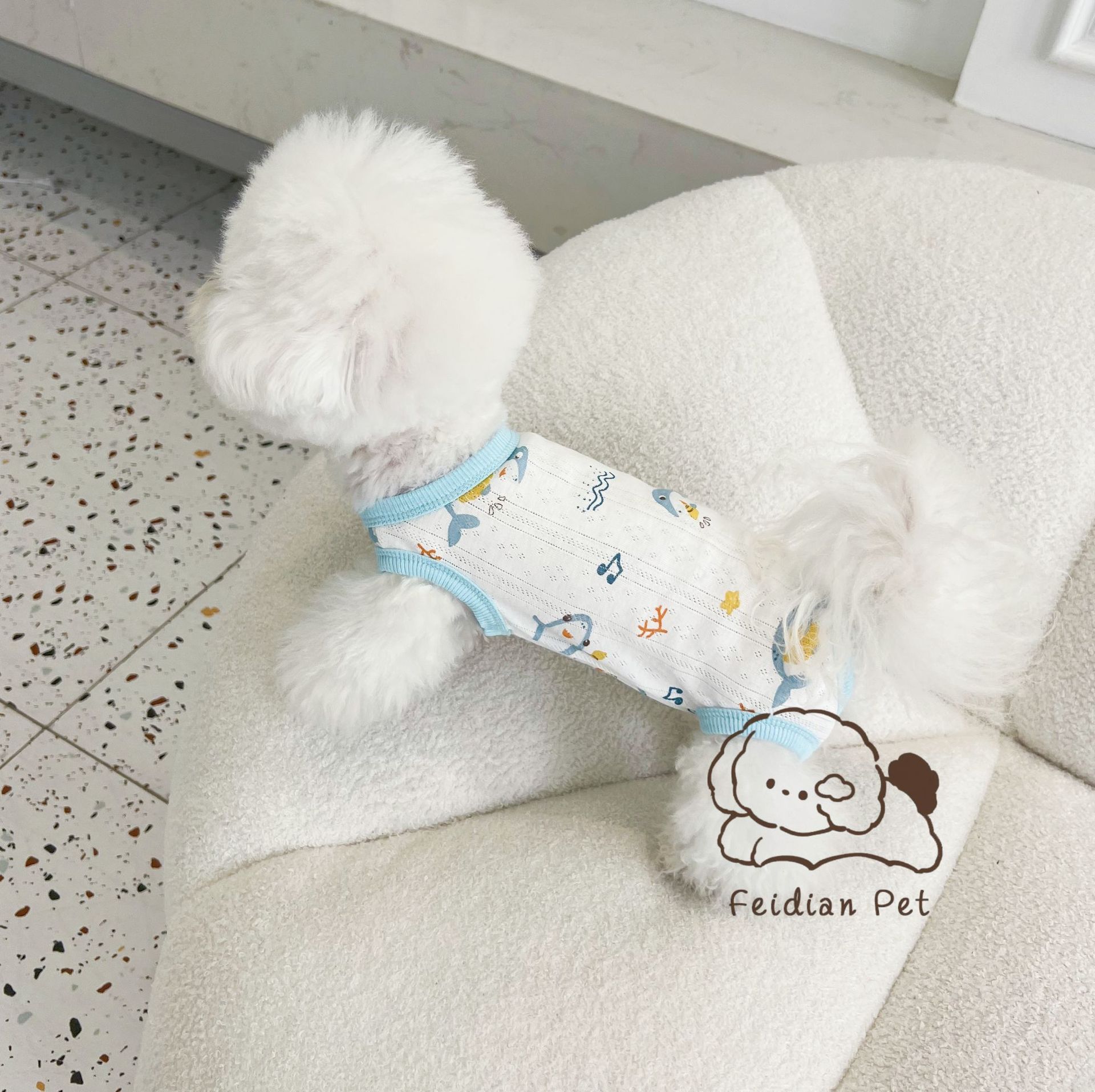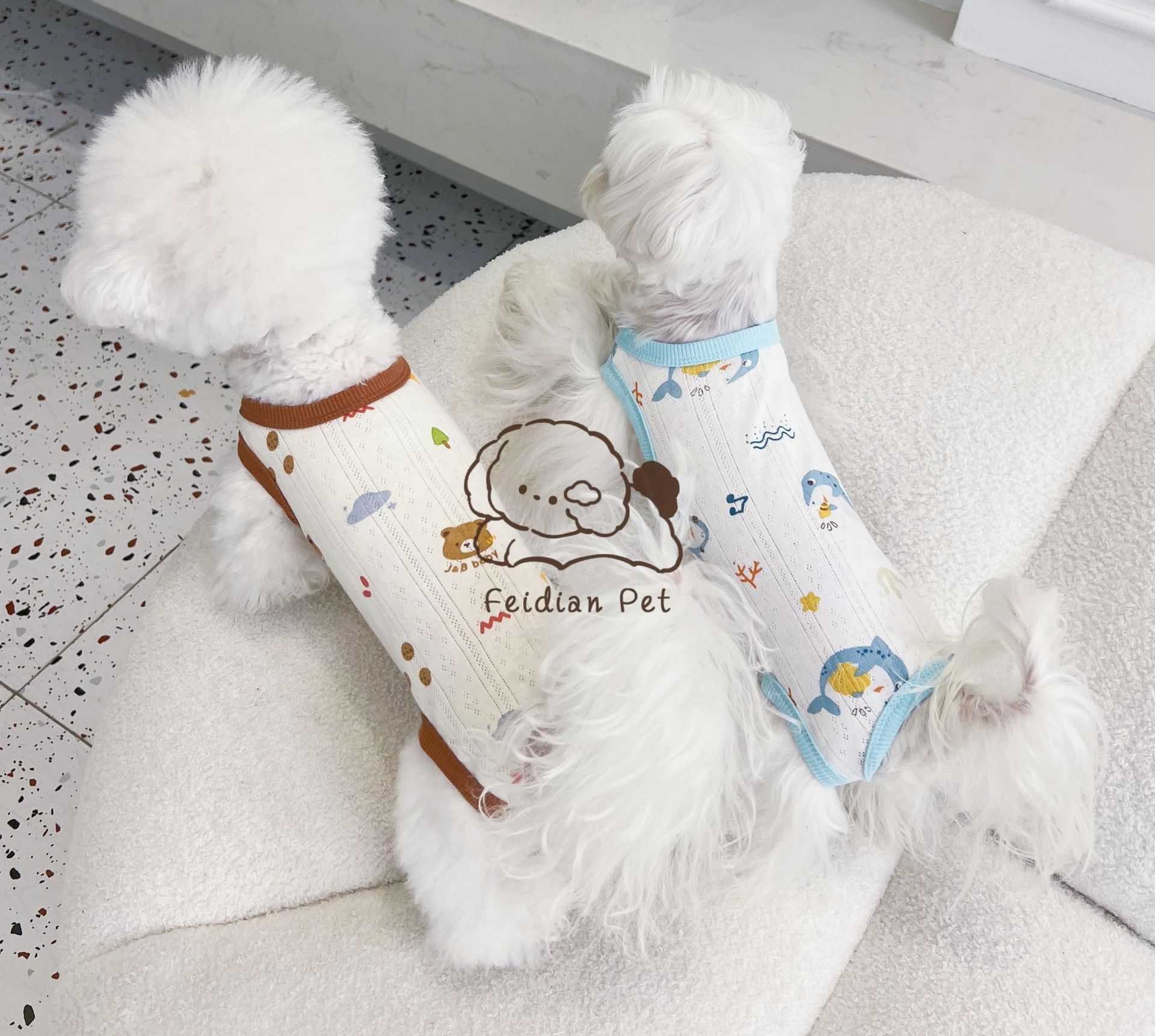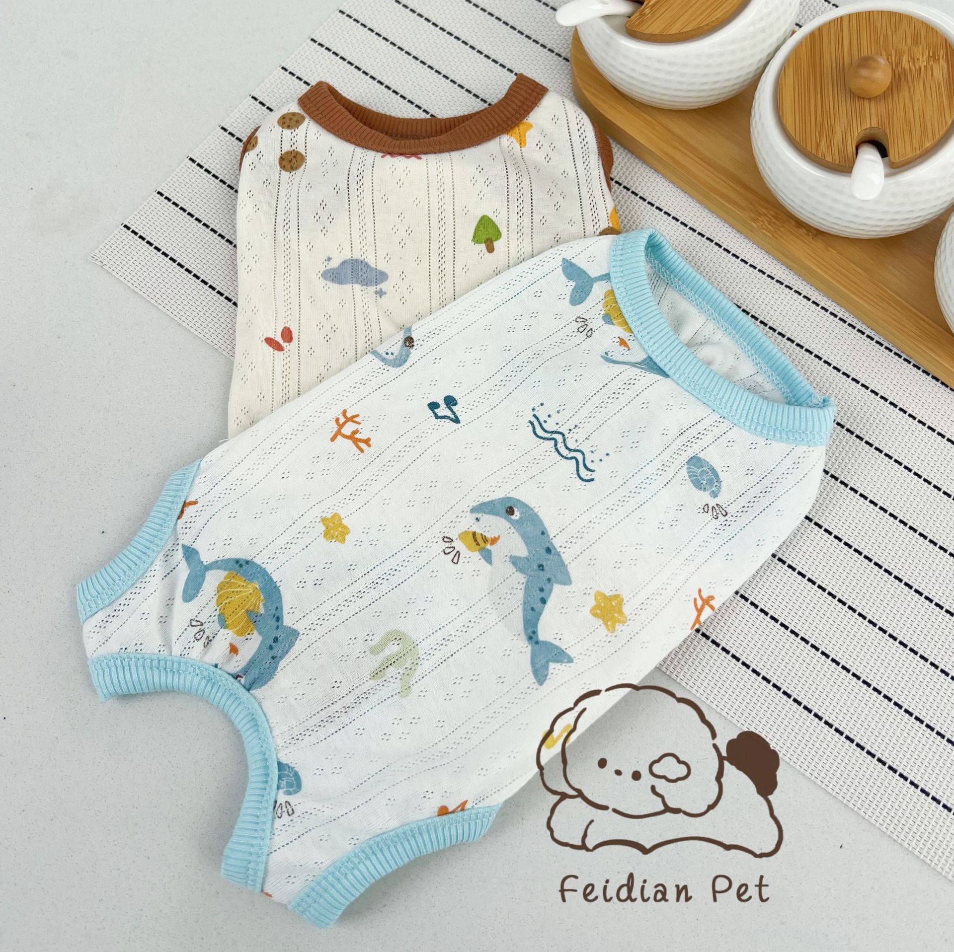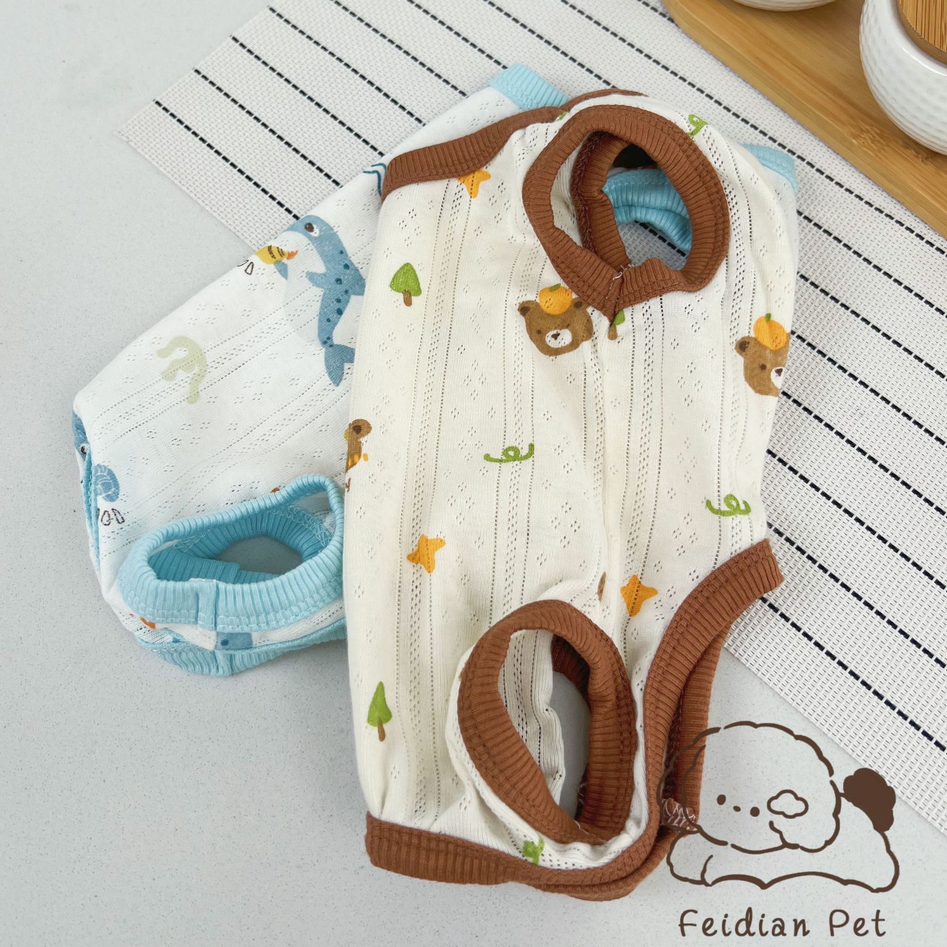 25 봄과 여름 새로운 순면 대조 컬러 인쇄 4 다리 배 보호 의류 고양이 작은 개 경량 통기성 안티 쿨 에어컨 의류