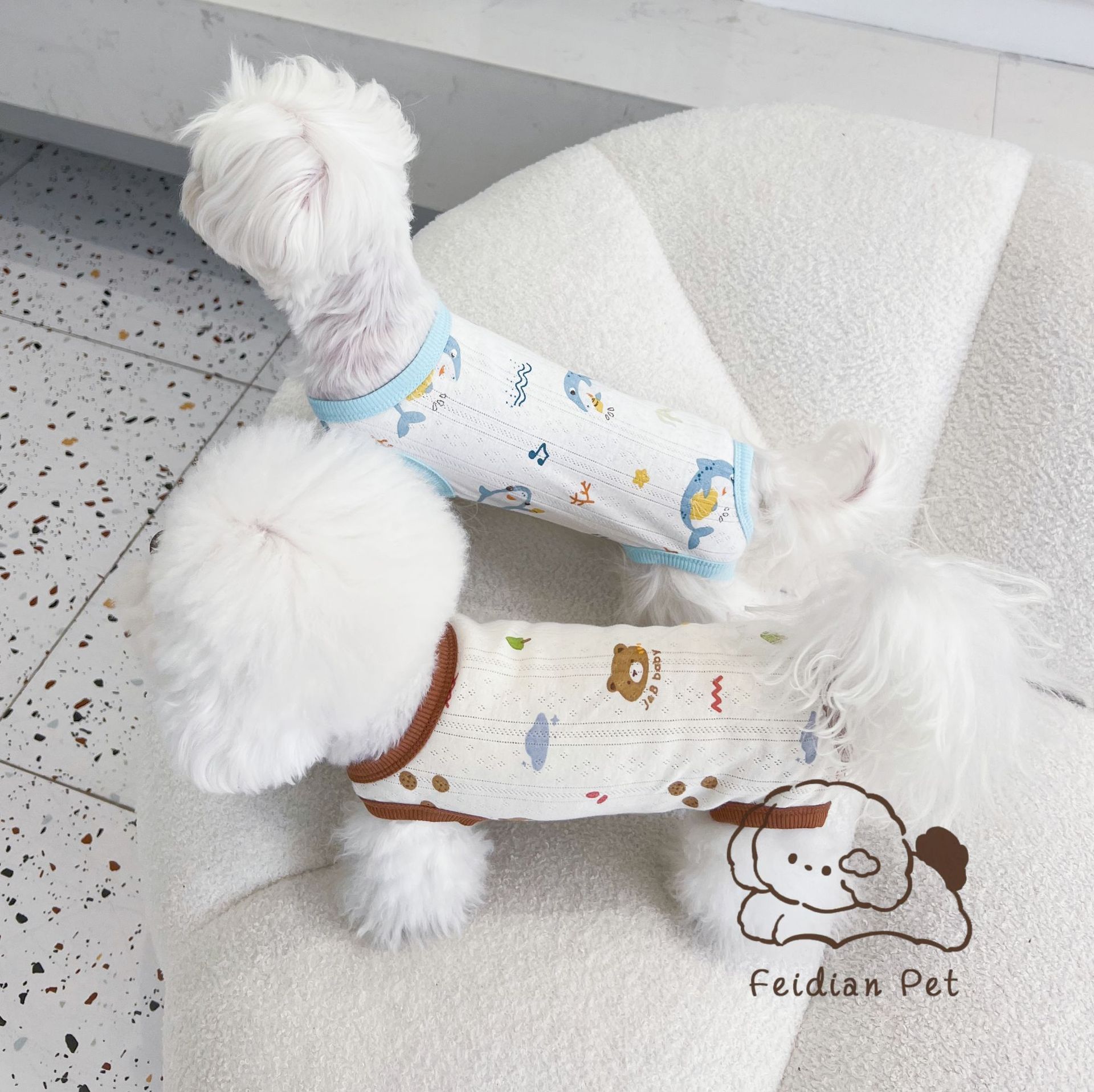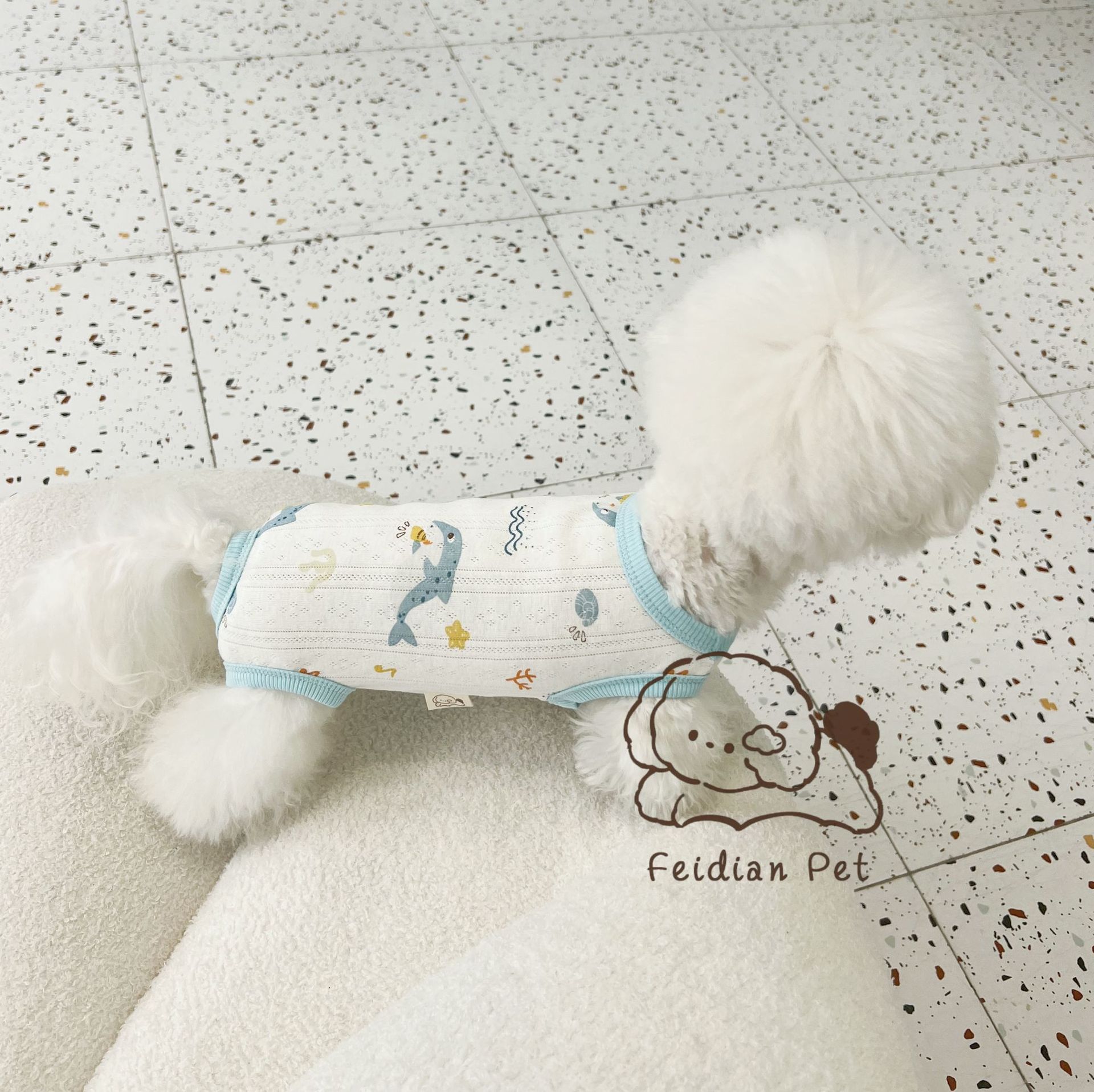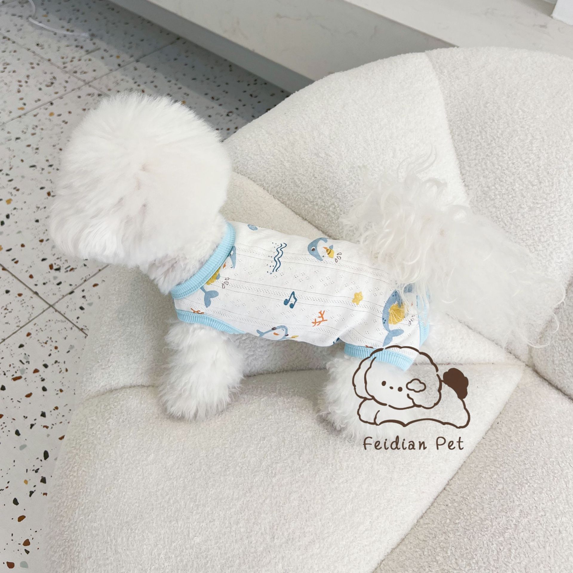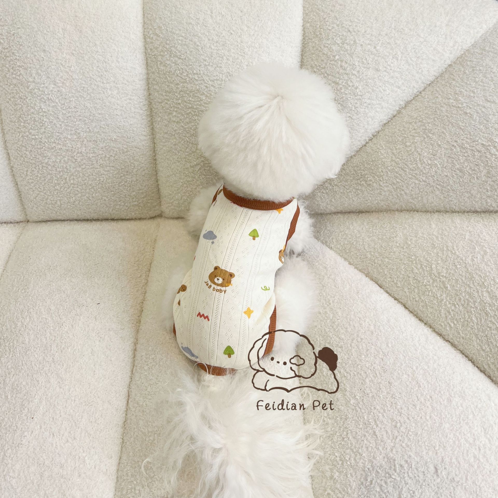 25 봄과 여름 새로운 순면 대조 컬러 인쇄 4 다리 배 보호 의류 고양이 작은 개 경량 통기성 안티 쿨 에어컨 의류