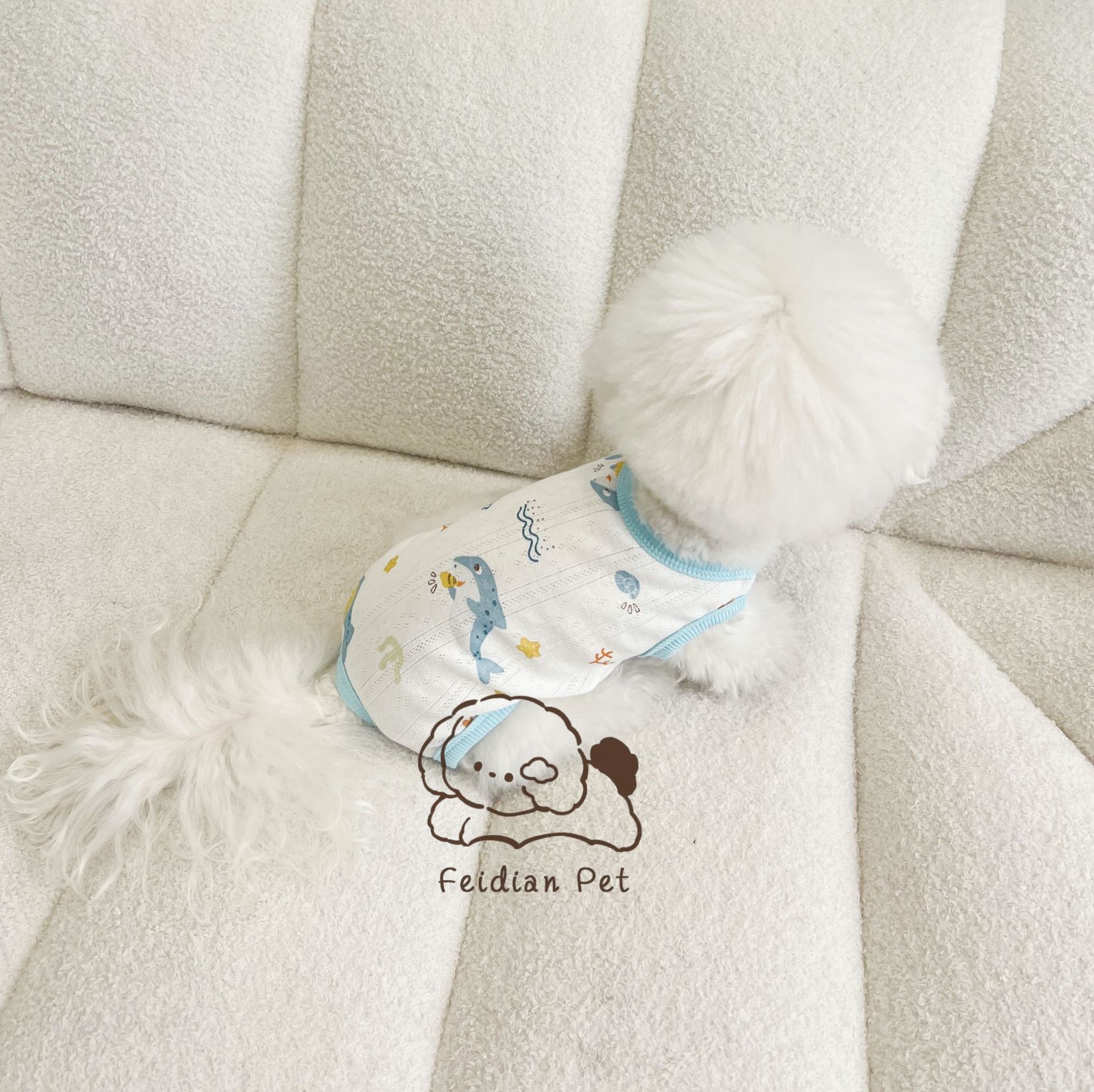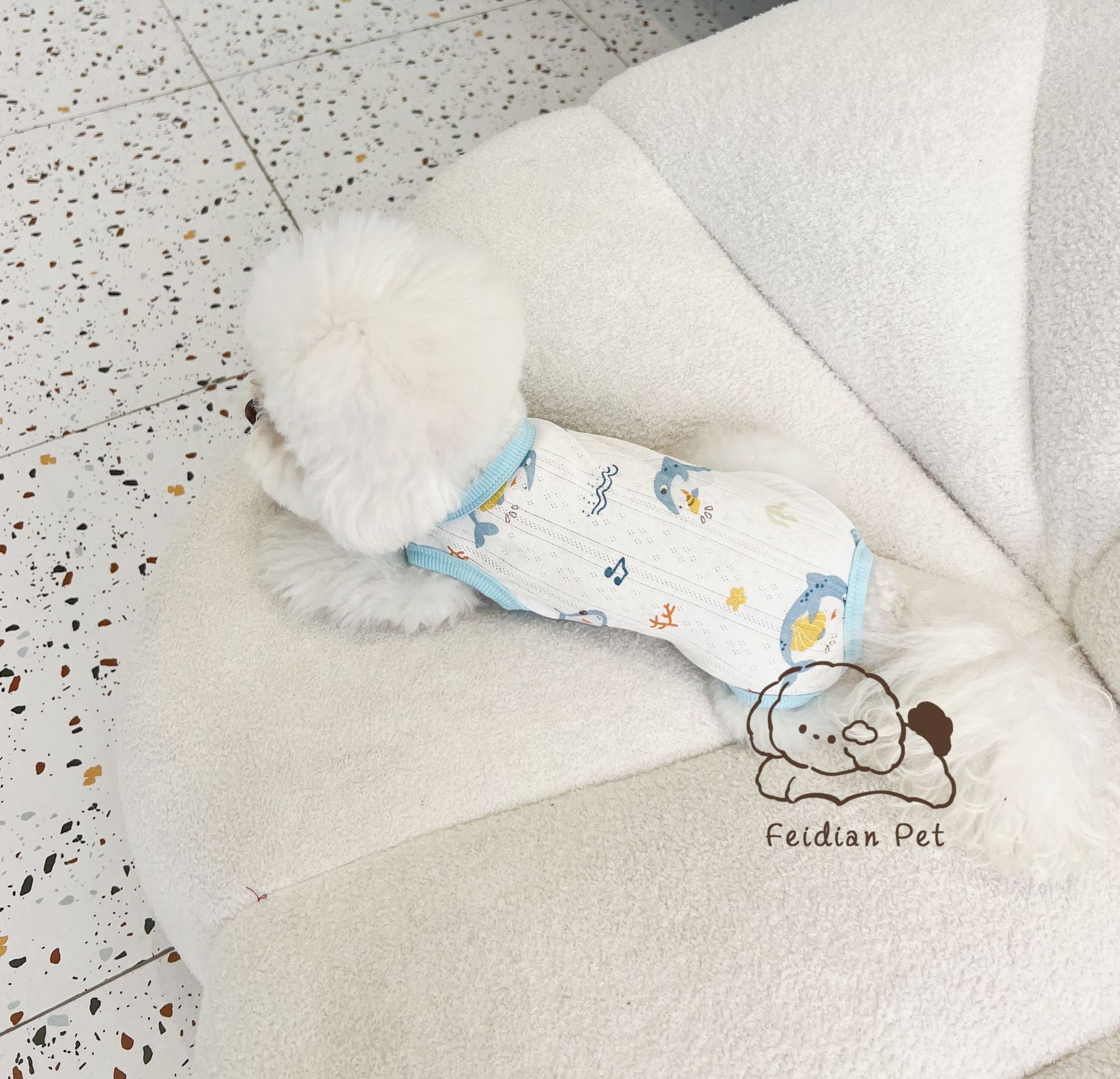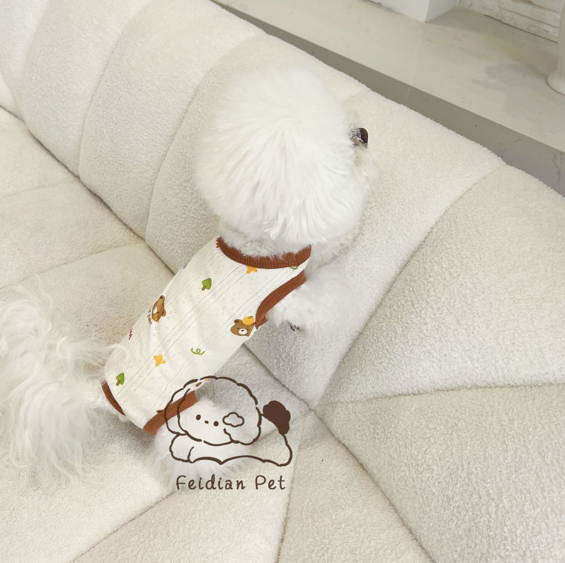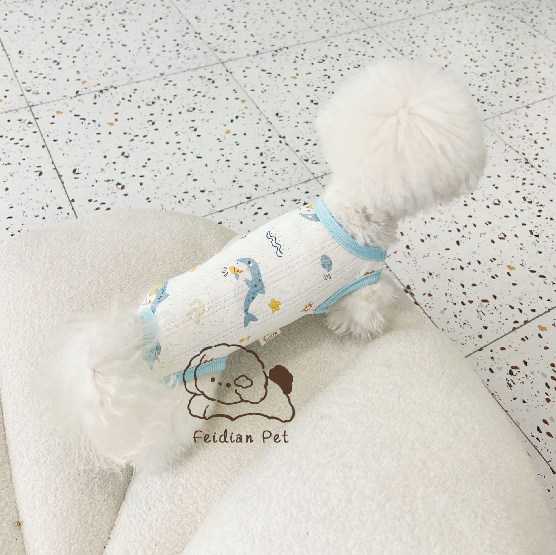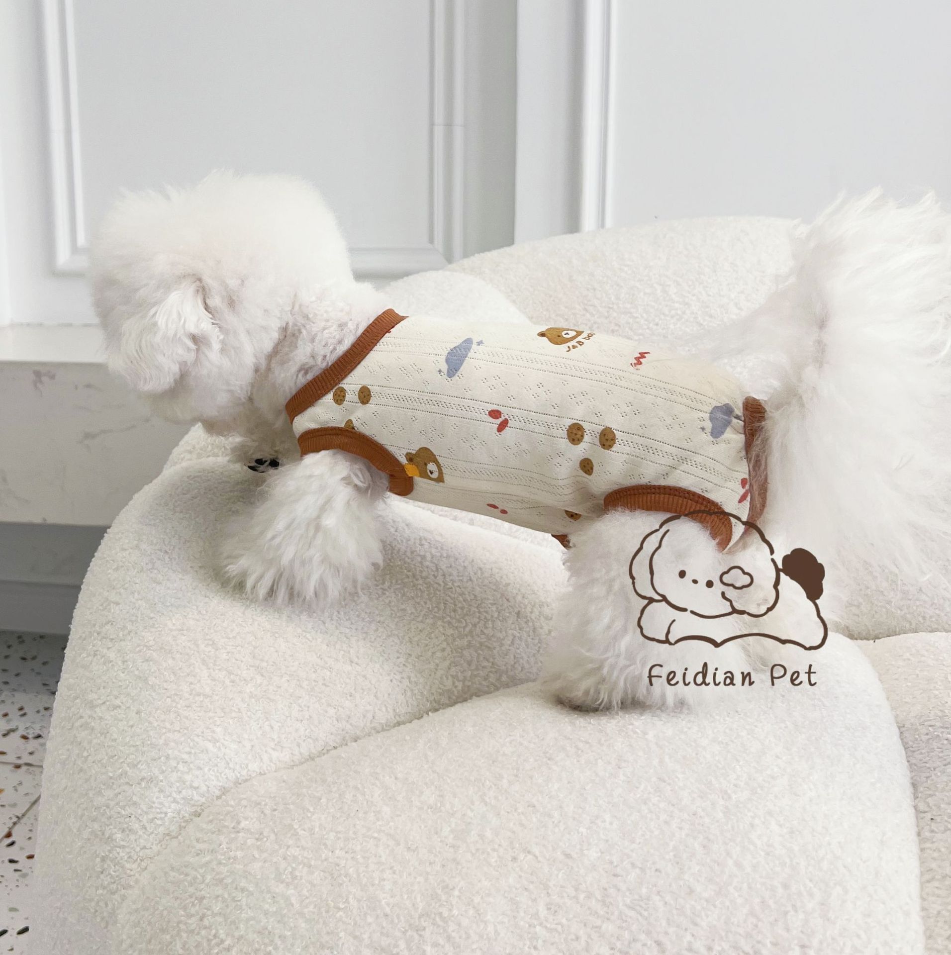 25 봄과 여름 새로운 순면 대조 컬러 인쇄 4 다리 배 보호 의류 고양이 작은 개 경량 통기성 안티 쿨 에어컨 의류