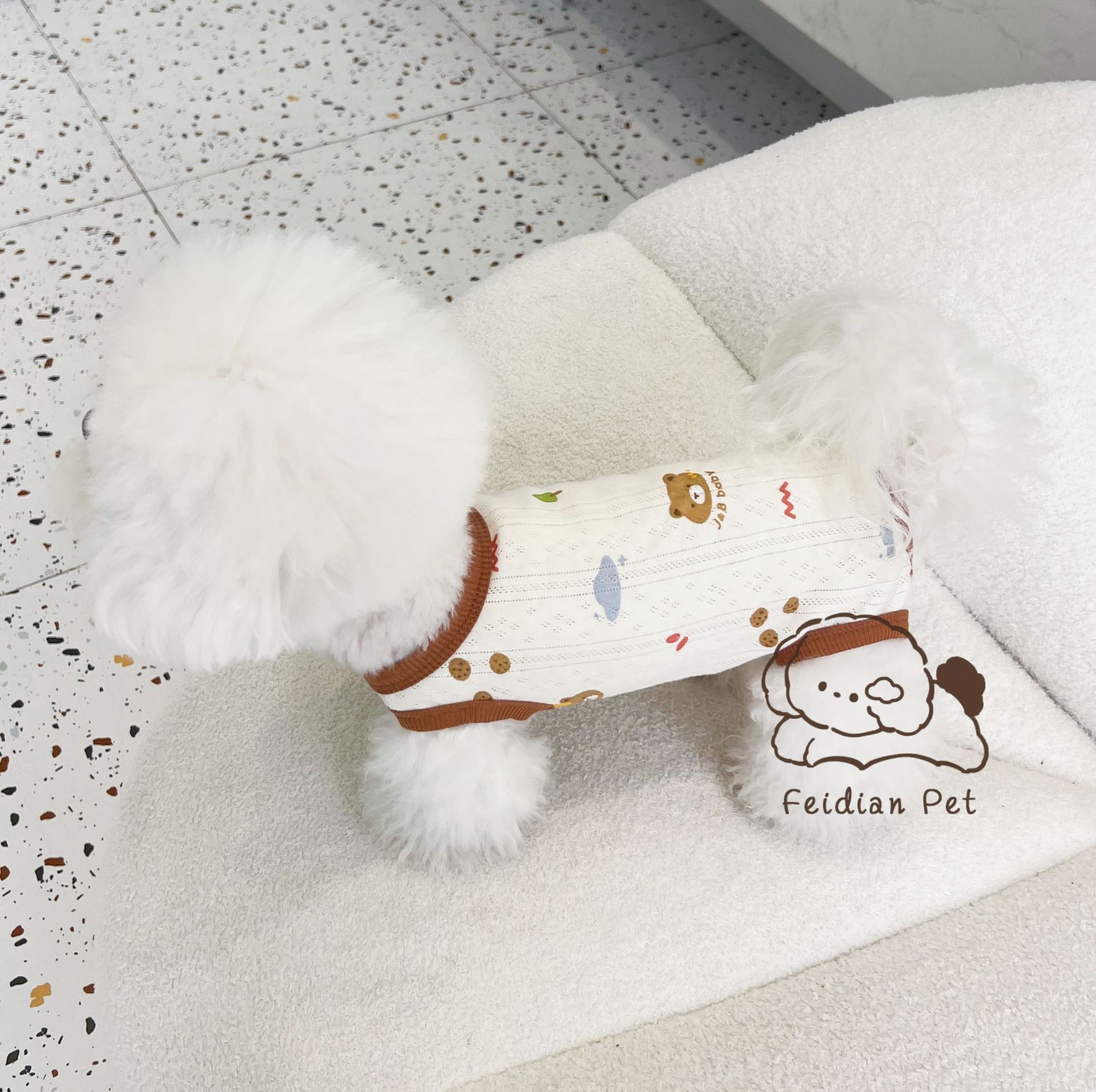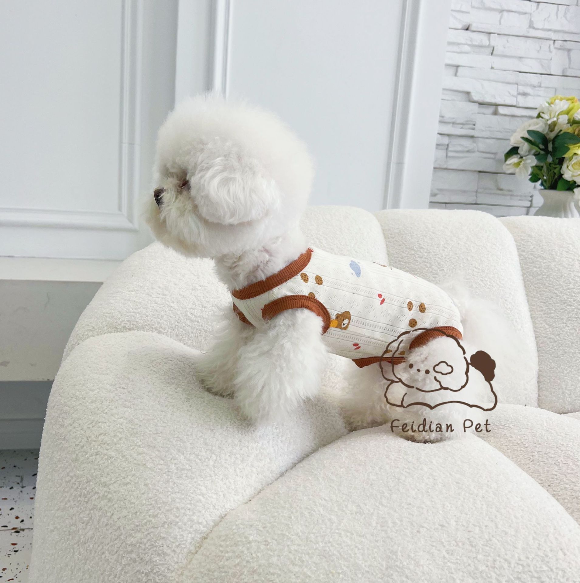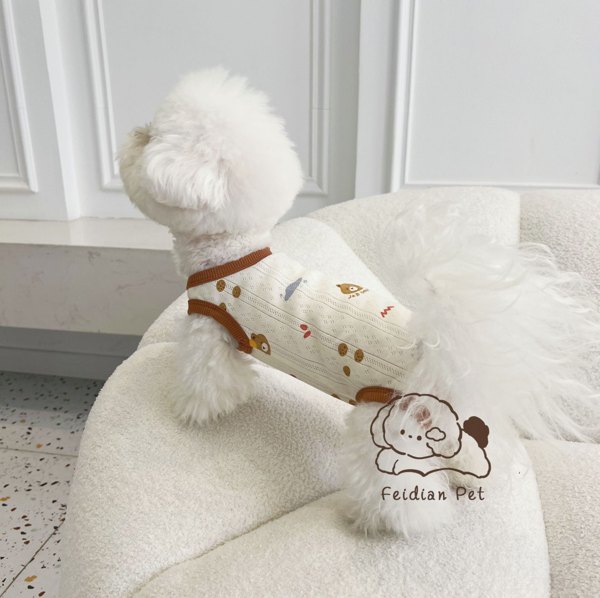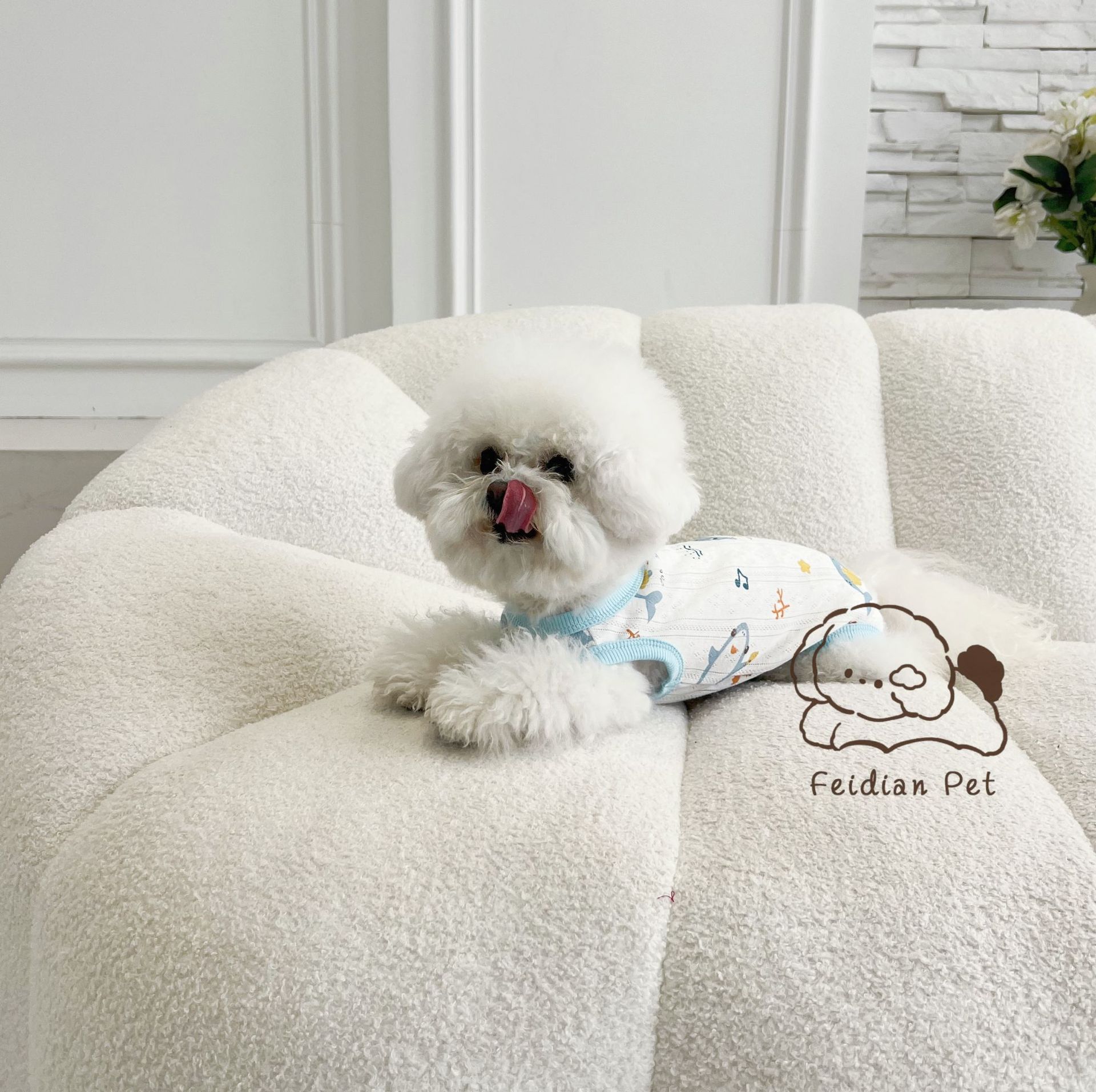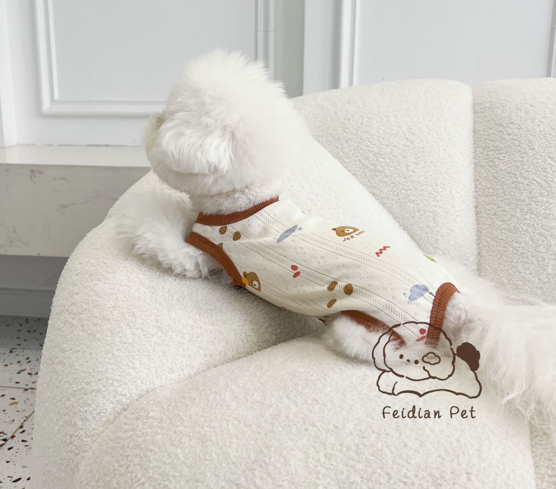25 봄과 여름 새로운 순면 대조 컬러 인쇄 4 다리 배 보호 의류 고양이 작은 개 경량 통기성 안티 쿨 에어컨 의류