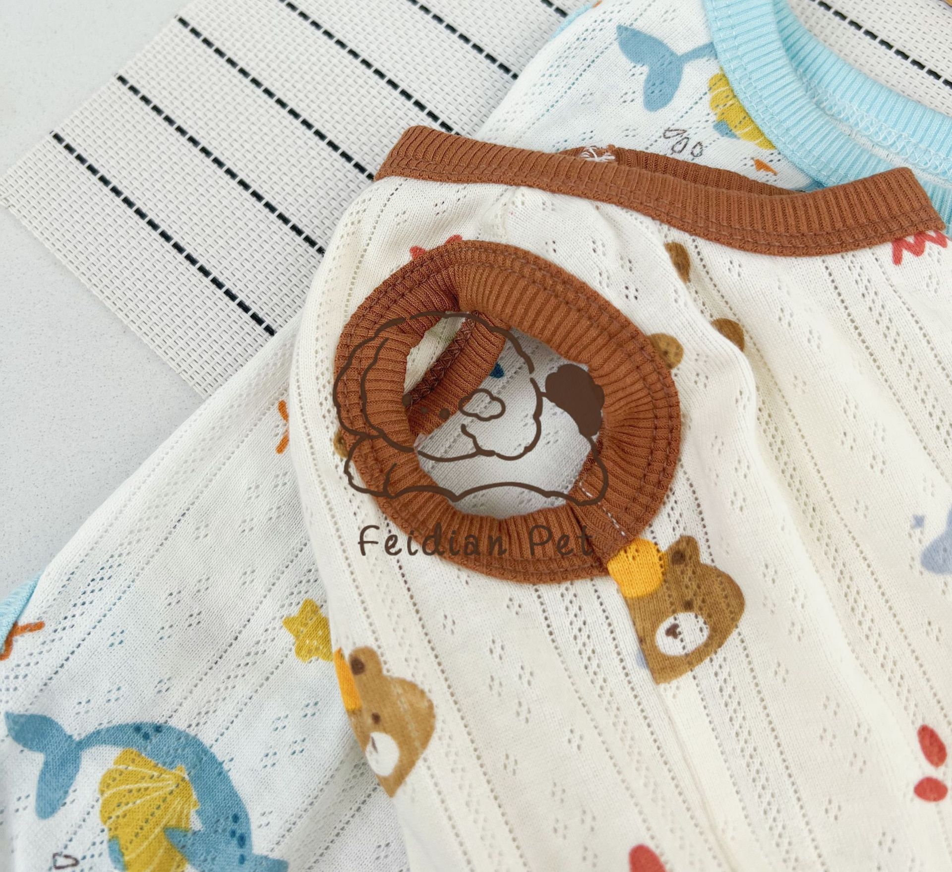 25 봄과 여름 새로운 순면 대조 컬러 인쇄 4 다리 배 보호 의류 고양이 작은 개 경량 통기성 안티 쿨 에어컨 의류스토어 가기