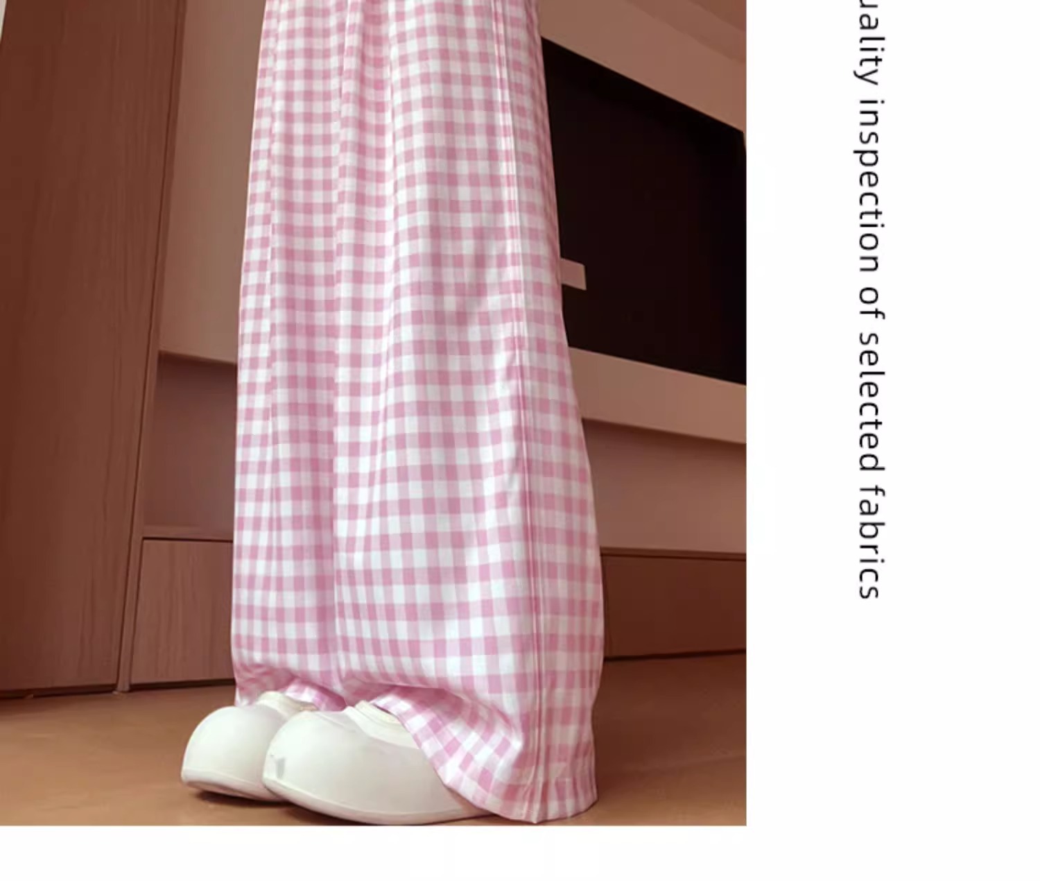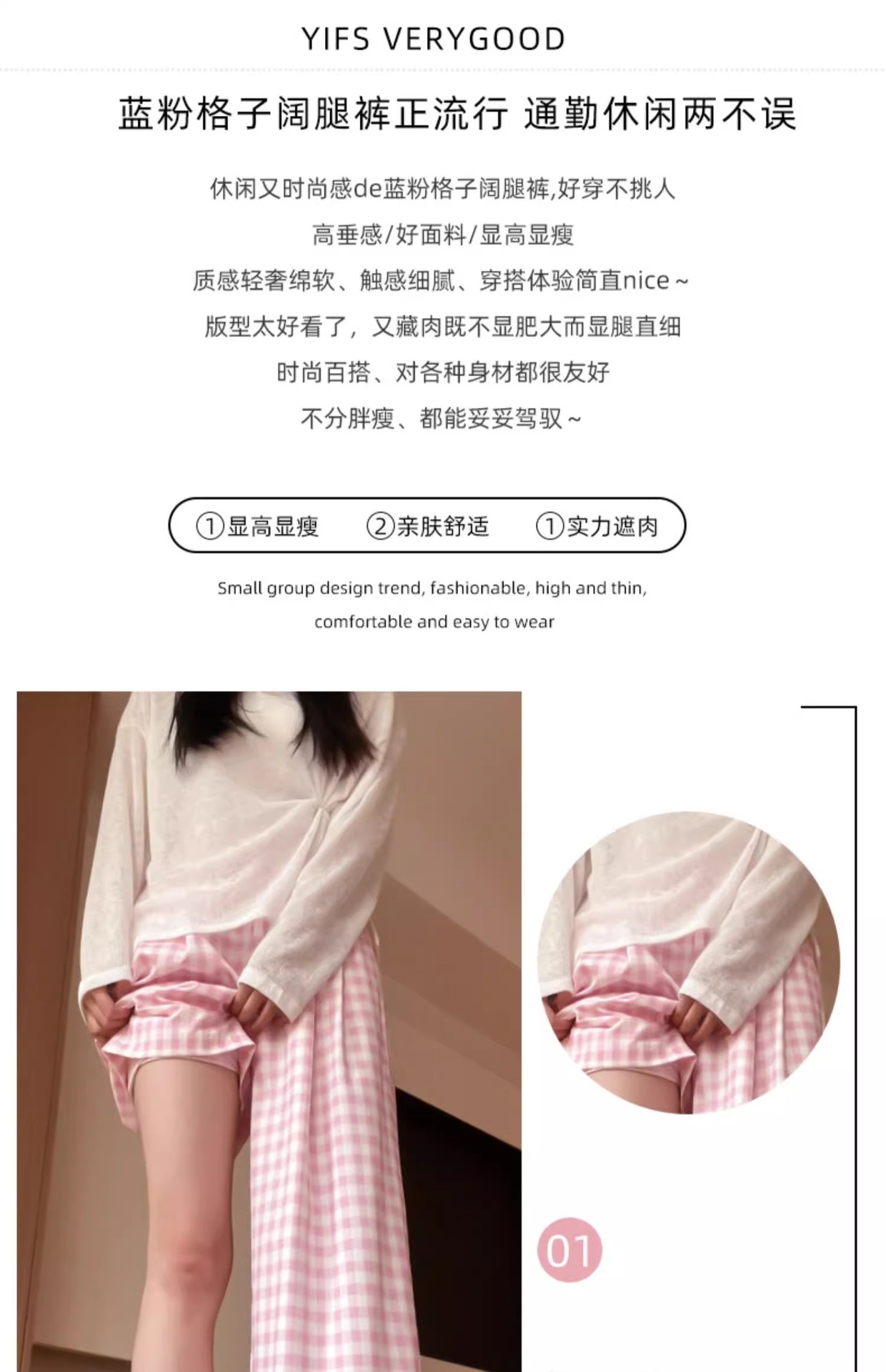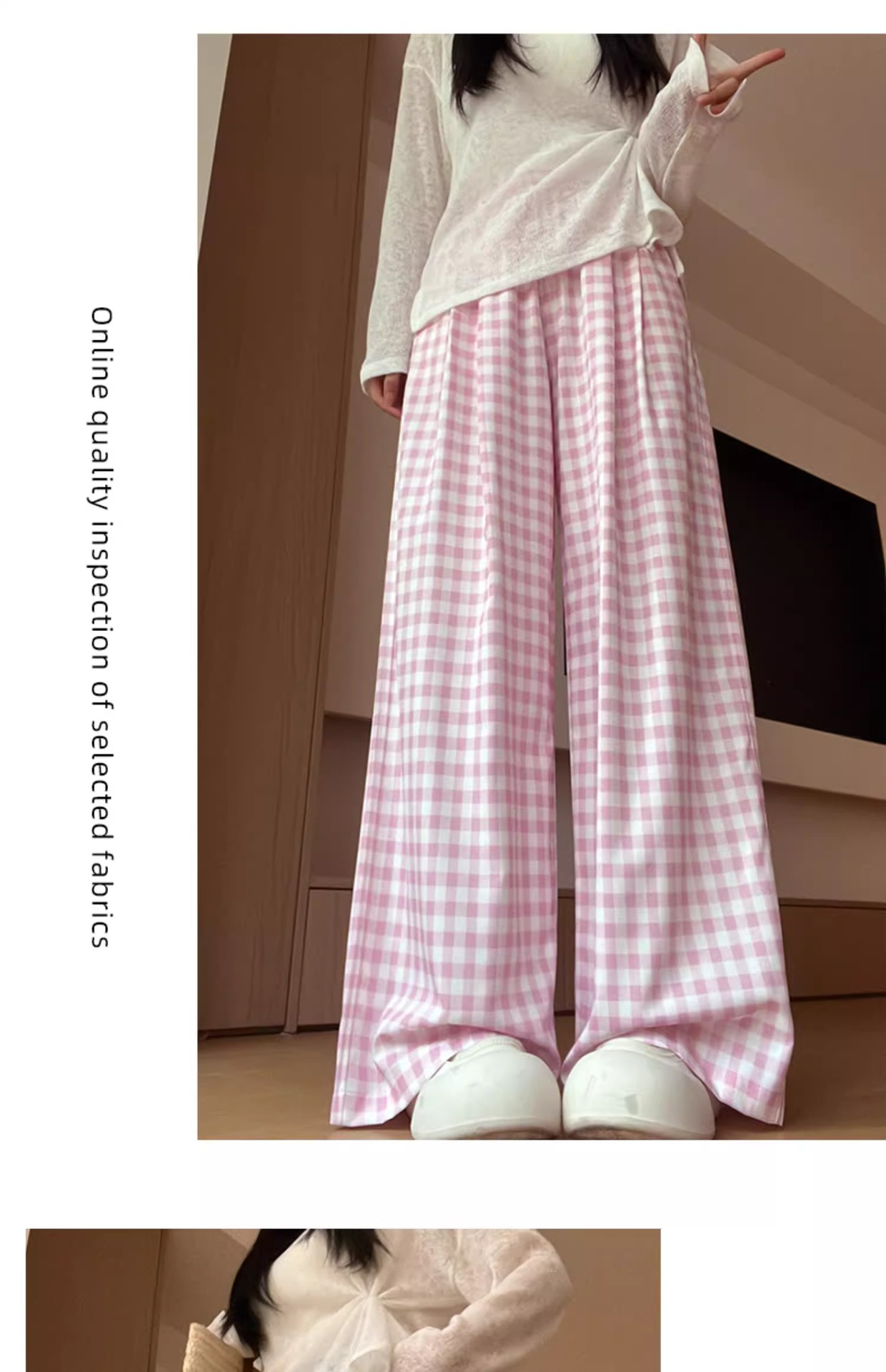 도파민 격자 무늬 바지 여성 봄 2025 작은 남자를위한 새로운 캐주얼 느슨한 높은 허리 바지스토어 가기
