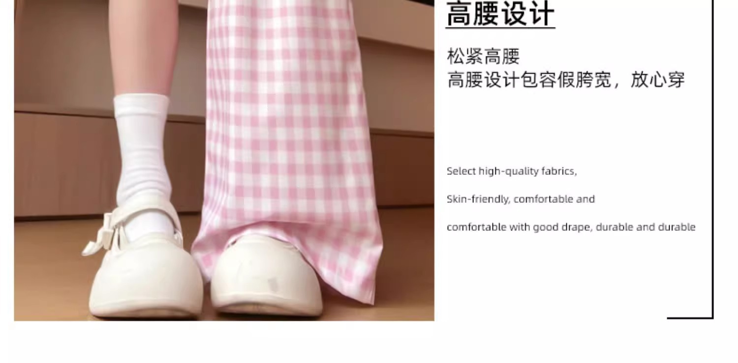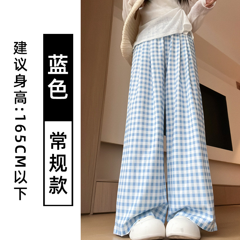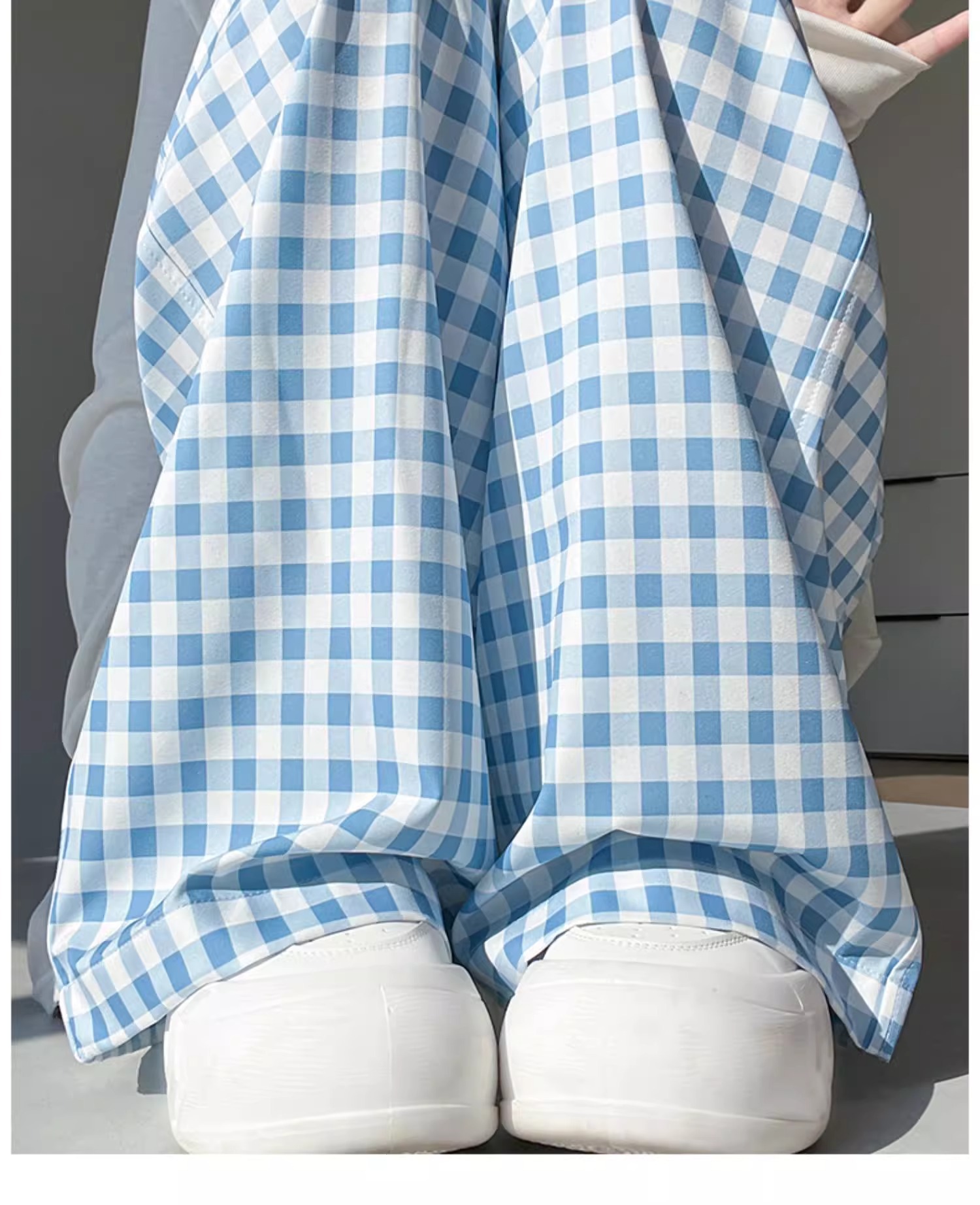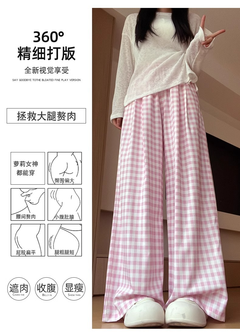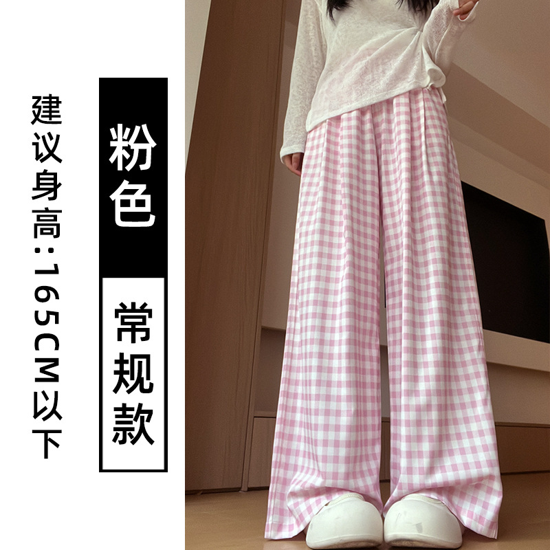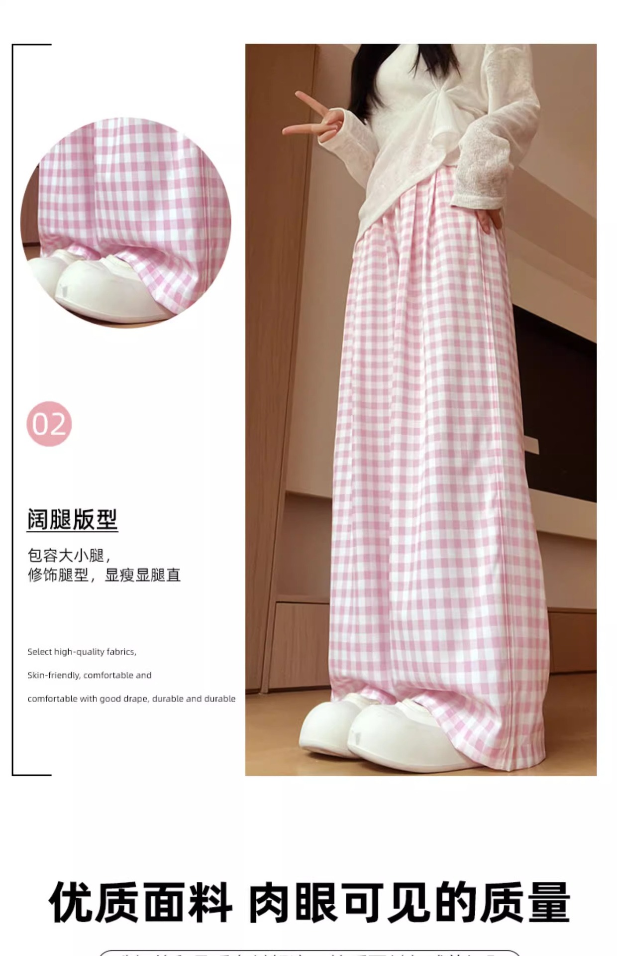 도파민 격자 무늬 바지 여성 봄 2025 작은 남자를위한 새로운 캐주얼 느슨한 높은 허리 바지