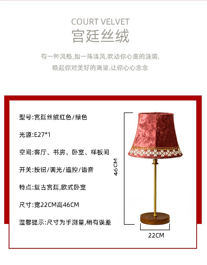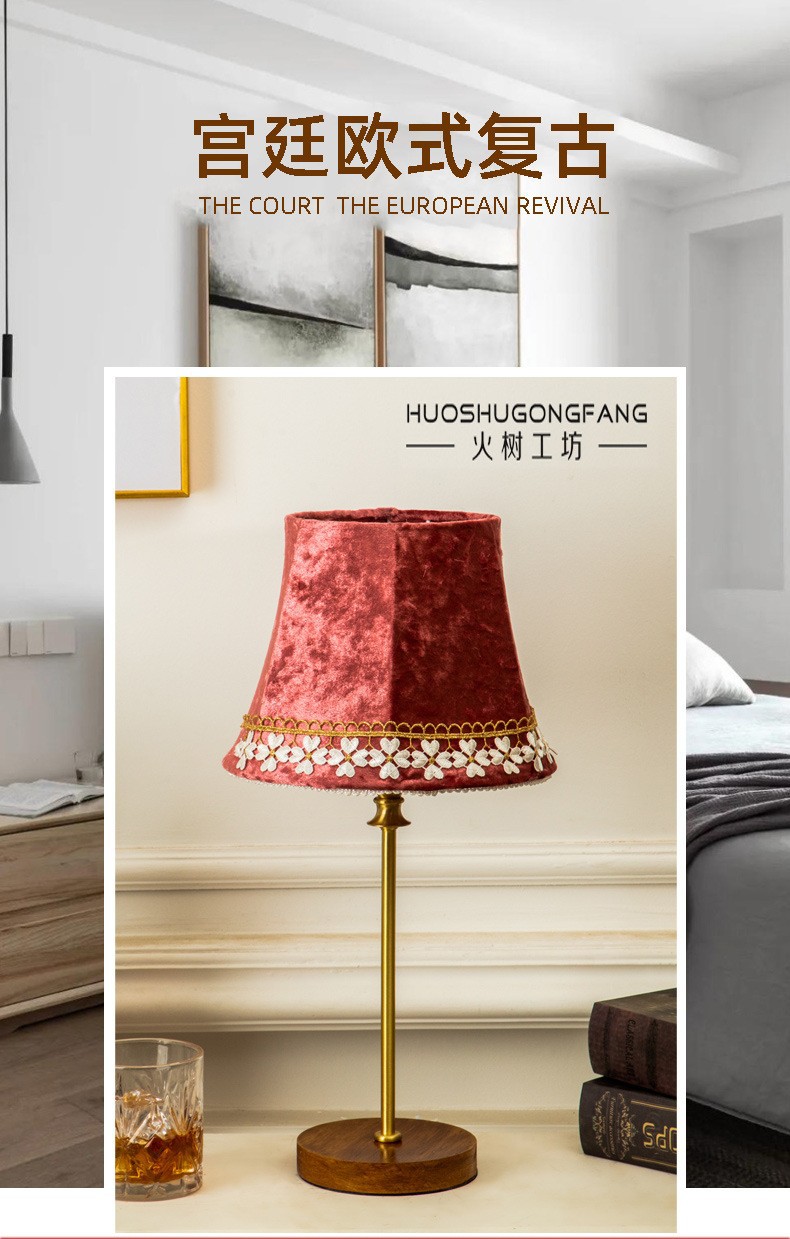 라이트 럭셔리 크리 에이 티브 개성 홈 침실 머리맡 램프 거실 장식 테이블 램프 유럽 복고풍 궁전 벨벳 테이블 램프