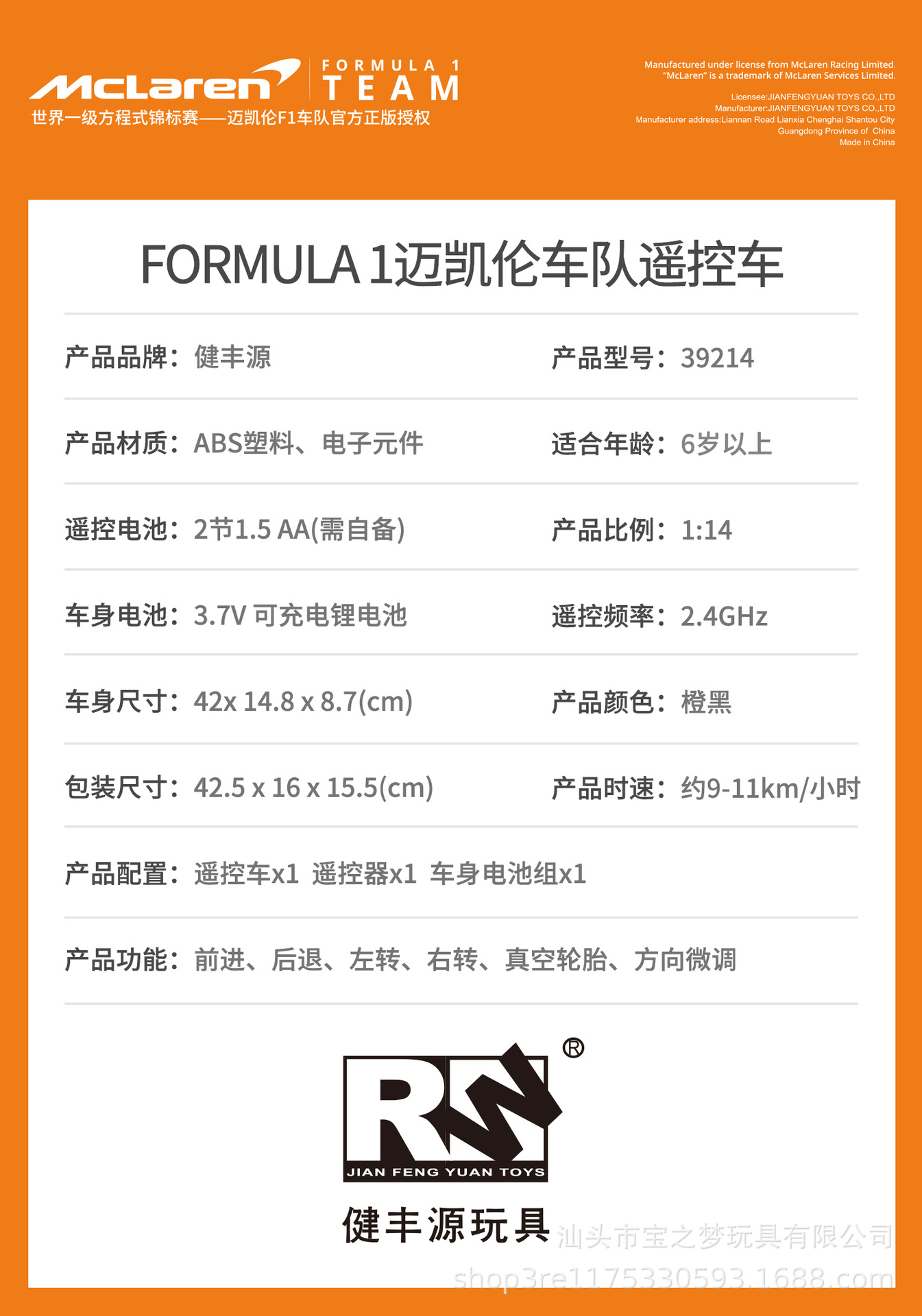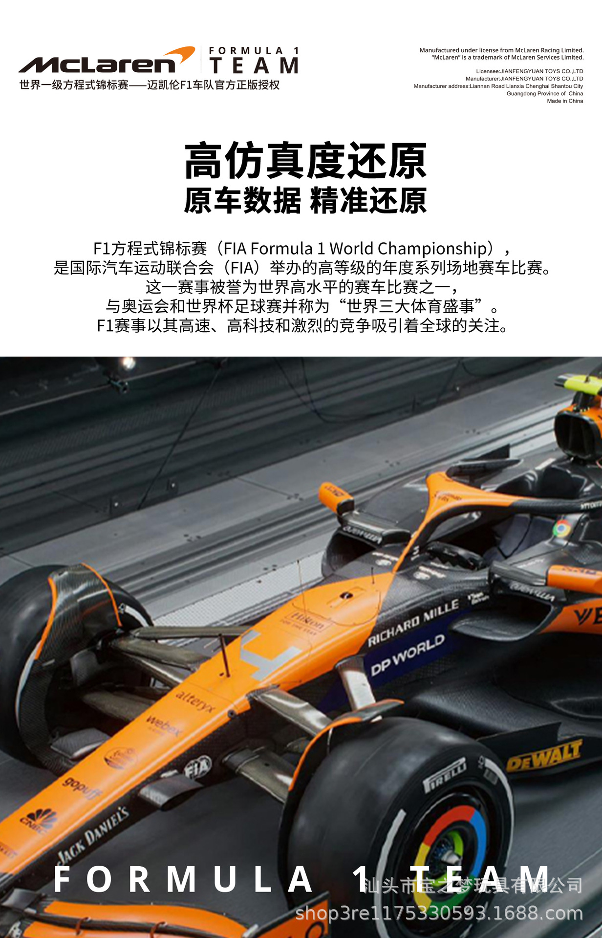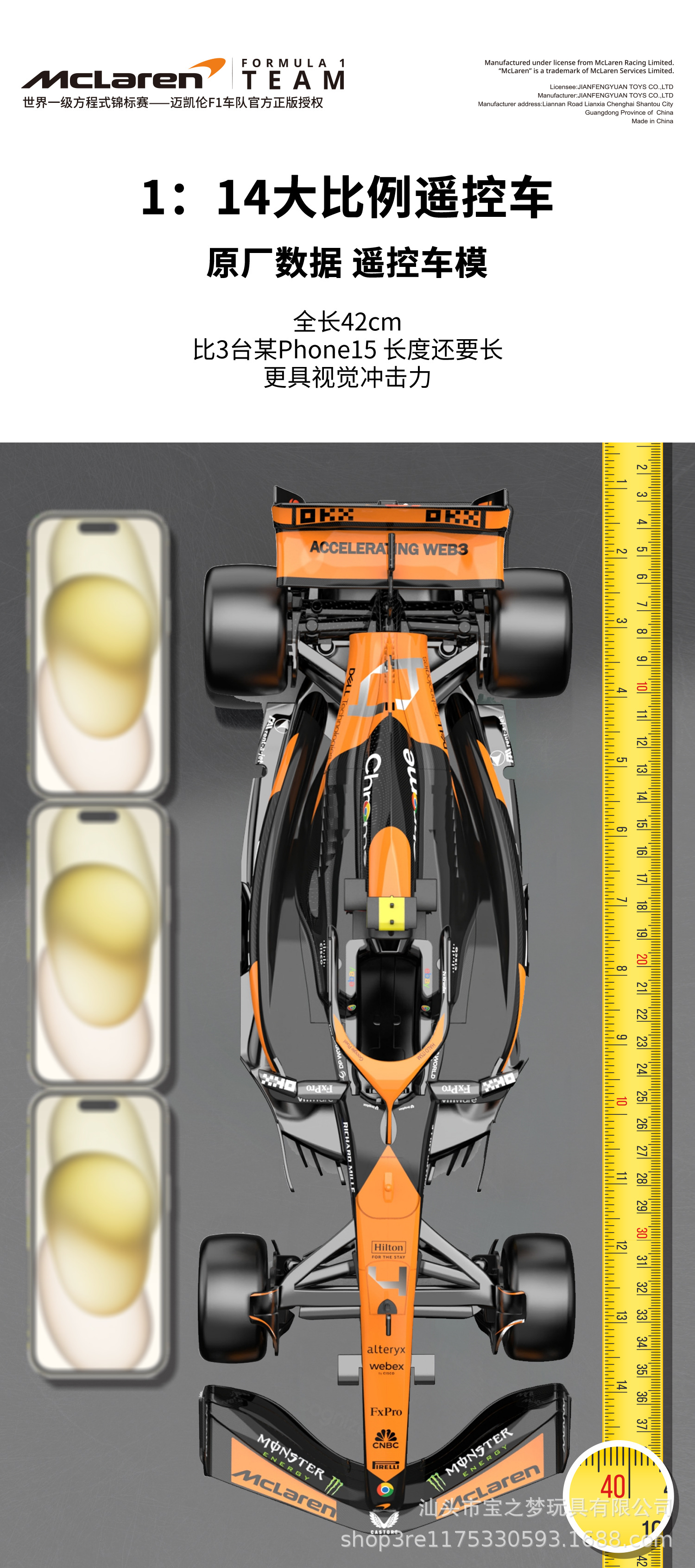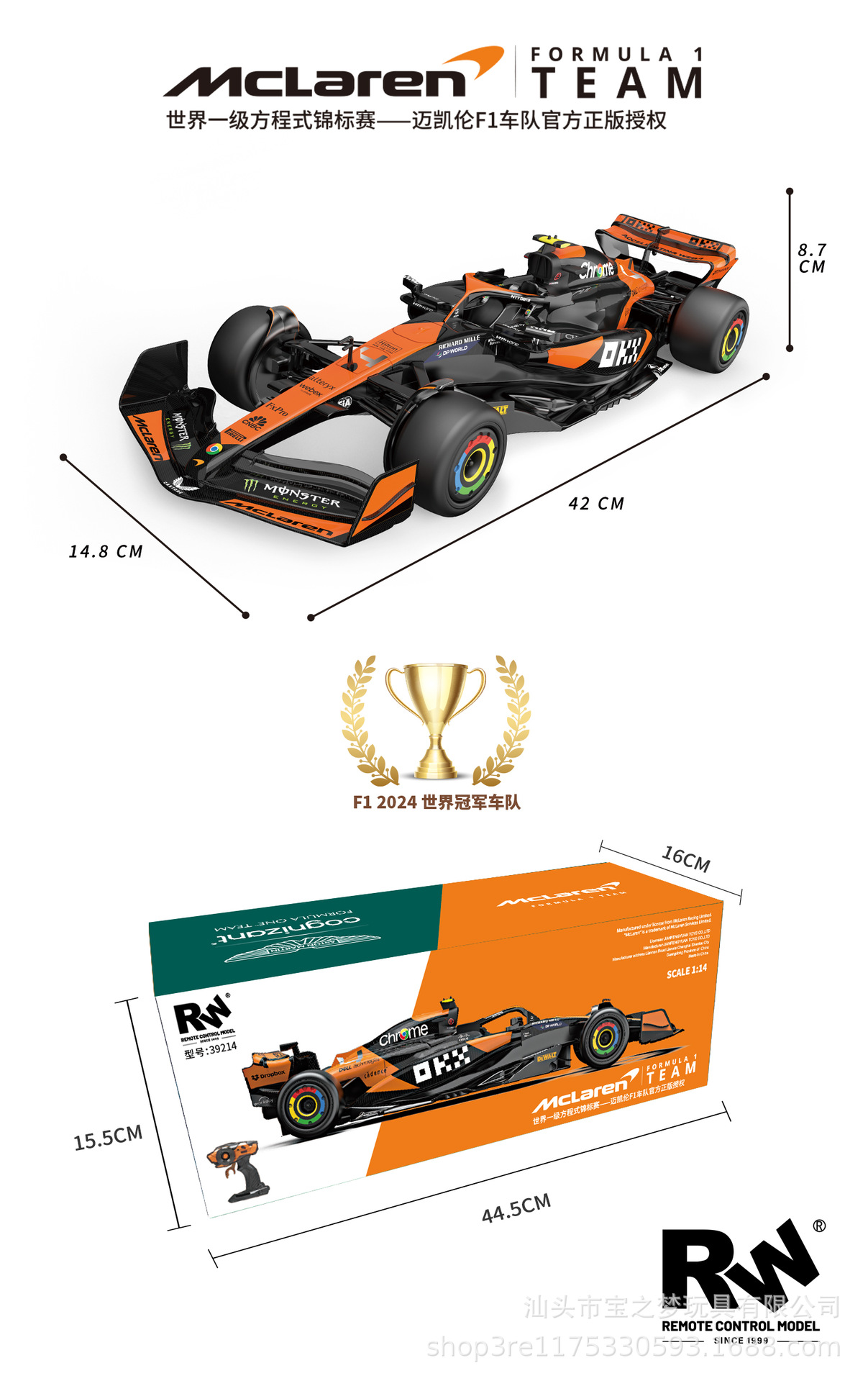 정품 라이센스 맥라렌 F1 포뮬러 1:14 모델 원격 럭셔리카 로고 자동차 소년 컬렉션 선물스토어 가기